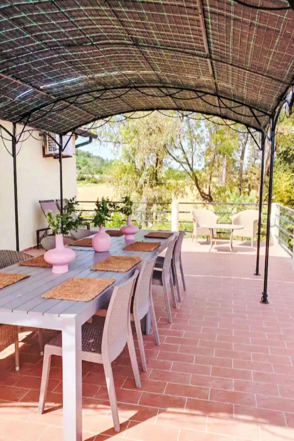 5-room apartment 150 m2, on the upper floor. Spacious, simple and cosy furnishings: upper floor: (exterior staircase) living/dining room. Living room. 3 double bedrooms. Open kitchen (oven, dishwasher, Gas stove, 4 gas rings, toaster, kettle, microwave, electric coffee machine). Exit to the terrace. 2 showers/bidet/WC. Terrace 50 m2. Terrace furniture. Very beautiful panoramic view of the countryside. Facilities: washing machine, baby cot for up to 3 year olds, hair dryer. Internet (WiFi, free). Please note: private entrance, smoke alarm, fire extinguisher. The pool mentioned in the description is for private use. Bedlinen, towels, final cleaning and all energy costs are included. IT050019C289WQJSQD