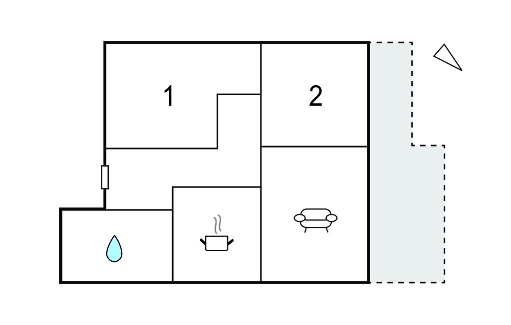 Opholdsstue 16m2 - 1 Soveplads. (Sofa, madras eller lignende).