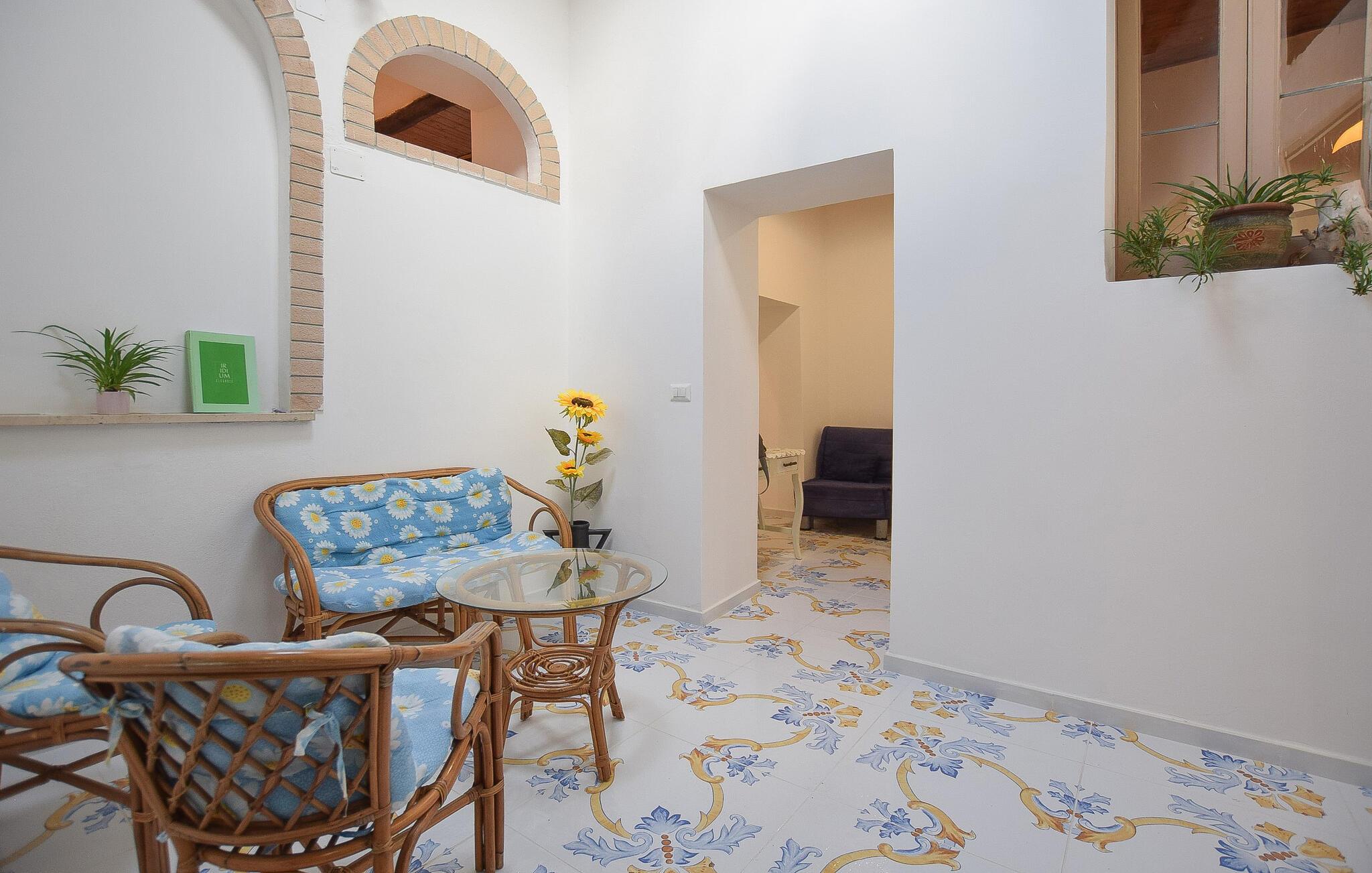 Udenfor venter en stor terrasse på jer med en spektakulær udsigt over de bølgende bakker og det dybblå hav. Begynd dagene med morgenmad i morgensolen og afslut aftenen med et glas vin under vinstokkene.