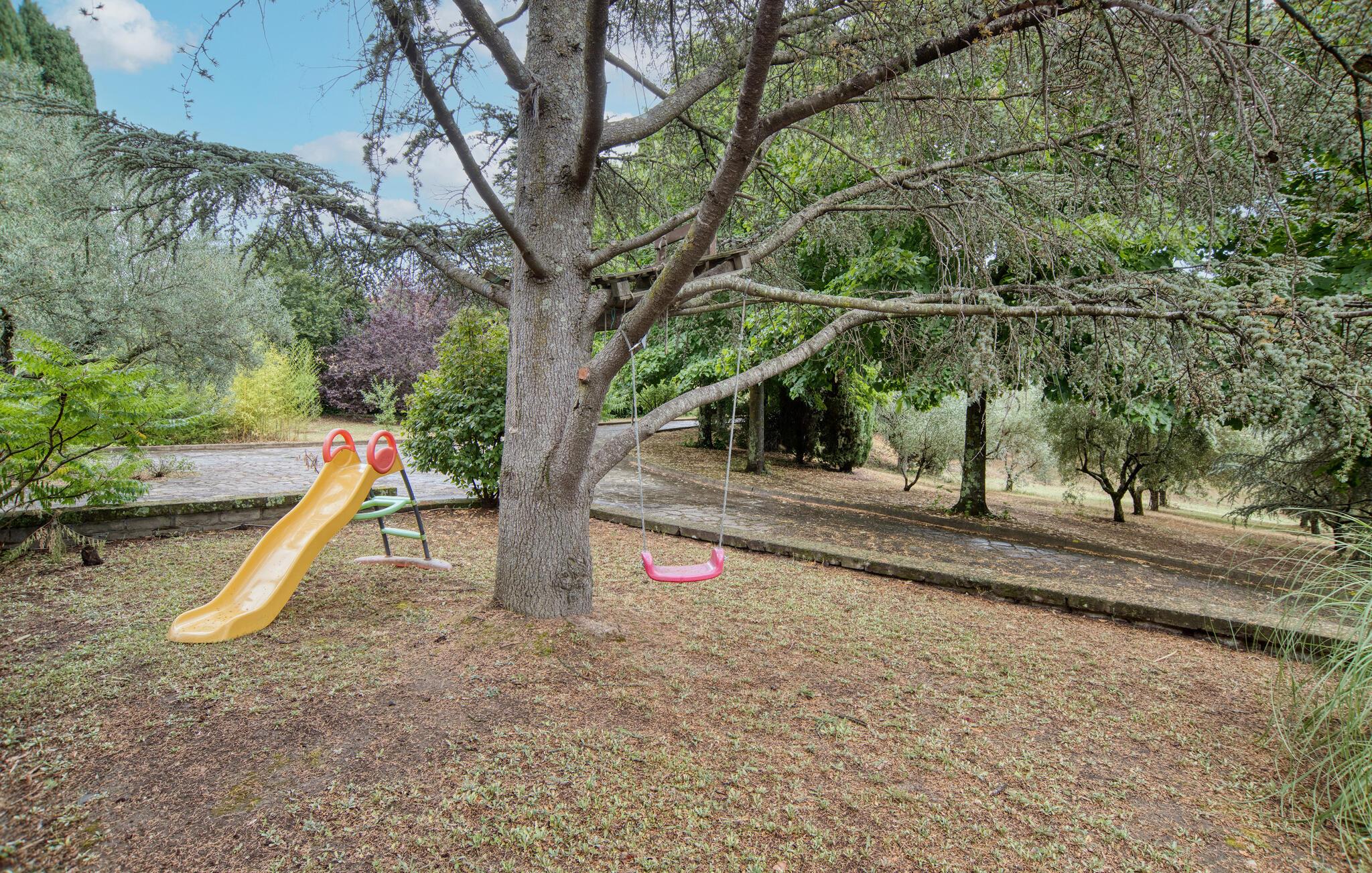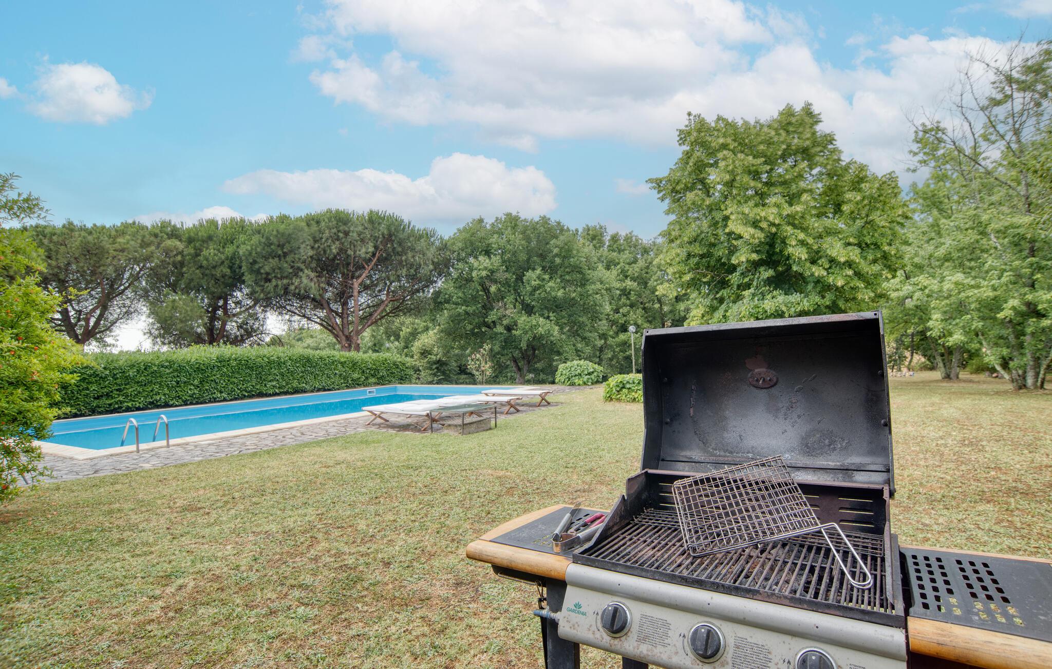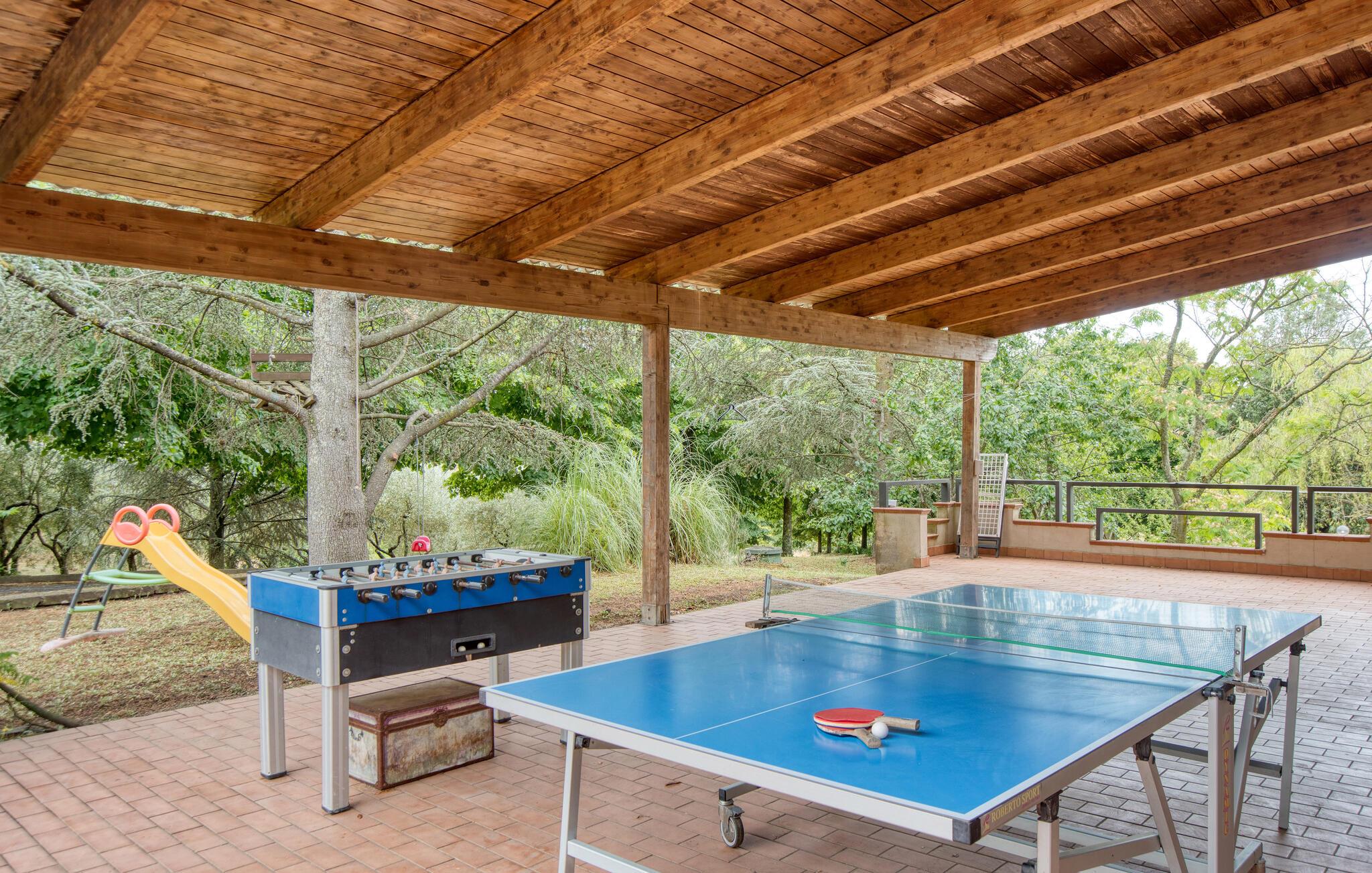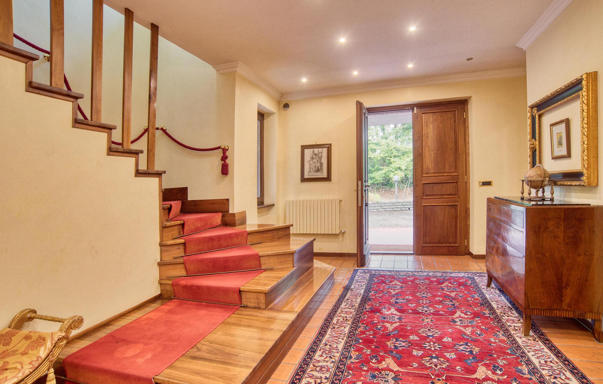 Denne meget rummelige ejendom byder jer velkommen i Montefiascone og vil glæde jer med sine elegante møbler og charmerende atmosfære. Find jer godt til rette her med jeres udvidede familie og slap af i det meget veludstyrede hus. Kom sammen til en snak eller spil kort i stuen eller pisk jeres yndlingsretter op i det rummelige køkken med udgang til haven. Den overdækkede veranda er så det perfekte sted at spise al fresco eller endda tilberede de grillede retter. Oplev derefter den grønne og planterige have og forfrisk jer selv i poolen og slap derefter af i hængekøjen.