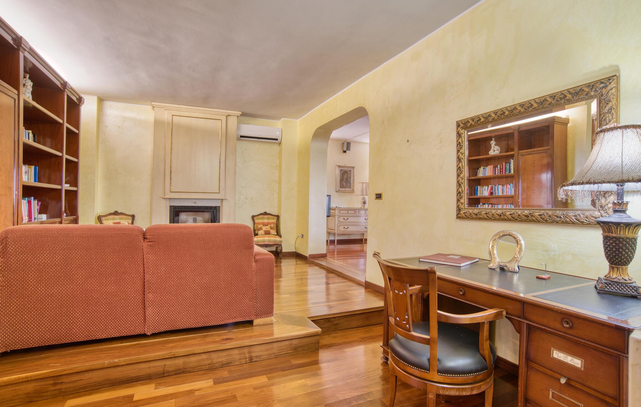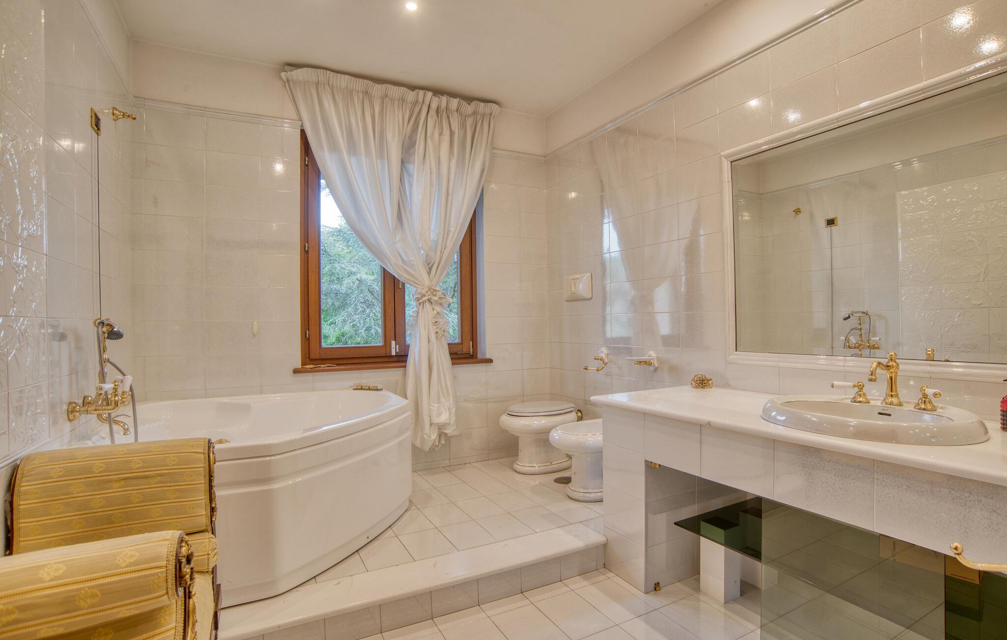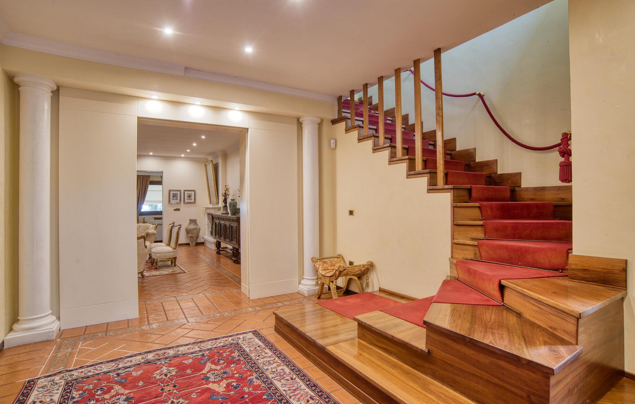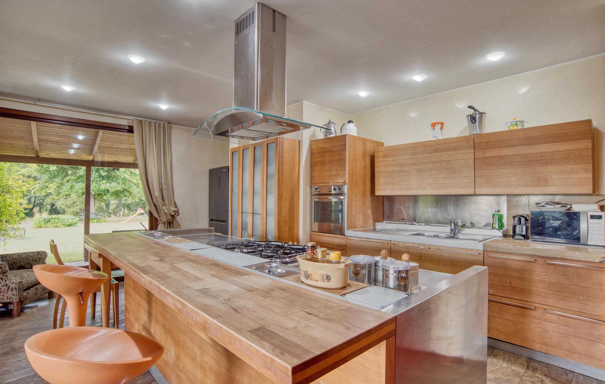 Denne meget rummelige ejendom byder jer velkommen i Montefiascone og vil glæde jer med sine elegante møbler og charmerende atmosfære. Find jer godt til rette her med jeres udvidede familie og slap af i det meget veludstyrede hus. Kom sammen til en snak eller spil kort i stuen eller pisk jeres yndlingsretter op i det rummelige køkken med udgang til haven. Den overdækkede veranda er så det perfekte sted at spise al fresco eller endda tilberede de grillede retter. Oplev derefter den grønne og planterige have og forfrisk jer selv i poolen og slap derefter af i hængekøjen.