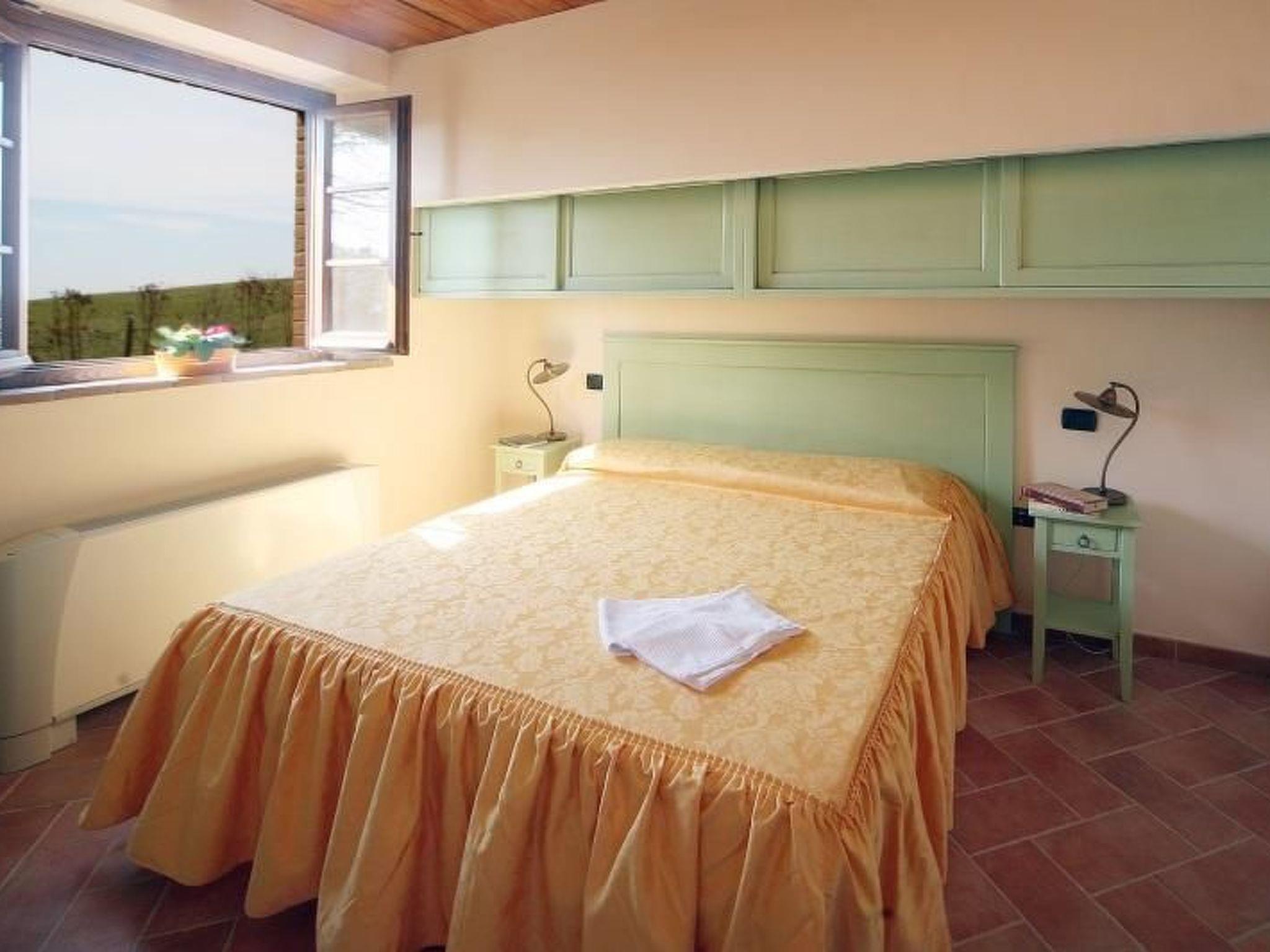 This accommodation is a detached farmhouse with living spaces entirely distributed on one level. It has a living room with kitchenette, a double bedroom and a private bathroom with shower. There is also a double sofa bed and a single bed, making the accommodation suitable for up to five persons. In front of the house there is a beautiful terrace where you can dine al fresco overlooking the pool.
