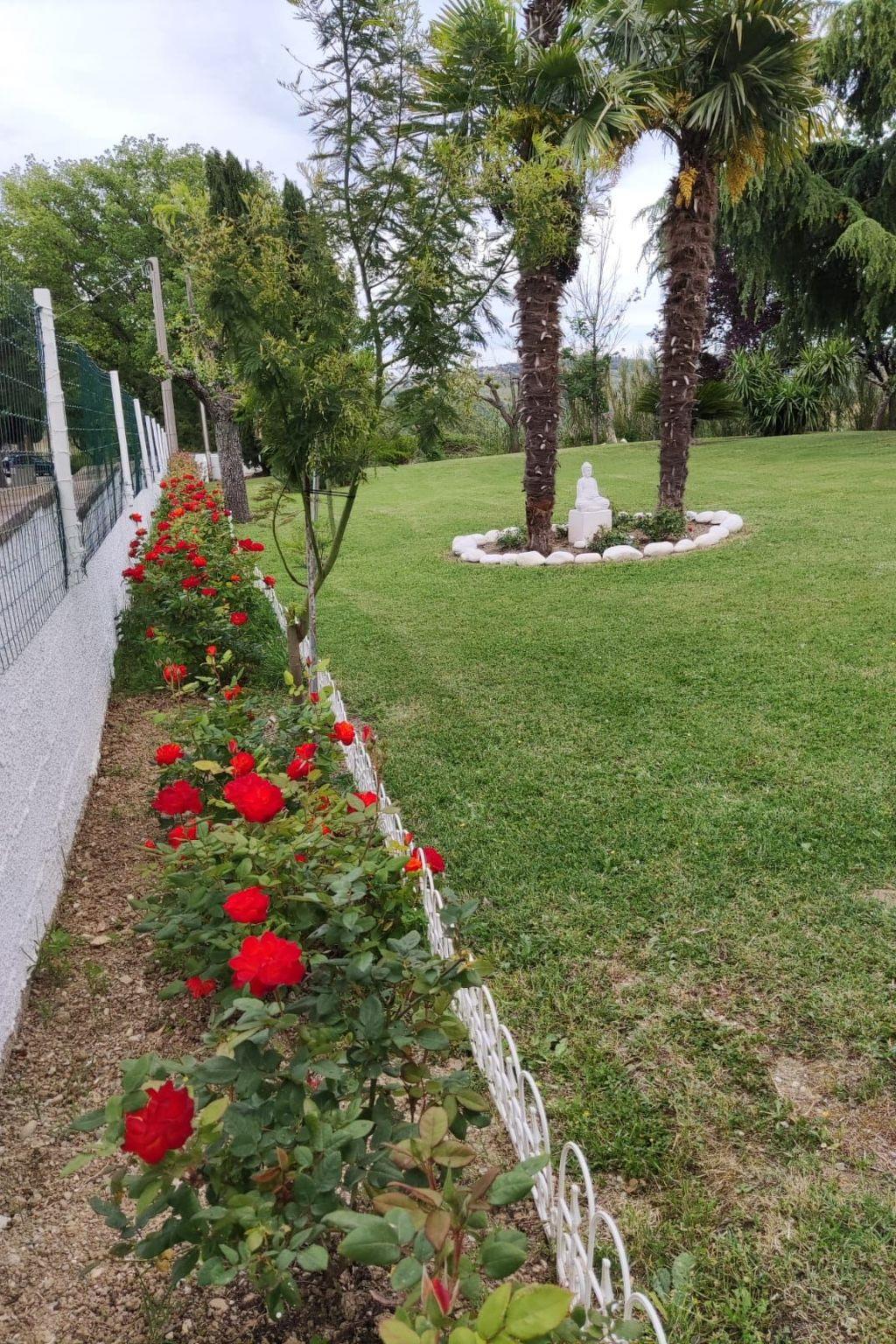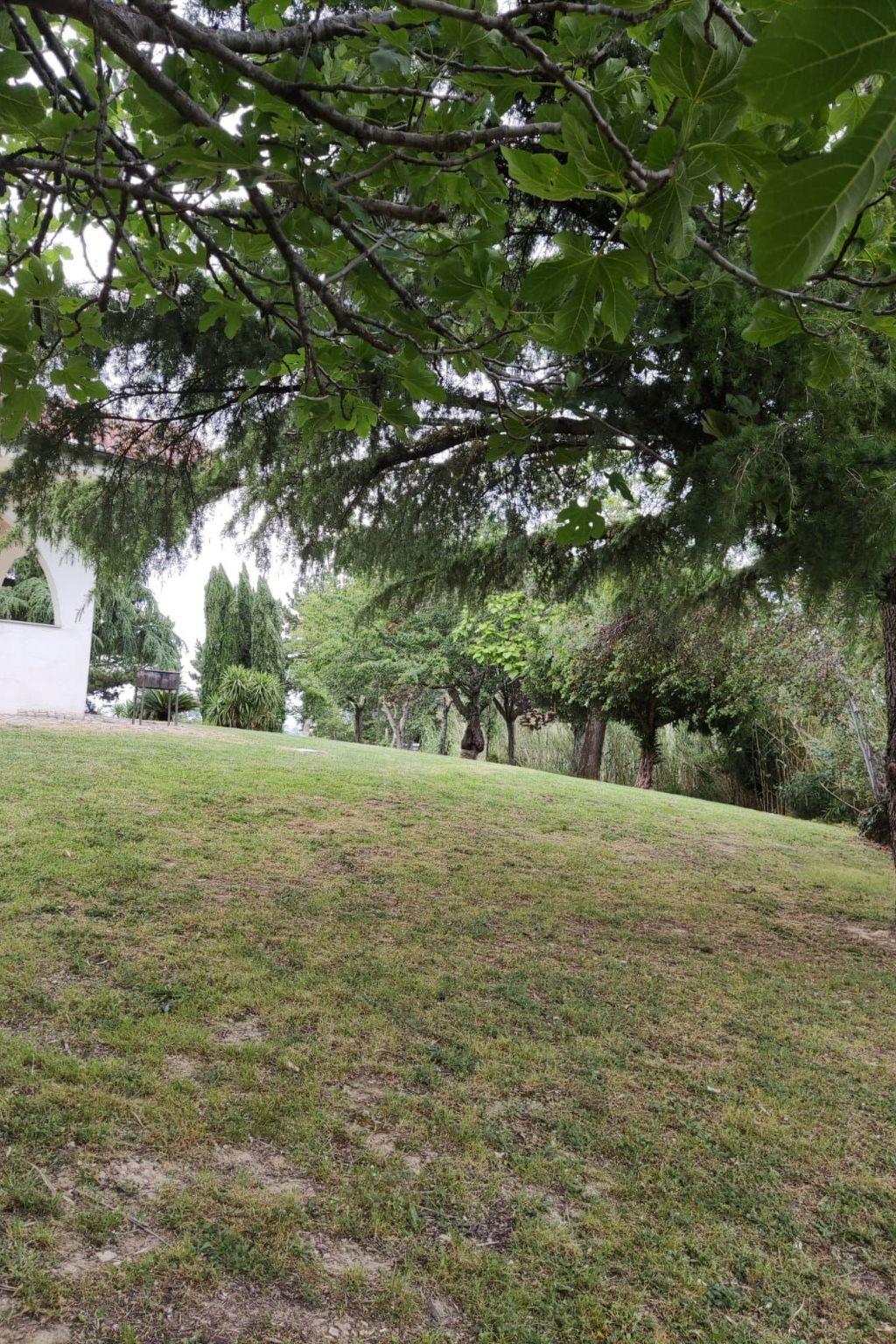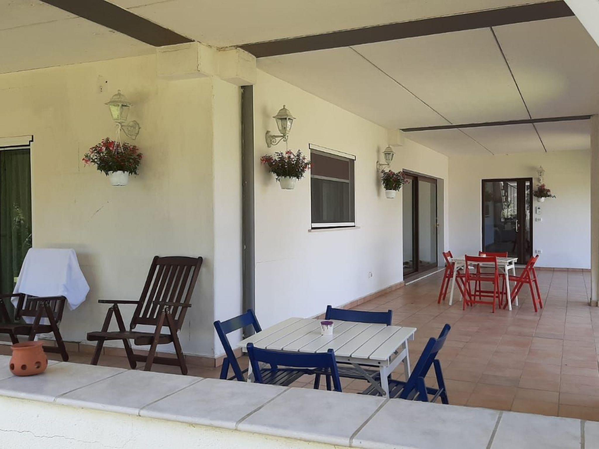 The property has a total area of 6000 square metres. On two sides of the house there is a porch that expands the already considerable size of the structure and allows for outdoor living even in rainy weather. The house is surrounded by a flat grassy park, planted with different varieties of plants.