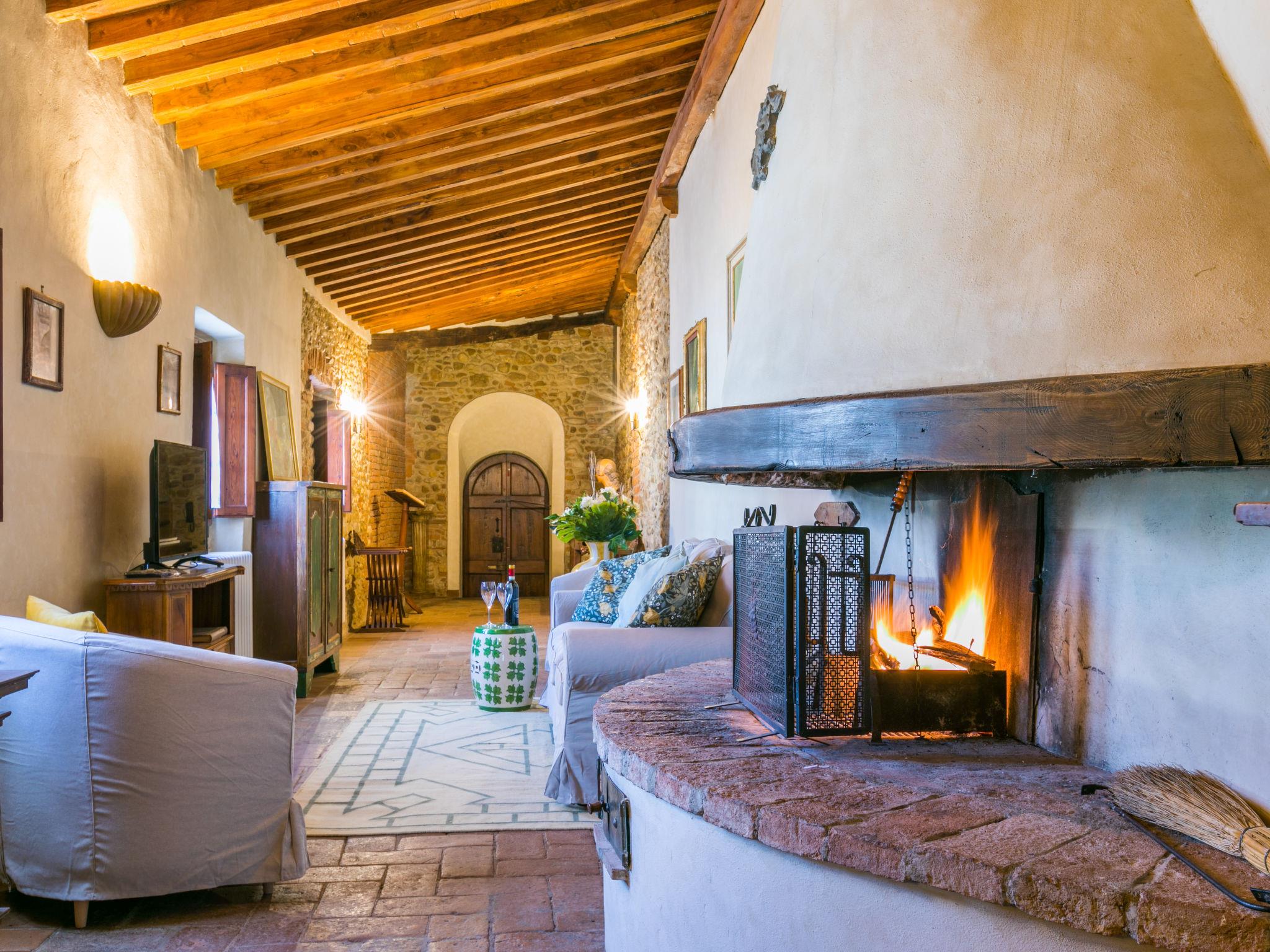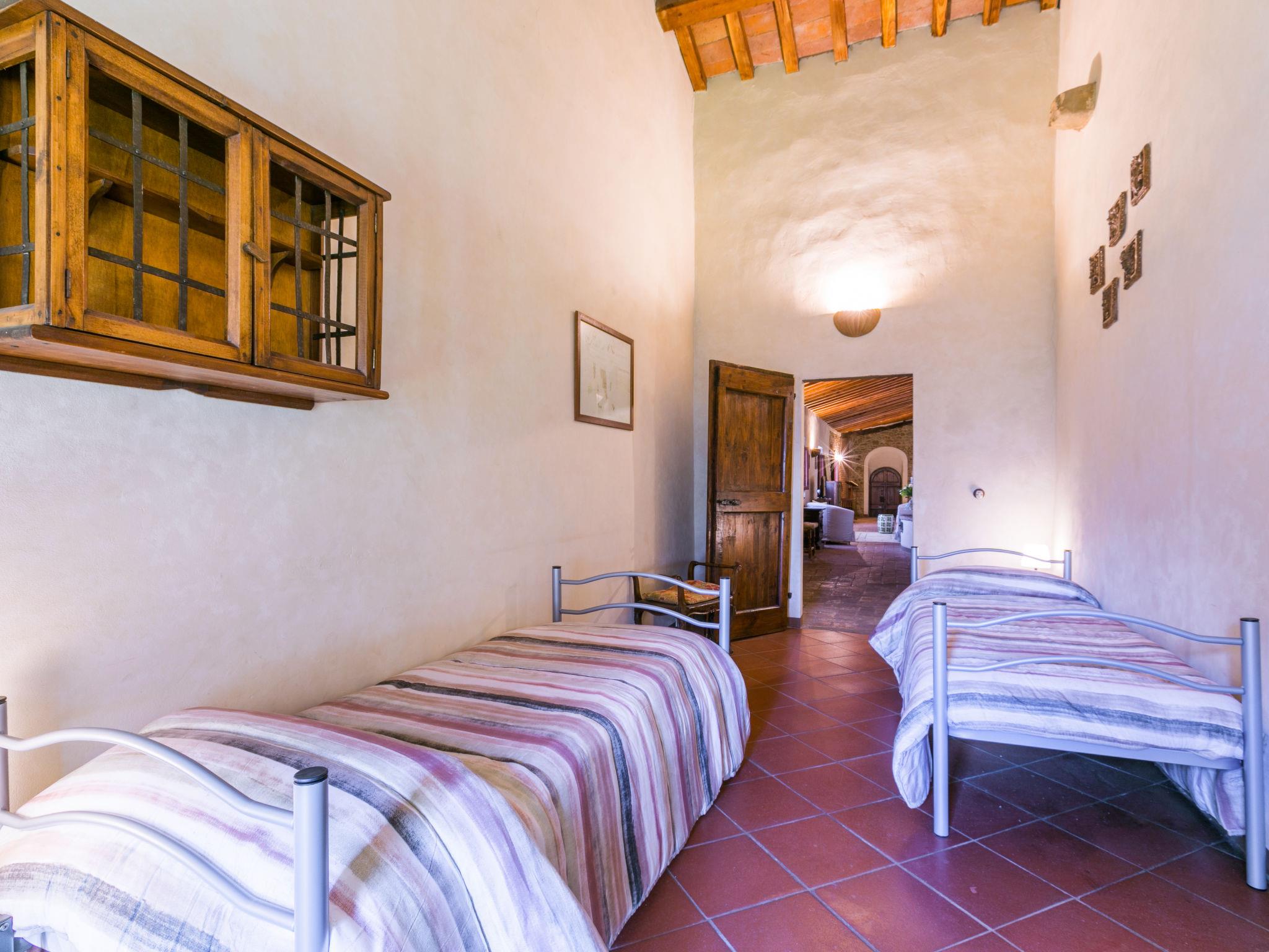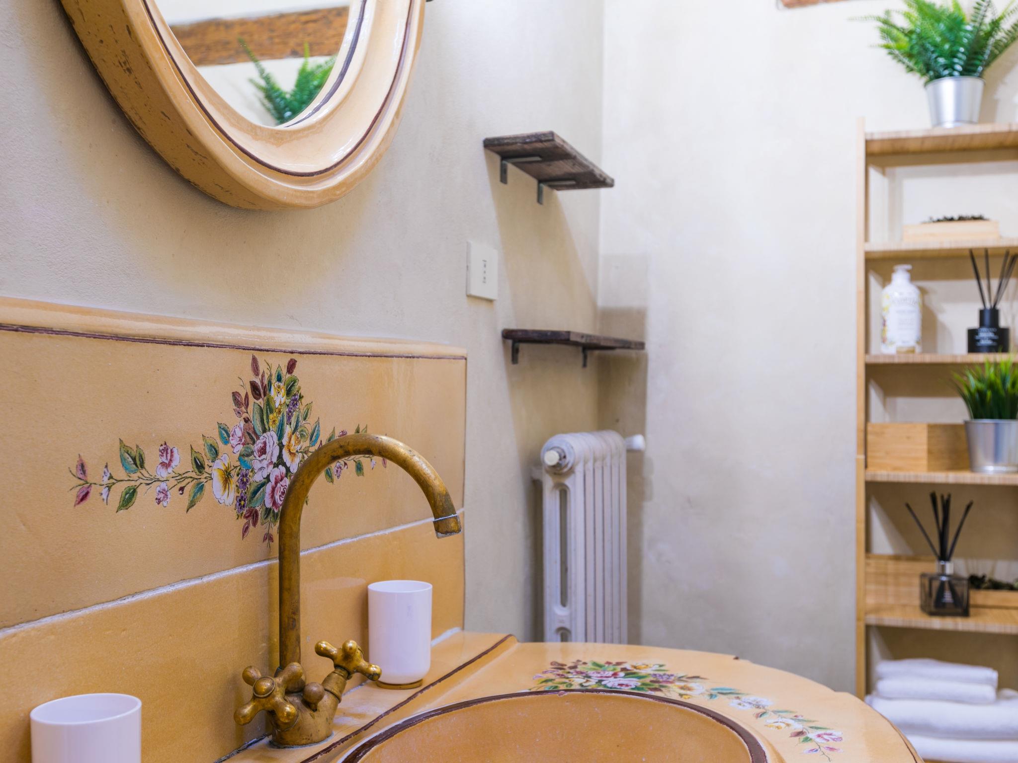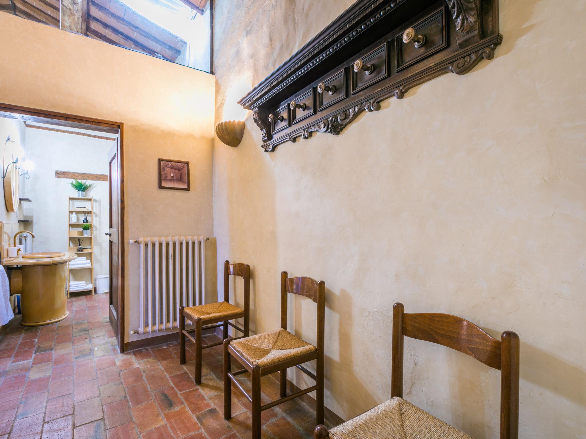 Montefiridolfi: Very old, historical cottage "Il Convento", from the 14th century, surrounded by vineyards. 10 apartments in the residence. 3 km from the centre of Montefiridolfi, in a sunny, elevated position on top of a hill, 90 km from the sea, in the countryside. Parking at the house. Shop 3 km, grocery 3 km, supermarket 8 km, restaurant 3 km, bakery 3 km, bus stop "Montefiridolfi" 3 km, sandy beach "Cecina Mare" 90 km, outdoor swimming pool 8 km, indoor swimming pool 8 km. Golf course (18 hole) 20 km, tennis 8 km, walking paths from the house 100 m. Nearby attractions: Firenze, San Gimignano, Siena. Please note: baby equipment (included).