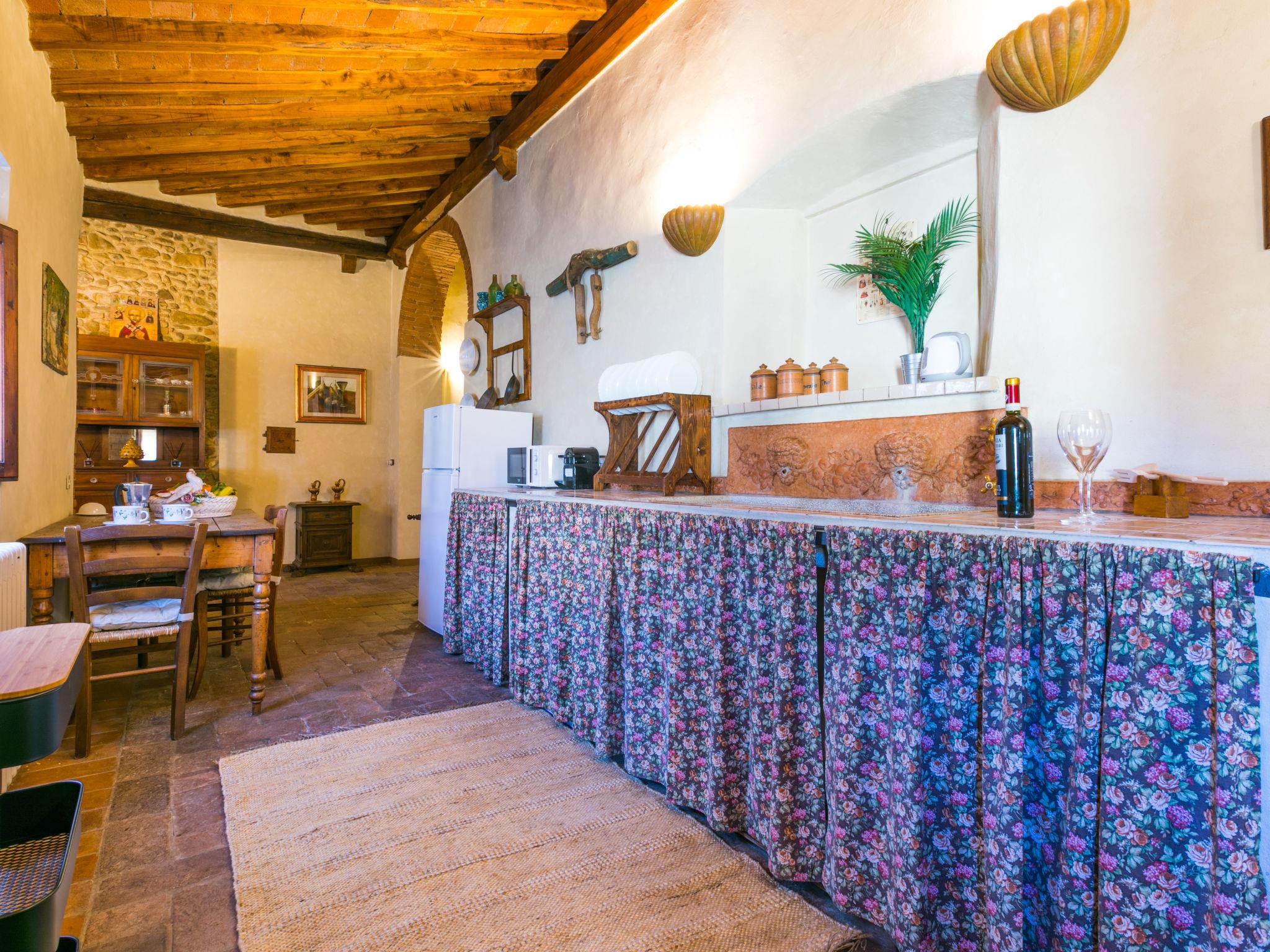 "Il Convento", 4-room apartment 100 m2 on 1st floor. Spacious, fully renovated, rustic and cosy furnishings: living/dining room with open-hearth fireplace and dining table. 2 double bedrooms. 1 room with 2 beds (90 cm). Open kitchen (oven, dishwasher, Gas stove, 4 gas rings, toaster, kettle, microwave, electric coffee machine). Shower/bidet/WC. Gas heating (extra). Natural stone floors. Box-room. Beautiful view of the countryside. Facilities: washing machine, iron, children's high chair, baby cot for up to 2 year olds, hair dryer, logs (extra). Internet (WiFi, free). Parking (1 car) at the house. Please note: non-smokers only. Maximum 1 pet/ dog allowed. IT048038C2G4OEQT6S