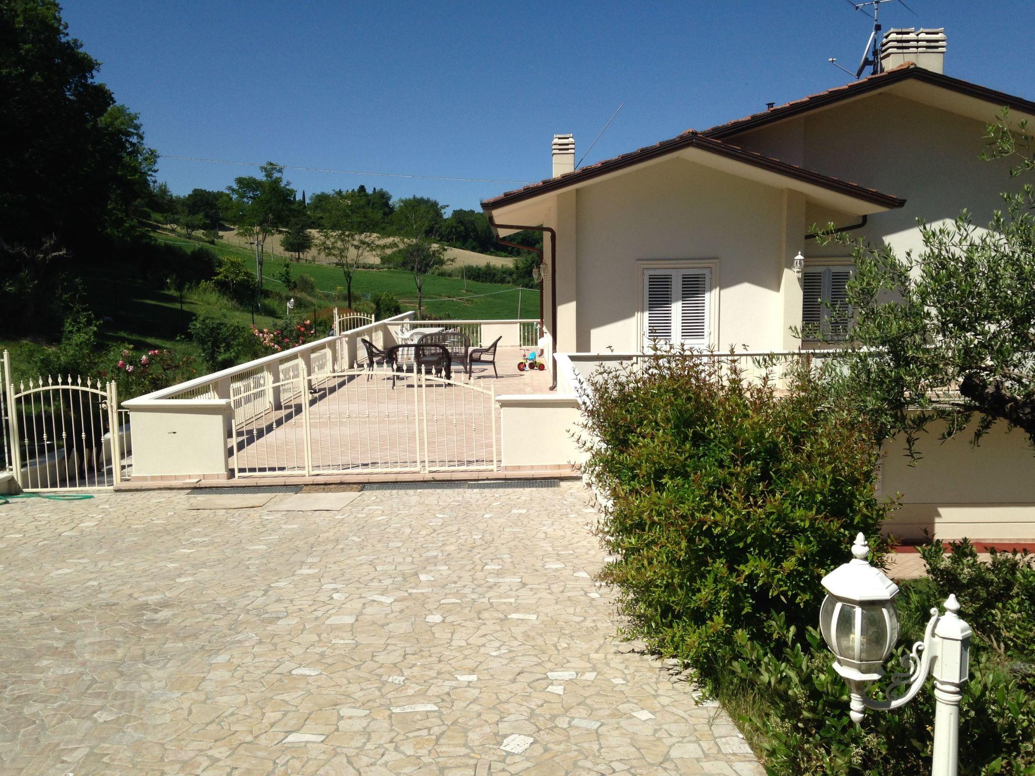 The villa is served by delivery food from local restaurants, pizzerias and inns offering typical and genuine Italian food at favourable prices. Montelabbate is connected by a fast road by car, about 20 minutes from the city of Pesaro. The villa is situated in a hilly position, accessible by a fully asphalted and illuminated road at night. The Pesaro railway station, served by regional and or fast trains and offering a car rental service, is 20 minutes from the villa. The Federico Fellini International Airport in Rimini is about 30 minutes' drive away, with connections to many European destinations.