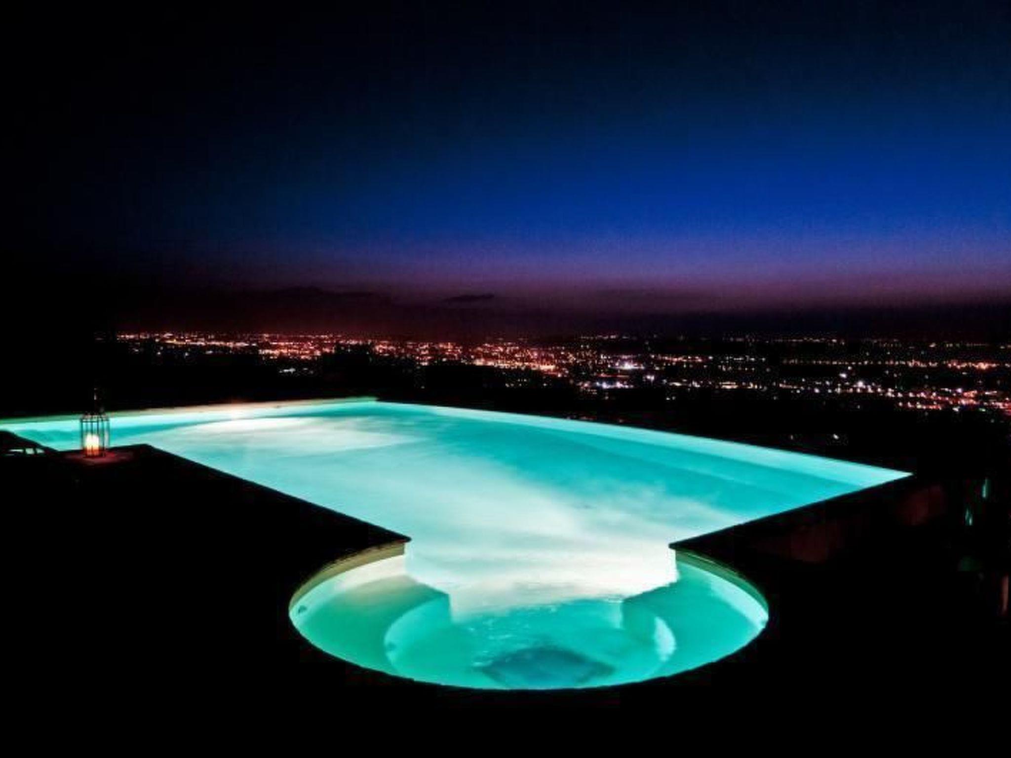 Outside there is a large and bright veranda furnished with table, chairs and deckchairs, where it is possible to sunbathe quietly, have wonderful al fresco breakfasts or romantic dinners, and where our guests can relax whenever they wish, enjoying a suggestive view in complete peace. The beautiful swimming pool (10.5 x 7.5 m) with salt water system and whirlpool area, equipped with sun loungers, table and chairs, is surrounded by lawn and framed by rolling hills, an ideal place to relax and take a refreshing dip. It was built near the olive grove, far from any noise that might disturb the tranquillity of those who prefer to enjoy the quiet of the Tuscan countryside. Use of the pool is reserved for guests and the owners who live in the house next door. The property is also equipped with heating, a mains socket for internet connection, washing machine, iron and ironing board, barbecue, kettle, moka and American coffee machine, safe, alarm system, ceiling fans, first-aid kit, hair dryer, torch, automatic gate, free covered parking and a spacious, independent garden. The house is located in a particularly charming part of Chianti, above the Arno valley and about 230 metres above sea level. The most famous Tuscan cities are all within easy reach: only 20 minutes from Florence, 10 minutes from Vinci and San Miniato, 30 minutes from Pisa, 50 minutes from Siena, Volterra, Monteriggioni and San Gimignano. The structure follows the formula of the 5 basic ingredients: Personality, Courtesy, Tranquillity, Charm, Satisfaction of our guests.