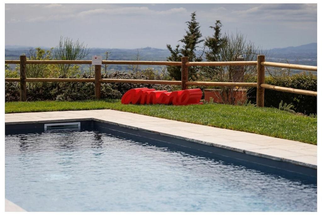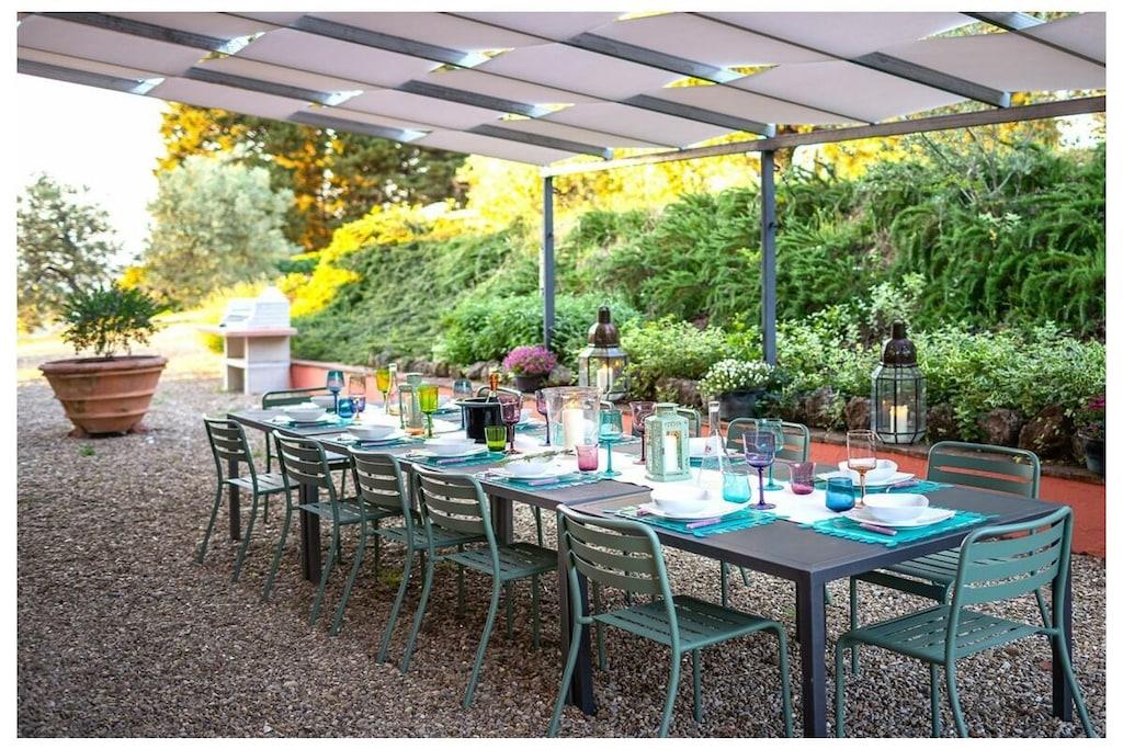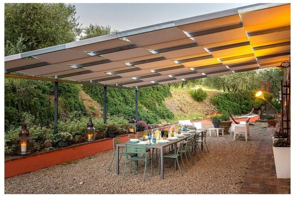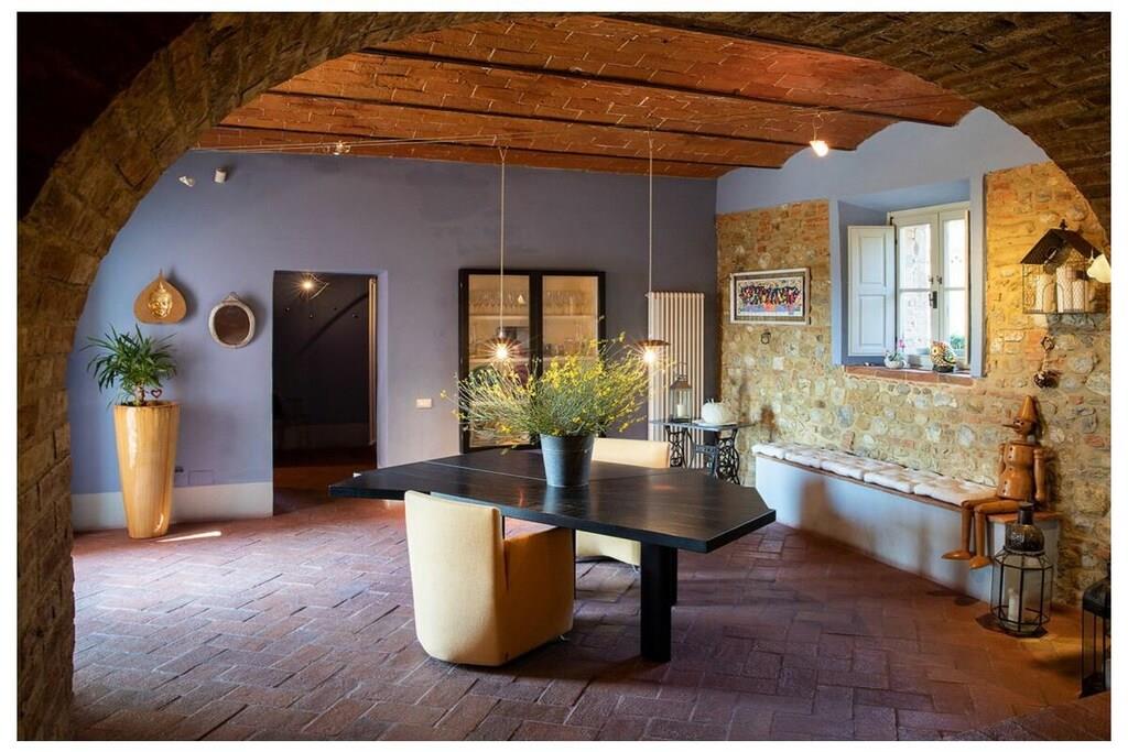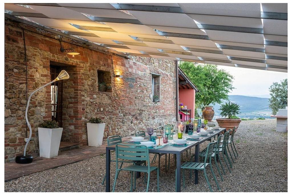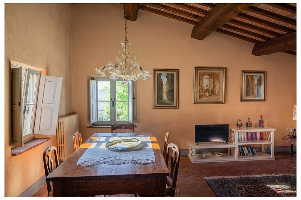 Es bietet Platz für bis zu 11 Personen, hat 6 Schlafzimmer und 6 Bäder. Umgeben von einem privaten Garten mit Rasen und verschiedenen Pflanzen, genießt das Anwesen eine Panoramalage und eine große Terrasse mit Grill und Esstisch für 12 Personen. Im Außenbereich finden Sie einen schönen Pool (7,3 x 3,3 m, Tiefe 1,4 m), der von Mai bis September geöffnet ist. Der Pool ist ausgestattet mit: Hydromassagebereich (direkt an der Eingangstreppe), Sonnenliegen, Außendusche und Hängematte. Zur Verfügung der Gäste steht auch ein privater Parkplatz mit 4 überdachten und 4 nicht überdachten Stellplätzen. Neben der Villa Botinaccio befindet sich eine weitere Villa, "Casina Botinaccio", die denselben Eigentümern gehört und ebenfalls von Touristen gemietet werden kann. Die Gärten und Pools der beiden Häuser sind weit voneinander entfernt und nicht einsehbar, um die größtmögliche Privatsphäre zu gewährleisten. Größere Gruppen können beide Häuser gemeinsam mieten. Innere Beschreibung Die komplett restaurierte Villa Botinaccio mit ihren Terrakottaböden und Decken aus Altholz erstreckt sich über 2 Etagen und kann bis zu 11 Personen beherbergen. Sie verfügt über 6 Schlafzimmer und 6 Badezimmer. Internet Wifi ist nur im Wohnbereich und in einigen an die Villa angrenzenden Außenbereichen verfügbar. Haustiere sind nur auf Anfrage erlaubt (gegen Aufpreis). Ein Kinderbett und ein Hochstuhl sind auf Anfrage erhältlich. Es gibt keine Klimaanlage, aber die Wände des Hauses sind sehr dick und halten alle Räume natürlich kühl. Alle Schlafzimmer haben Deckenventilatoren. Erdgeschoss: Das Erdgeschoss besteht aus zwei Wohnzimmern mit Sofas und einer großen Küche, gekennzeichnet durch schöne Bogenfenster, die einen herrlichen Blick auf das umliegende Tal bieten. Die Küche ist ausgestattet mit: Kühlschrank, Backofen, Herd, Mikrowelle, Toaster, Geschirrspüler, Wasserkocher, Kaffeemaschine, und Esstisch für 6 Personen. Es folgen zwei Doppelschlafzimmer (eines davon mit einem separaten Ankleidezimmer und einem geräumigen Bad mit Dusche) und ein Durchgangszimmer/Arbeitszimmer, das das Erdgeschoss mit dem ersten Stock verbindet (mit Einzelbett und Schreibtisch). Schließlich gibt es noch ein Badezimmer mit Dusche und eine Toilette. Erster Stock: Im Obergeschoss befinden sich zwei Wohnzimmer mit Sofas und Kamin, eine Toilette und eine helle Küche mit Panoramaterrasse (mit Sofa und Stühlen). Die Küche ist ausgestattet mit: Kühlschrank, Backofen, Herd, Toaster, Geschirrspüler, Kaffeemaschine und Esstisch für 4 Personen. Der Schlafbereich besteht aus: einem Schlafzimmer mit Doppelbett und eigenem Bad mit Dusche, einem weiteren Schlafzimmer mit Doppelbett, einem Schlafzimmer mit zwei Einzelbetten und einem Bad mit Dusche. Preise und Konditionen Im Preis inbegriffen: Haus-, Pool- und Gartenpflege; Wasserverbrauch; Brennholz (1 Korb); wöchentlicher Wechsel der Bettwäsche und Handtücher; Internet Wifi; Babybett und Hochstuhl (auf Anfrage); private Nutzung des Pools (einschließlich des Hydromassagebereichs).