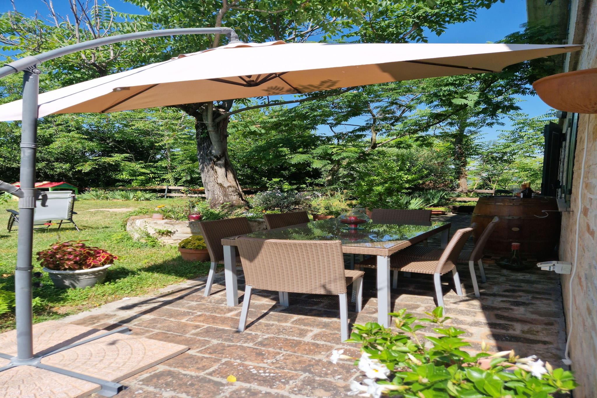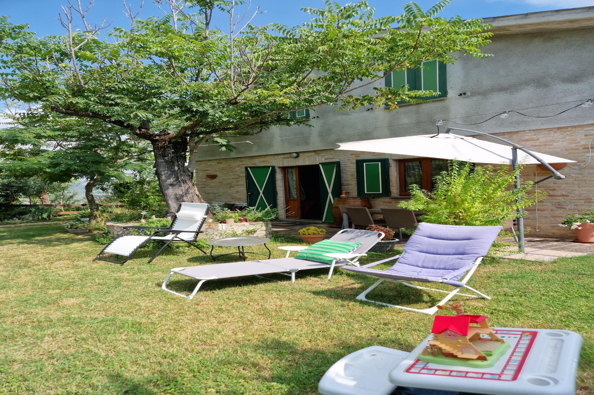 På en grøn bakke, omgivet af mange oliventræer og kun cirka 18 kilometer fra stranden i Fano ved Adriaterhavet: Fritliggende feriehus med have og naturgrund på cirka 1.000 kvadratmeter. I nærheden er der talrige historiske udflugtsmål såsom den berømte drypstensgrotte "Grotte di Frassasi", det hertuglige Palazzo Ducale og mange middelalderlige bjerglandsbyer som Montemaggiore sul Metauro, Orciano og Mondavio. Ikke egnet til personer med nedsat mobilitet