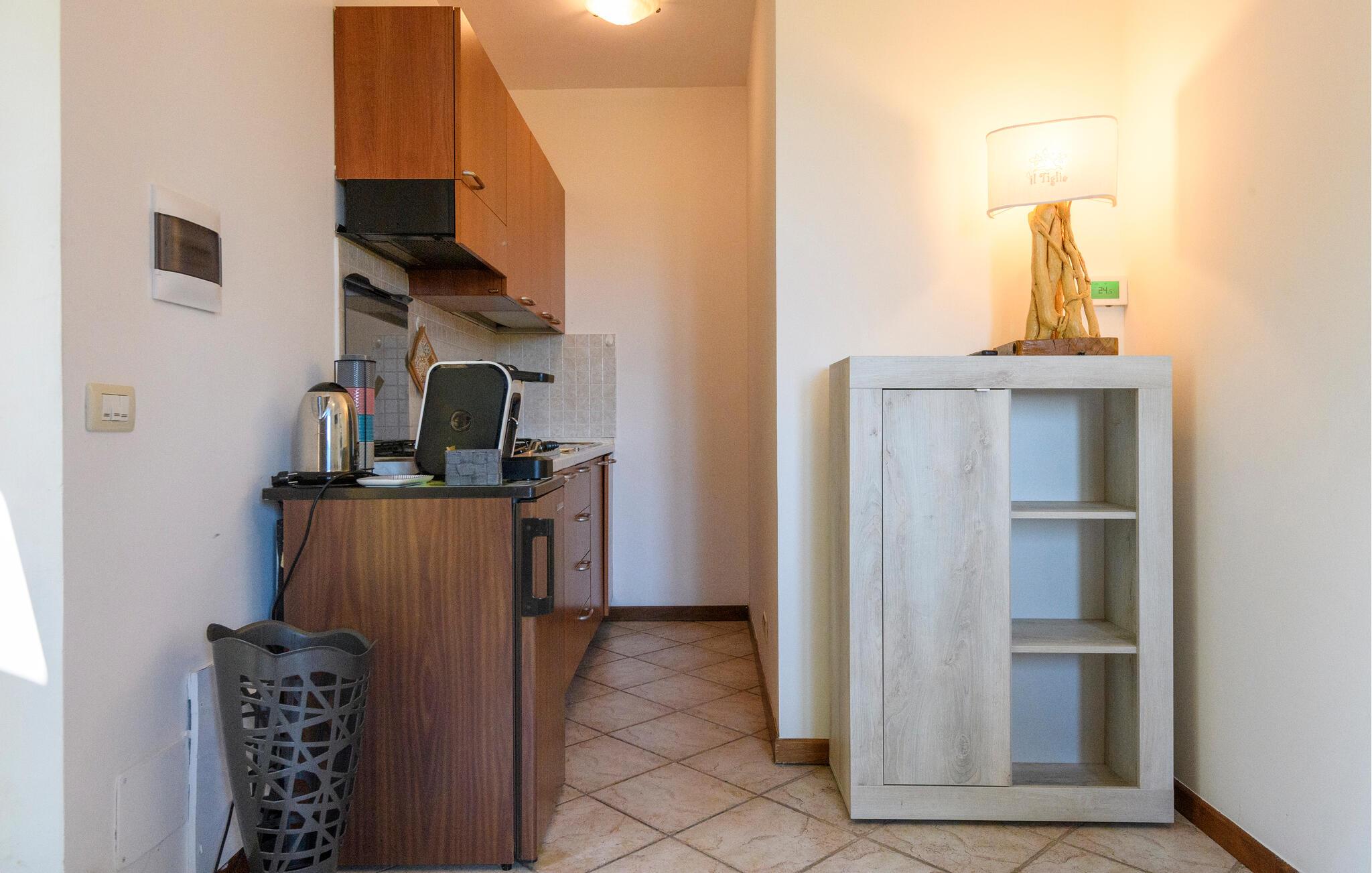 Denne ferielejlighed tilbyder de optimale rammer for en afslappende ferie i landlige omgivelser. I bor i et naturstenshus med fælles pool og sauna. Gå ind i den lyse opholdsstue med sofa, tv og spisebord. Nyd jeres måltider her eller slap af med en film efter en udflugt. Tilbered enkle måltider i det lille tekøkken.