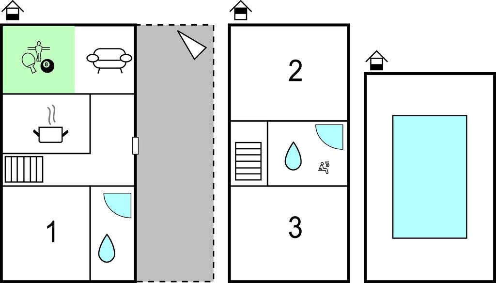 Soveværelse 16m2 (nr. 1) - 1 Soveplads. (Enkeltseng(e)). 2 Sovepladser. (Dobbeltseng(e)).