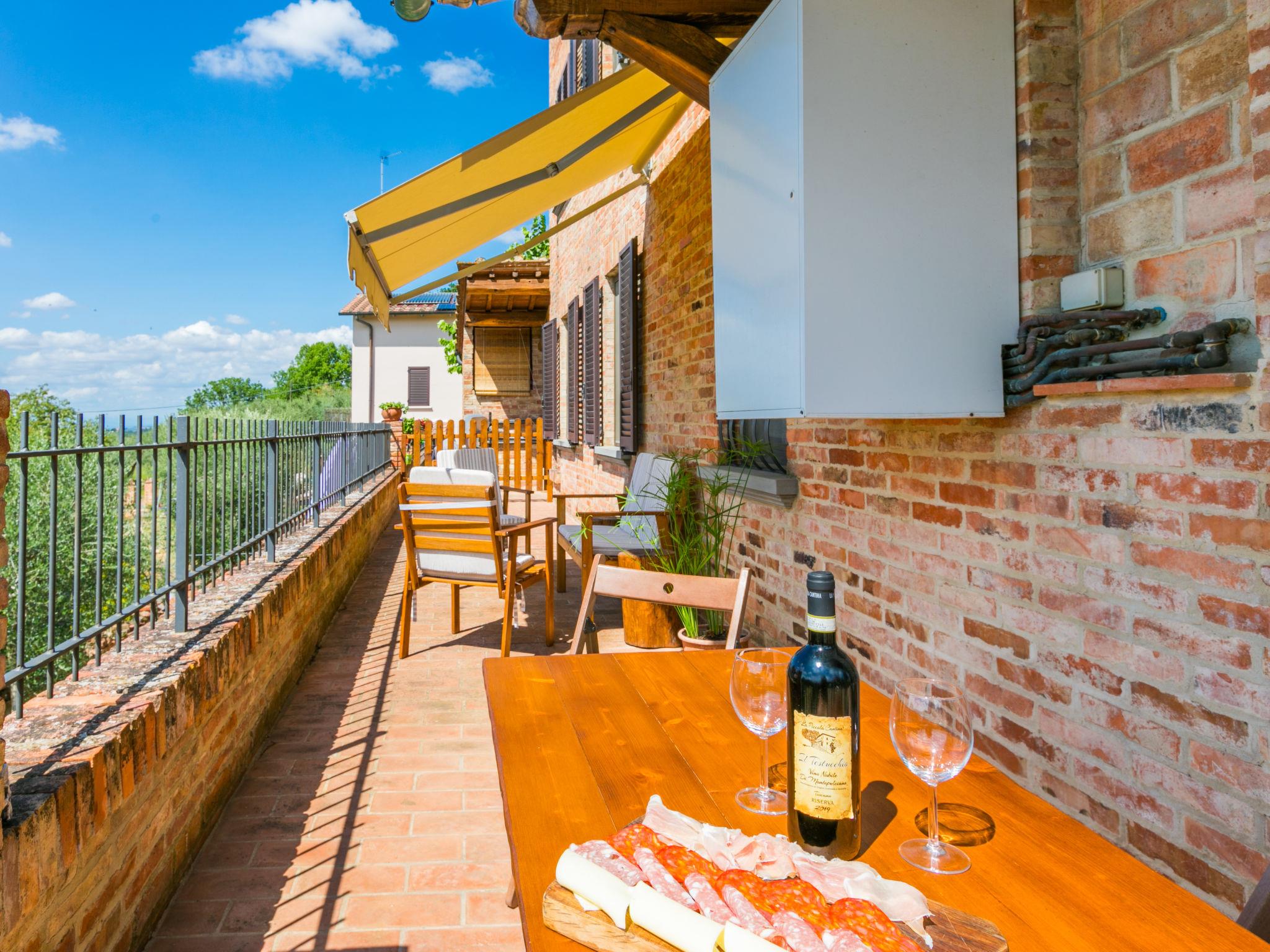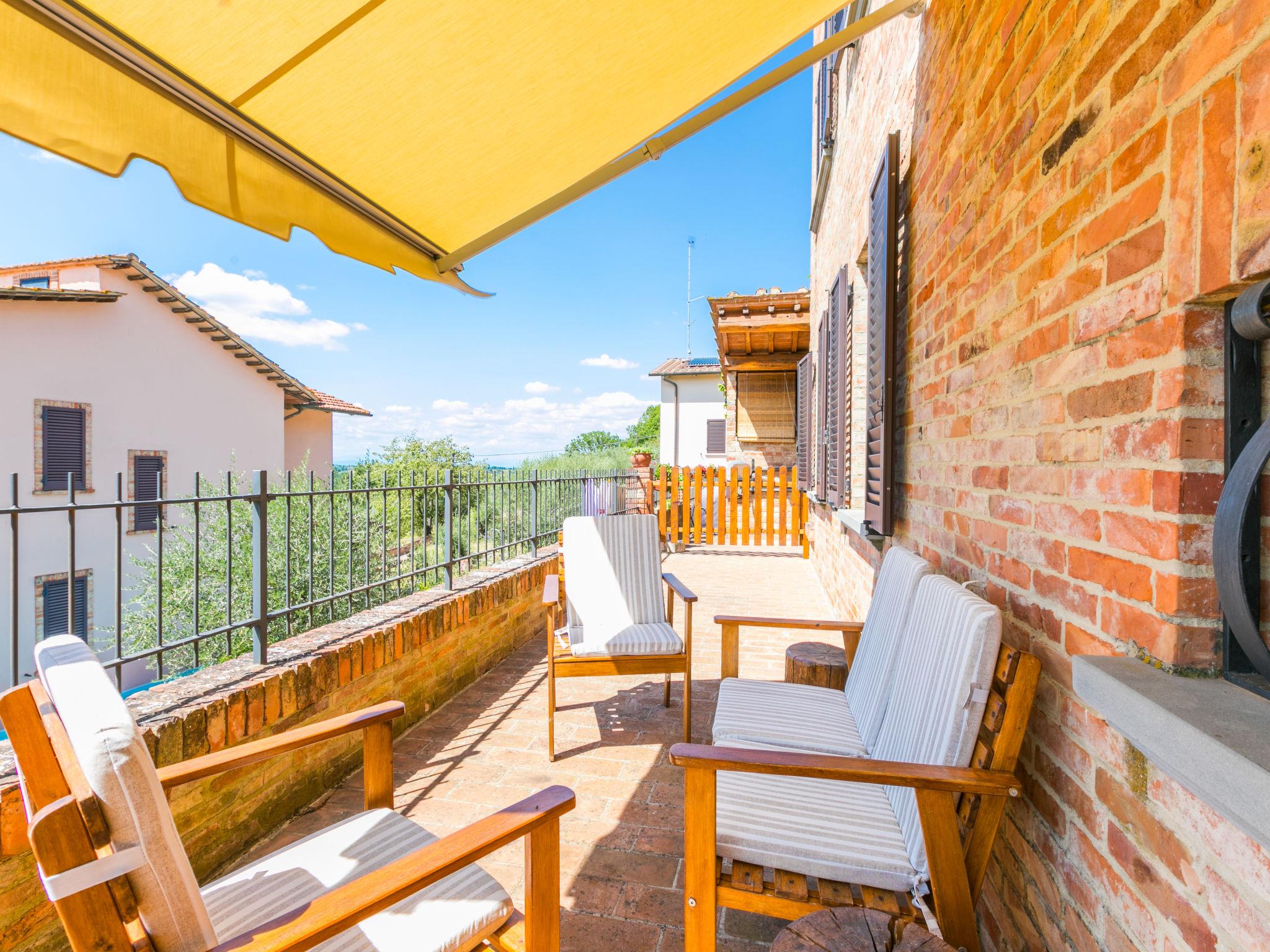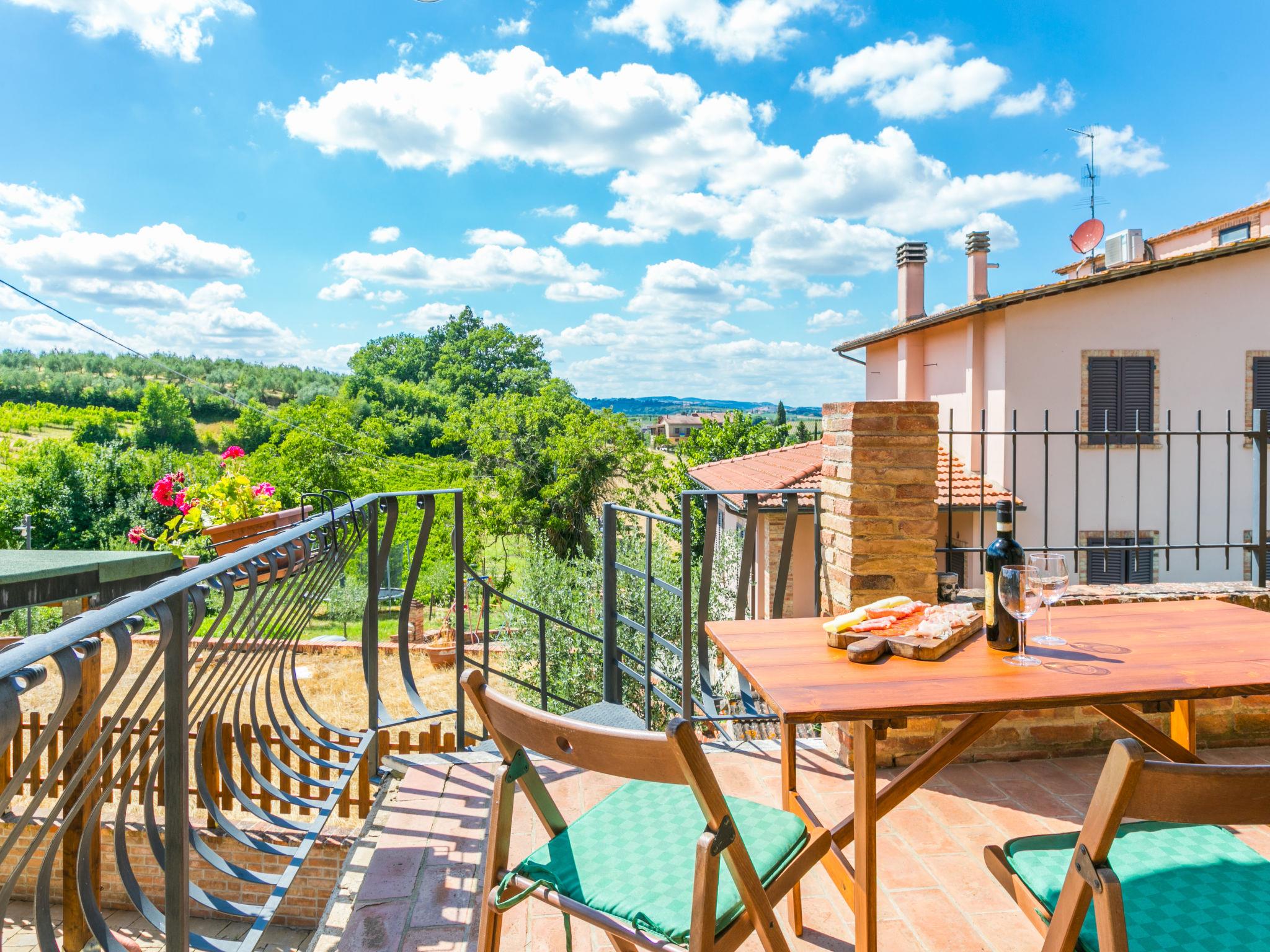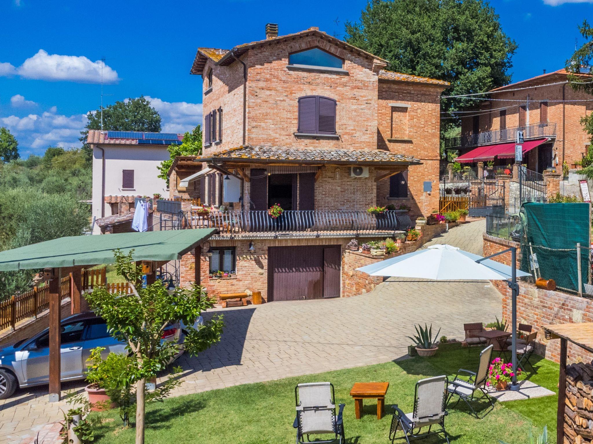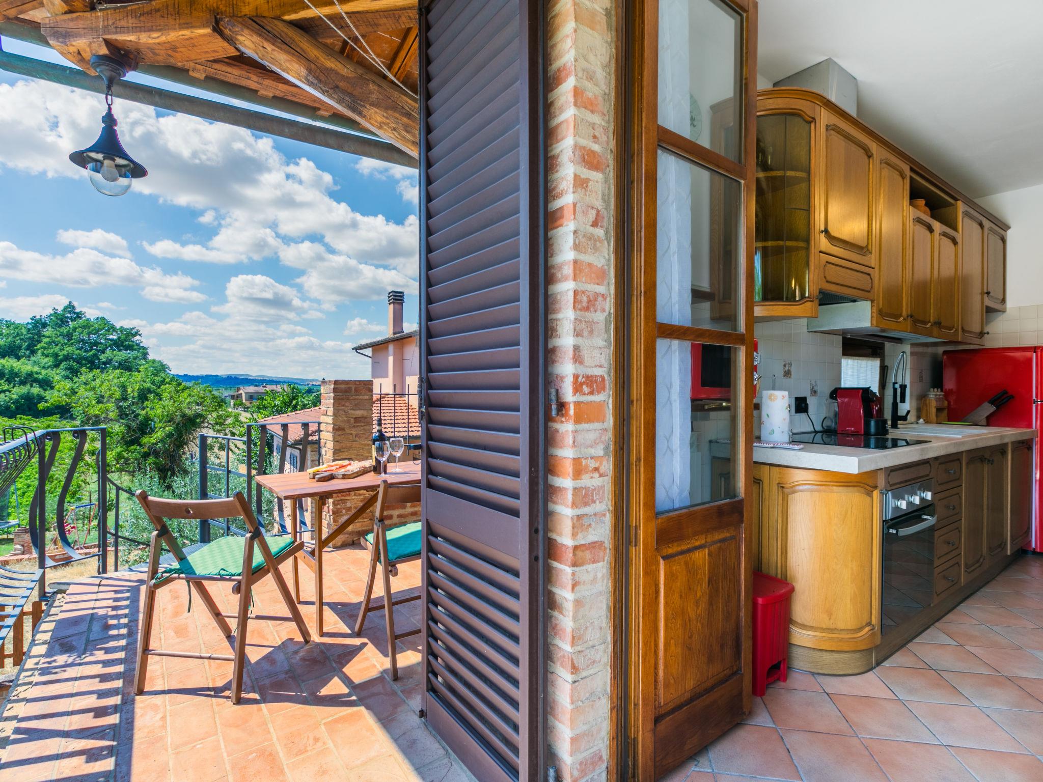Montepulciano: Modern, comfortable 2-family house "Le rondini". 2 apartments in the property. In the district of Cervognano 5.2 km from the centre of Montepulciano, 16 km from the centre of Chiusi, in an elevated position in the residential district. For shared use: property (fenced), terraced garden, roofed, parking at the house. Shop 5 km, grocery 5 km, supermarket 5 km, restaurant 50 m, bus stop "Acquaviva" 2.6 km, railway station "Montepulciano Scalo" 5.2 km, indoor swimming pool 5.2 km, thermal baths "Chianciano Terme" 16 km. Nearby attractions: Montepulciano 5 km, Pienza 20 km, Cortona 26 km, Montalcino 41 km, Siena 70 km. Well-known lakes can easily be reached: Montepulciano 9 km, Trasimeno 20 km. Please note: car recommended. Baby equipment (included). Object suitable for 2 adults + 1 child. The owner lives in the same residence. The owner has a dog.