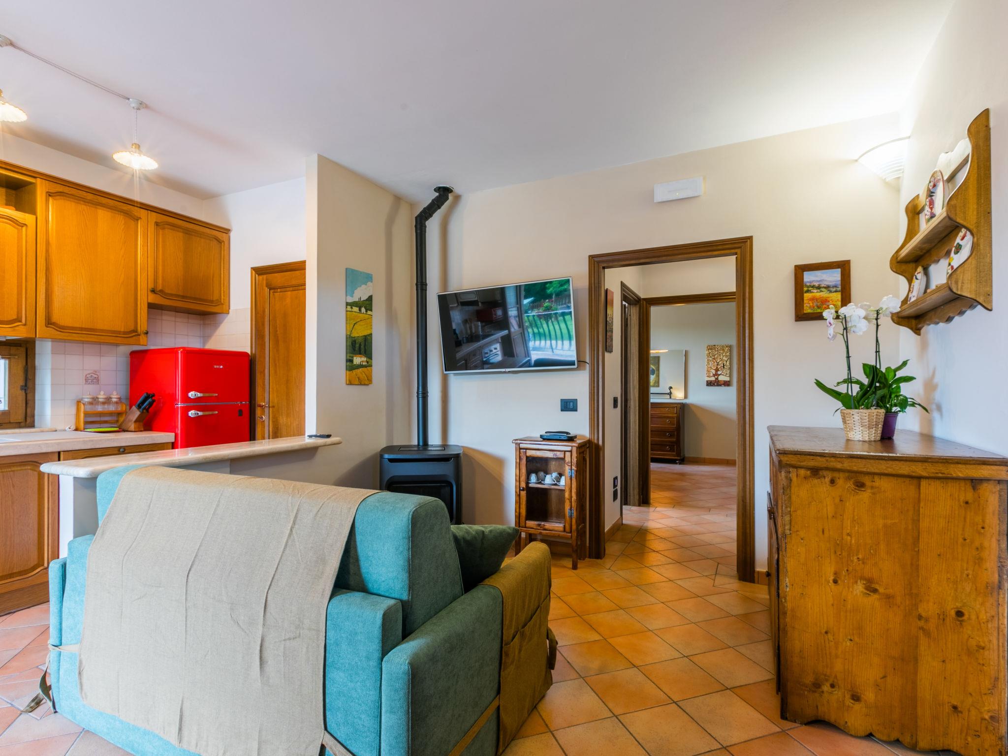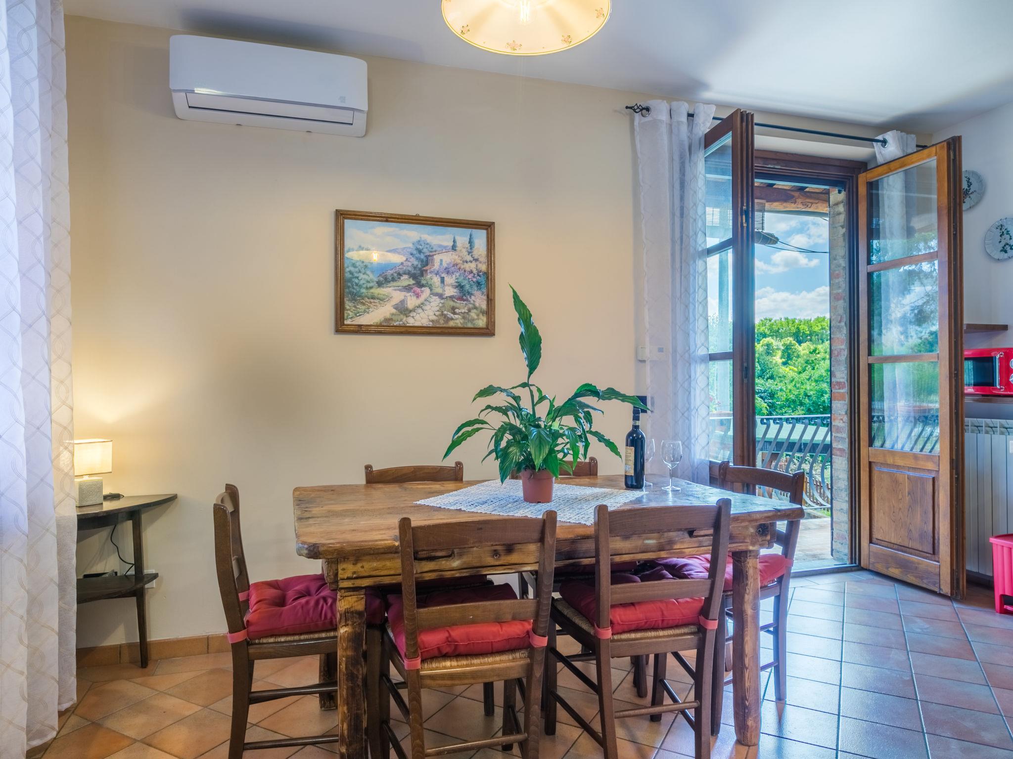 "Le rondini", 2-room apartment 54 m2, on the ground floor. Object suitable for 2 adults + 1 child. Modern and tasteful furnishings: living/sleeping room with 1 sofabed, dining table and air conditioning. 1 double bedroom with air conditioning. Open kitchen (oven, dishwasher, 4 induction hot plates, toaster, kettle, microwave, electric coffee machine) with dining table. Shower/bidet/WC. Heating, air-conditioning. Natural stone floors. Terrace, patio. Terrace furniture, barbecue, deck chairs (3). Side panoramic view of the countryside. Facilities: washing machine, iron, mosquito net, children's high chair, baby cot for up to 2 year olds, hair dryer. Internet (WiFi, free). Parking (roofed) at the house. Please note: non-smokers only. Maximum 1 pet/ dog allowed. Private entrance, smoke alarm, fire extinguisher. IT052015C254SH5JEQ