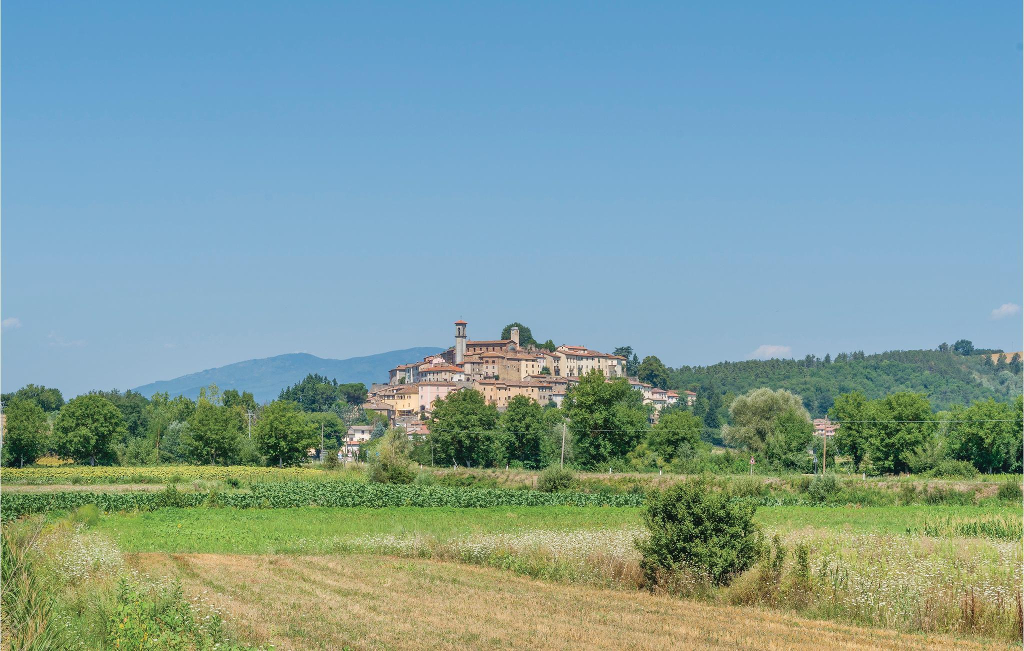 Dette lille feriehus ligger malerisk i bakkerne, 3 km fra Monterchi. Denne forhenværende lade er blevet til en hyggelig bolig for feriegæster, der leder efter fred og ro i naturen. I stueetagen ligger et stuekøkken med udgang til den overdækkede terrasse, på første sal et hyggeligt soveværelse med badeværelse. Indretningen er rustik. Feriehuset er omgivet af en velplejet havegrund med oliventræer og rosebuske, og hvor I over det hele har en vidunderlig udsigt over bakkerne. Huset ligger i kanten af en lille bebyggelse, og ejeren bor en gang imellem i nabohuset. I Tiberdalen kan I vandre den hellige Frans af Assisis fodspor, også på cykel, i bil eller med toget (Sansepolcro-Perugia). Desuden når I herfra nemt de seværdige umbriske og toskanske byer i omgivelserne som Anghiari (10 km), San Sepolcro (12 km), Città di Castello (15 km), Arezzo (35 km). Der er 3 km til til Monterchi med den berømte gravide Madonna af Piero della Francesca, restauranter, sommerlige koncerter på piazzaen og den årlige polenta-fest i september.