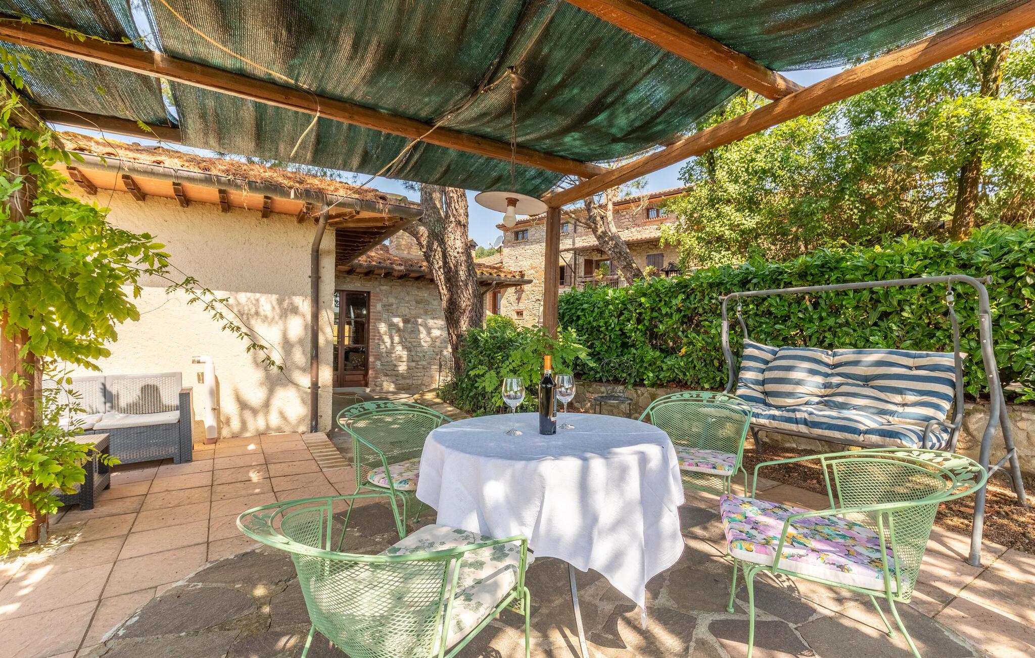 Glæd jer til at gå lange ture gennem de maleriske omkringliggende bakker. Olivenlunde, cypressalléer og vinmarker danner en malerisk baggrund for jeres udforskninger. Besøg den charmerende landsby Monterchi med dens velbevarede gamle bydel og oplev den berømte "Madonna del Parto" af Piero della Francesca på det lokale museum. Tag dagsture til de kulturelle byer i området: Arezzo, Anghiari eller Sansepolcro er lettilgængelige og byder på middelalderlig stemning og livlige pladser.