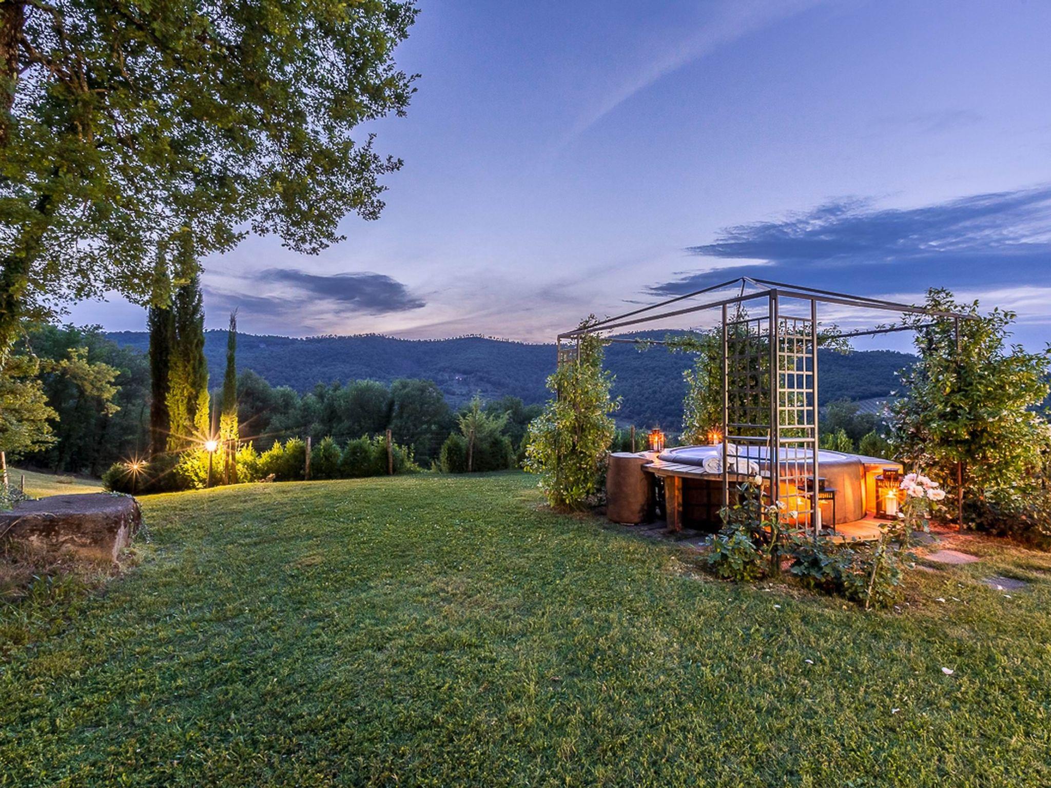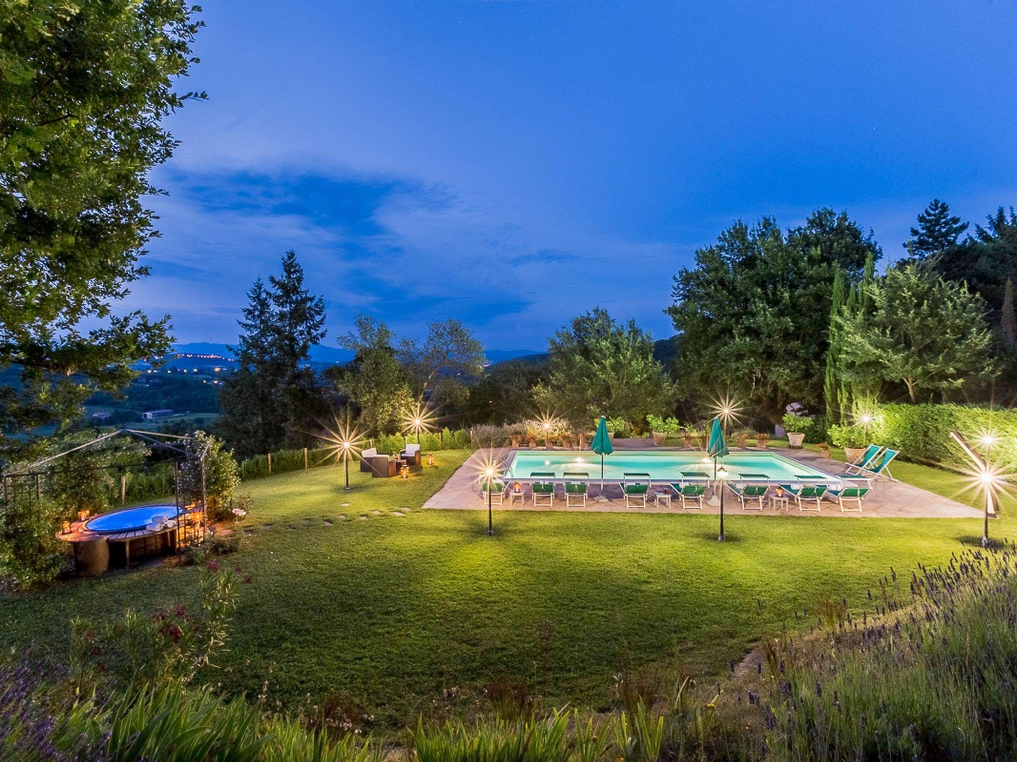 Splendid villa suitable for up to 10 people, originally a 17th century watchtower, with magnificent views over the Tuscan hills. Enjoy the view with a good glass of wine at any time of day, but especially at sunset.