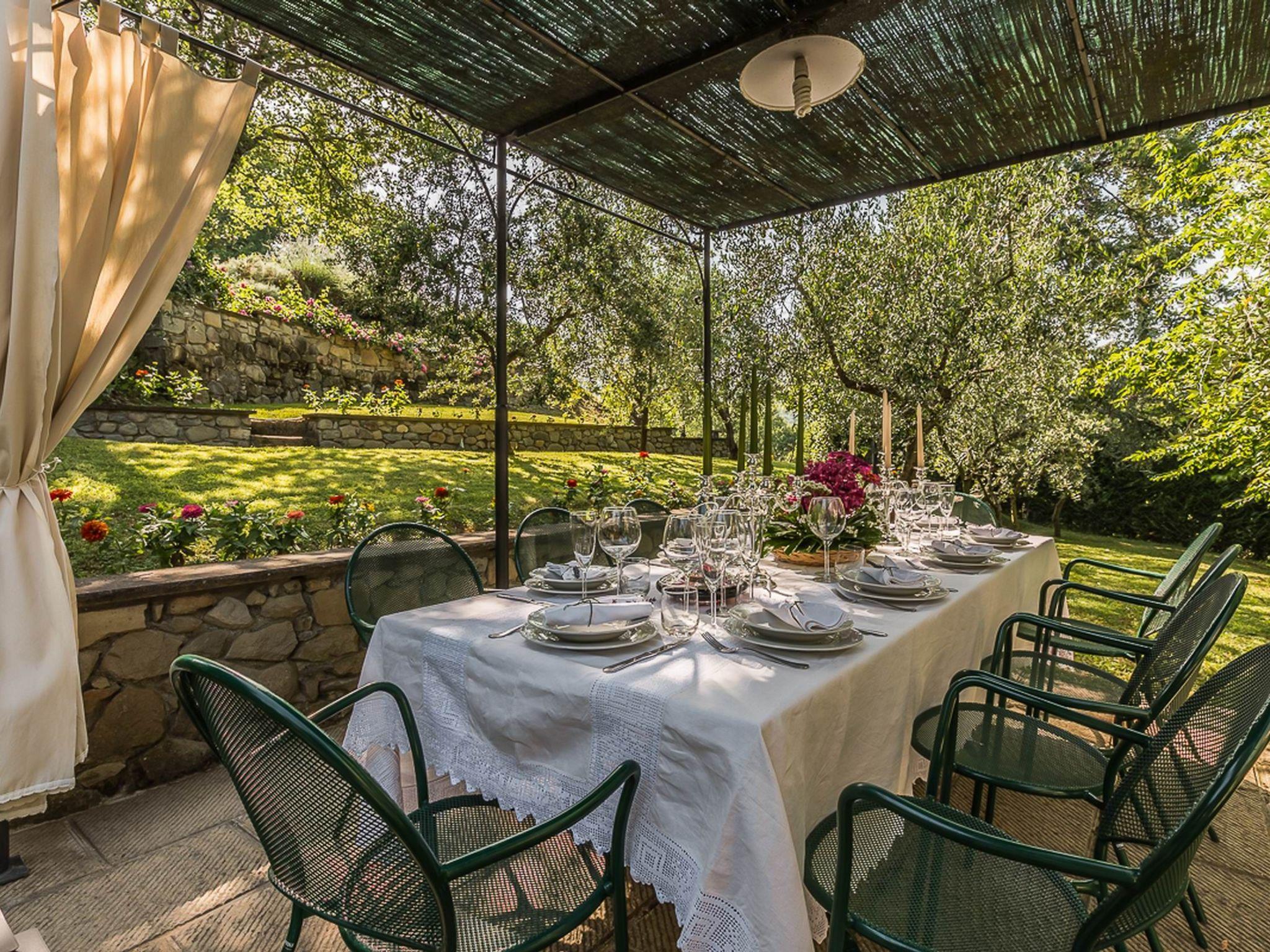 The property boasts a large garden with a gazebo full of olive trees, fruit trees and flowers, as well as a swimming pool (150 cm deep, 6 x 12 m, open from mid-April to mid-October) and a Jacuzzi (available on request). Here you can enjoy a breathtaking view of the surrounding countryside while relaxing in the pool or hot tub. On a slightly lower garden level, there is a lovely gazebo with a table for 10 and a barbecue, perfect for al fresco dining.
