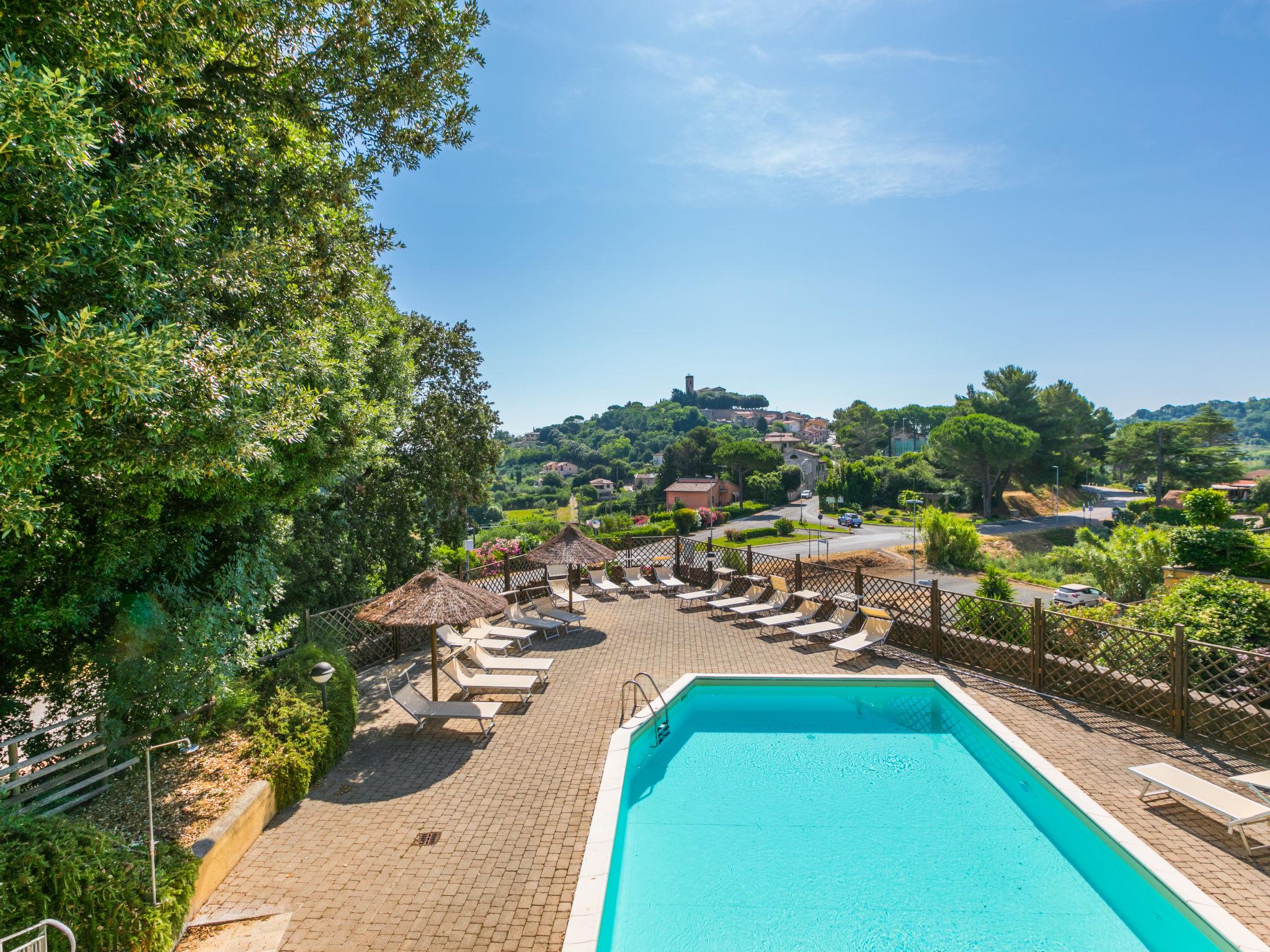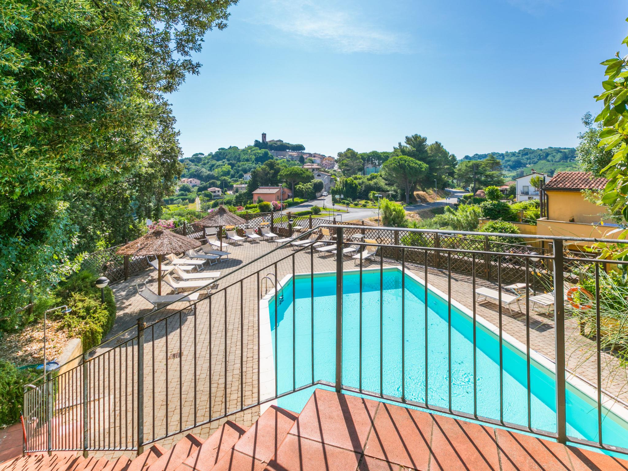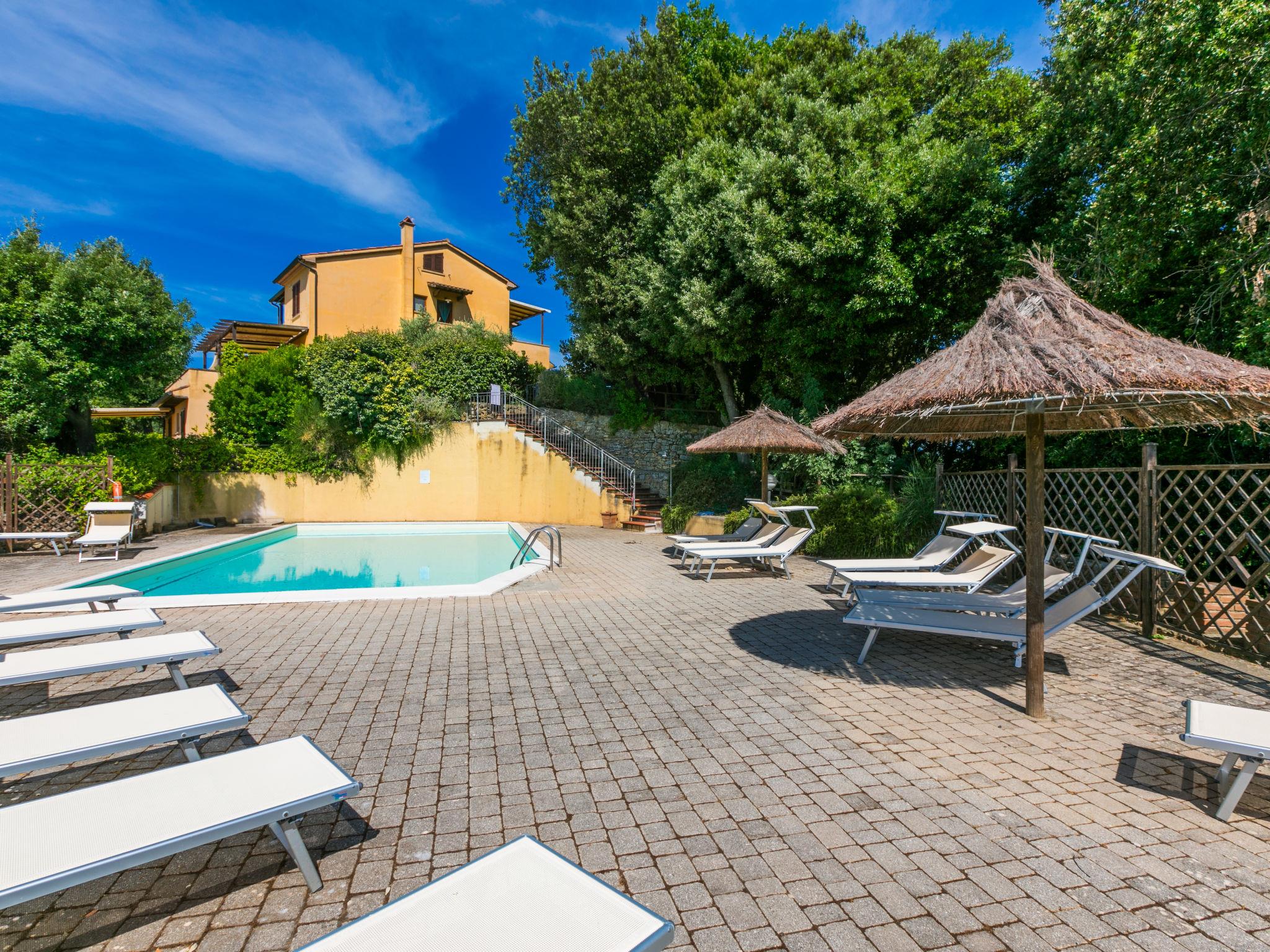 Residence "Il Castello", 2 storeys. 4 houses in the residence. 16 apartments in the property. On the outskirts, 700 m from the centre of Montescudaio, 11 km from the sea, 11 km from the beach. For shared use: property, swimming pool (10 x 20 m, seasonal availability: 15.Jun. - 15.Sep. pool opening hours: 09:00-14:00 and 16:00-19:00). Private: garden 50 m2 (fenced). Linen change (suppl. charge extra). Towel change (suppl. charge extra). Parking. Shop, grocery 700 m, restaurant 150 m, bus stop 80 m. Residence with electric gates.