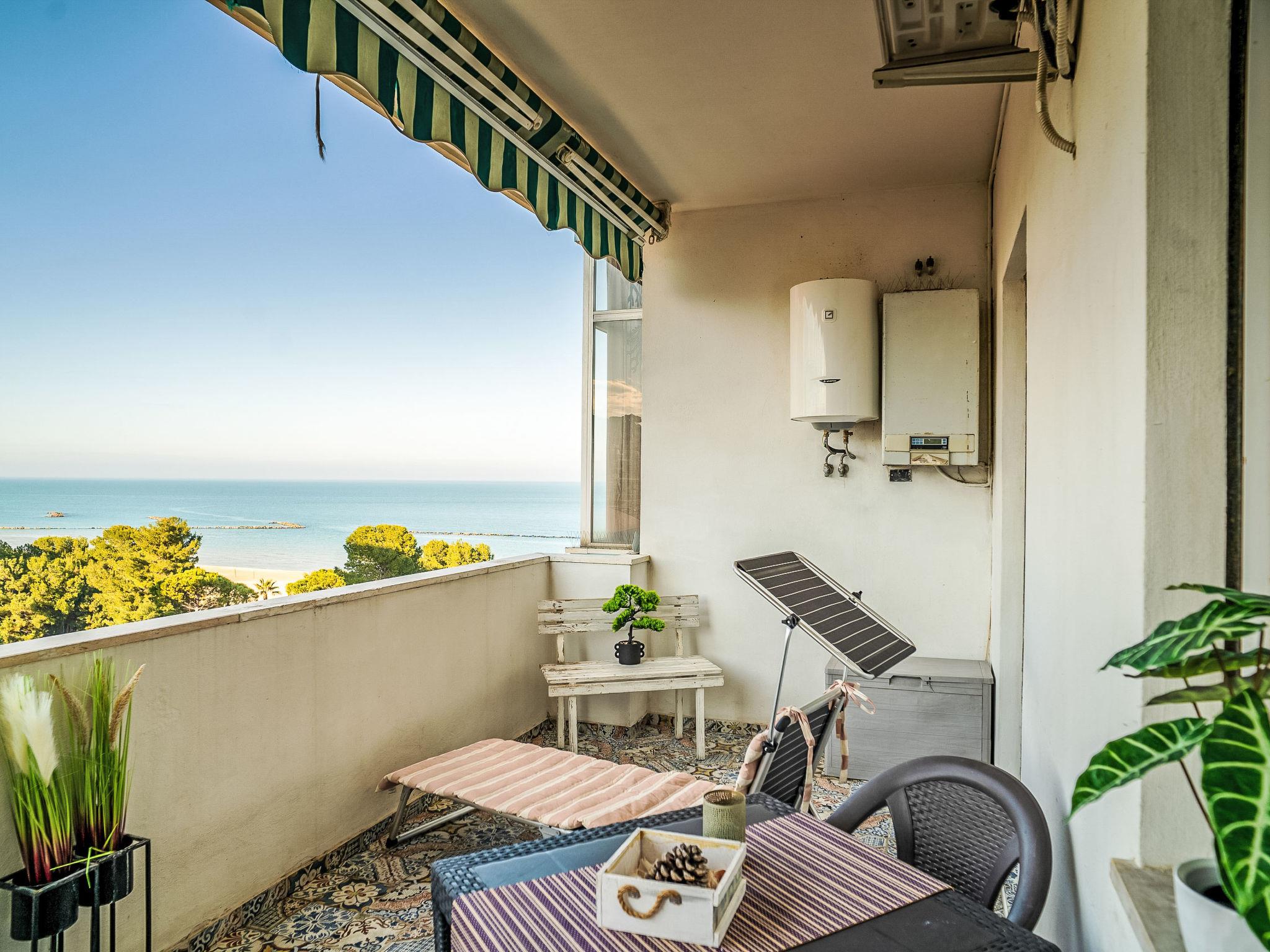 "Montesilvano Mare 3", 2-room apartment 55 m2 on 8th floor. Object suitable for 2 adults + 2 children. Very comfortable furnishings: living/dining room with 1 sofabed, TV and air conditioning. Exit to the terrace. 1 double bedroom with 1 wall-trunk bed. Kitchen-/living room (4 induction hot plates, toaster). Shower/bidet/WC. Very beautiful view of the sea and the town. Facilities: washing machine. Internet (WiFi). Maximum 1 pet/ dog allowed. IT068024C2H3OSVNKI