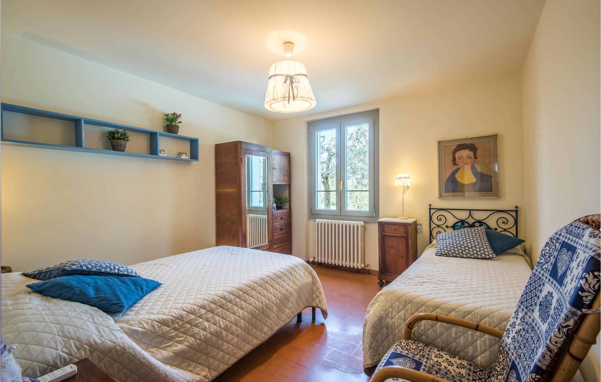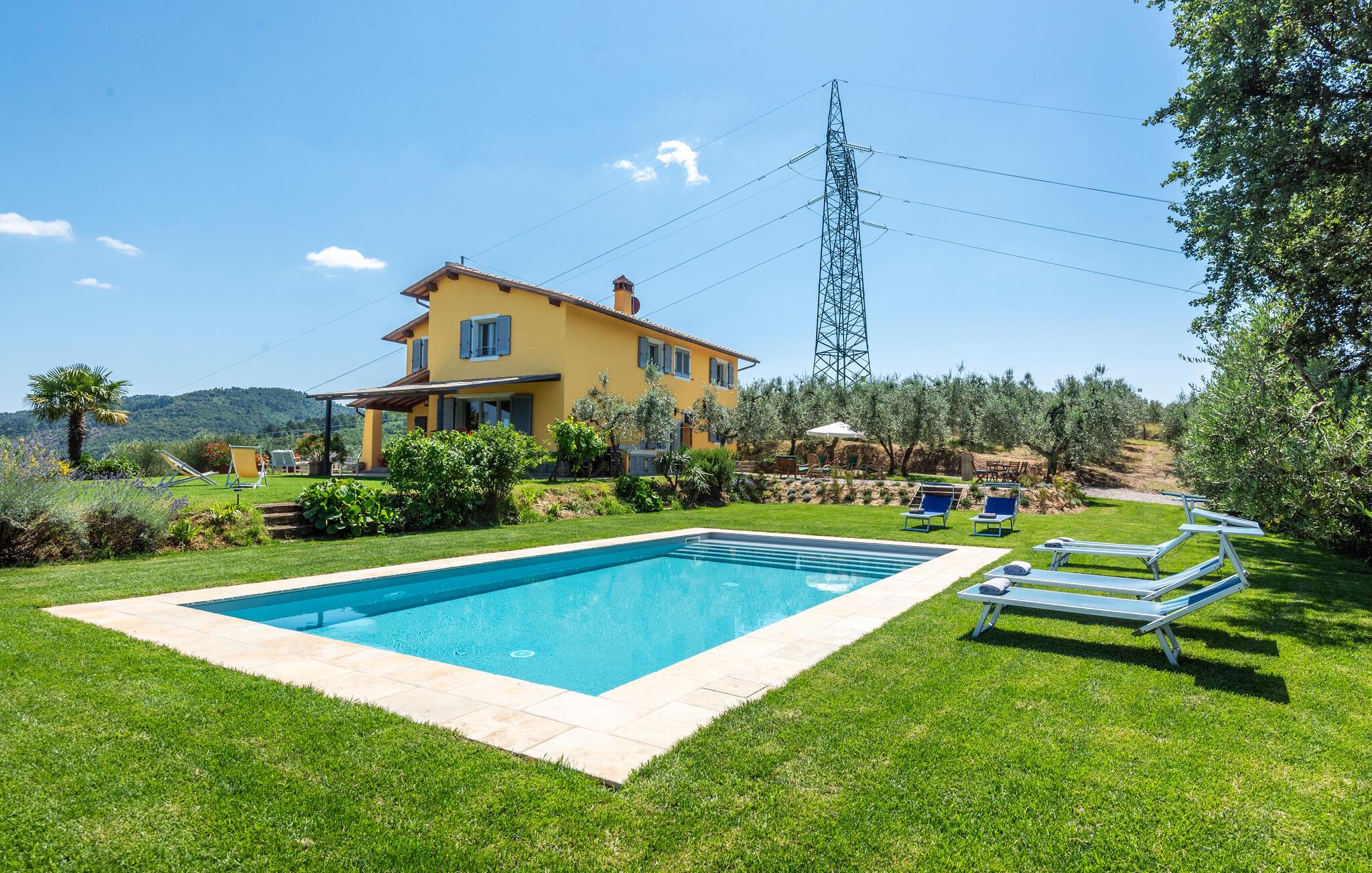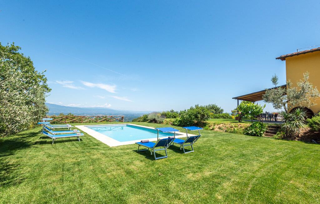 Feriehuset er perfekt, hvis I sætter pris på ugnerte rammer, idylliske omgivelser og panoramaudsigter. I kan tage på udflugter til Chianti og de fascinerende kunstbyer Firenze, Siena og Arezzo - fra den nærliggende banegård kan I tage toget til Firenze og Arezzo. De enkle og indbydende værelser ligger i stueplan, hvor alle vinduer er udstyret med myggenet. Om morgenen kan I nyde morgenmaden på terrassen, hvor I kan gøre jer godt tilpas under parasollen ved morgenbordet og se ud over poolen. Fra stuen med stor kamin er der udgang til terrassen med vid udsigt ud over Arnodalen, hvor I kan slappe af og spise aftensmad og se dagen blive til aften. På naturgrunden er der plæner, oliventræer og skov, men også et indhegnet område med pool og solterrasse.