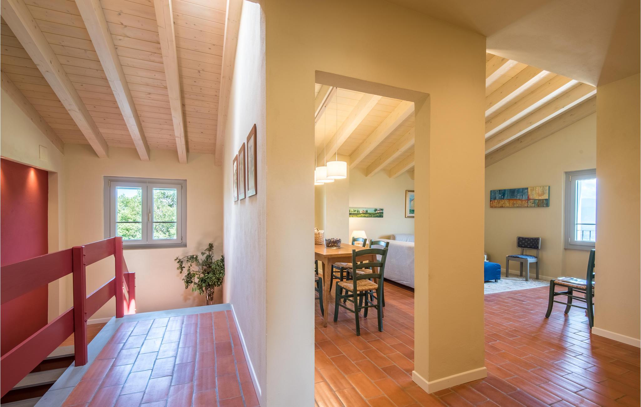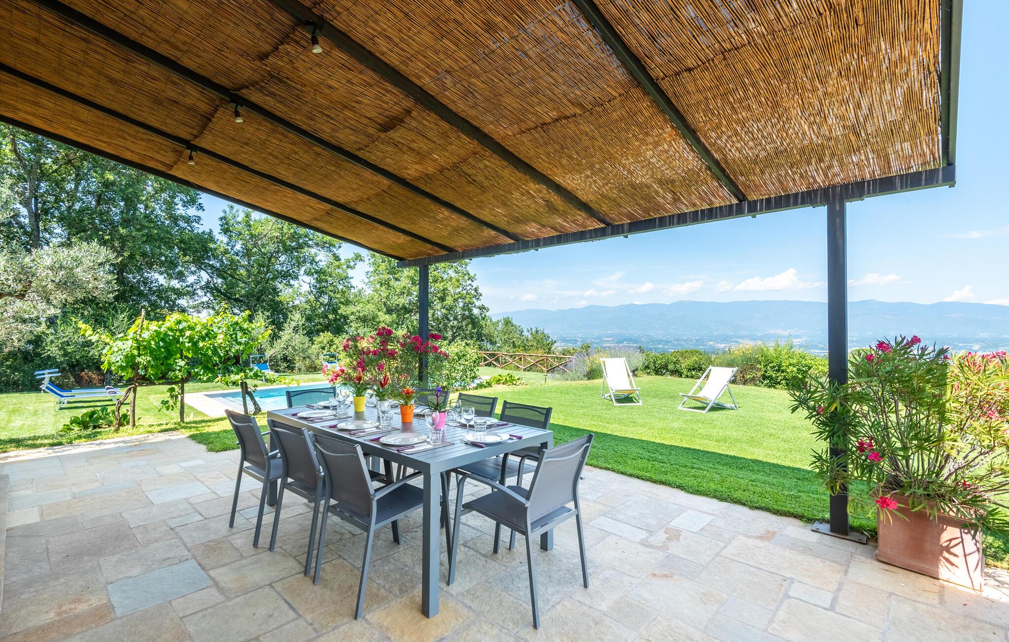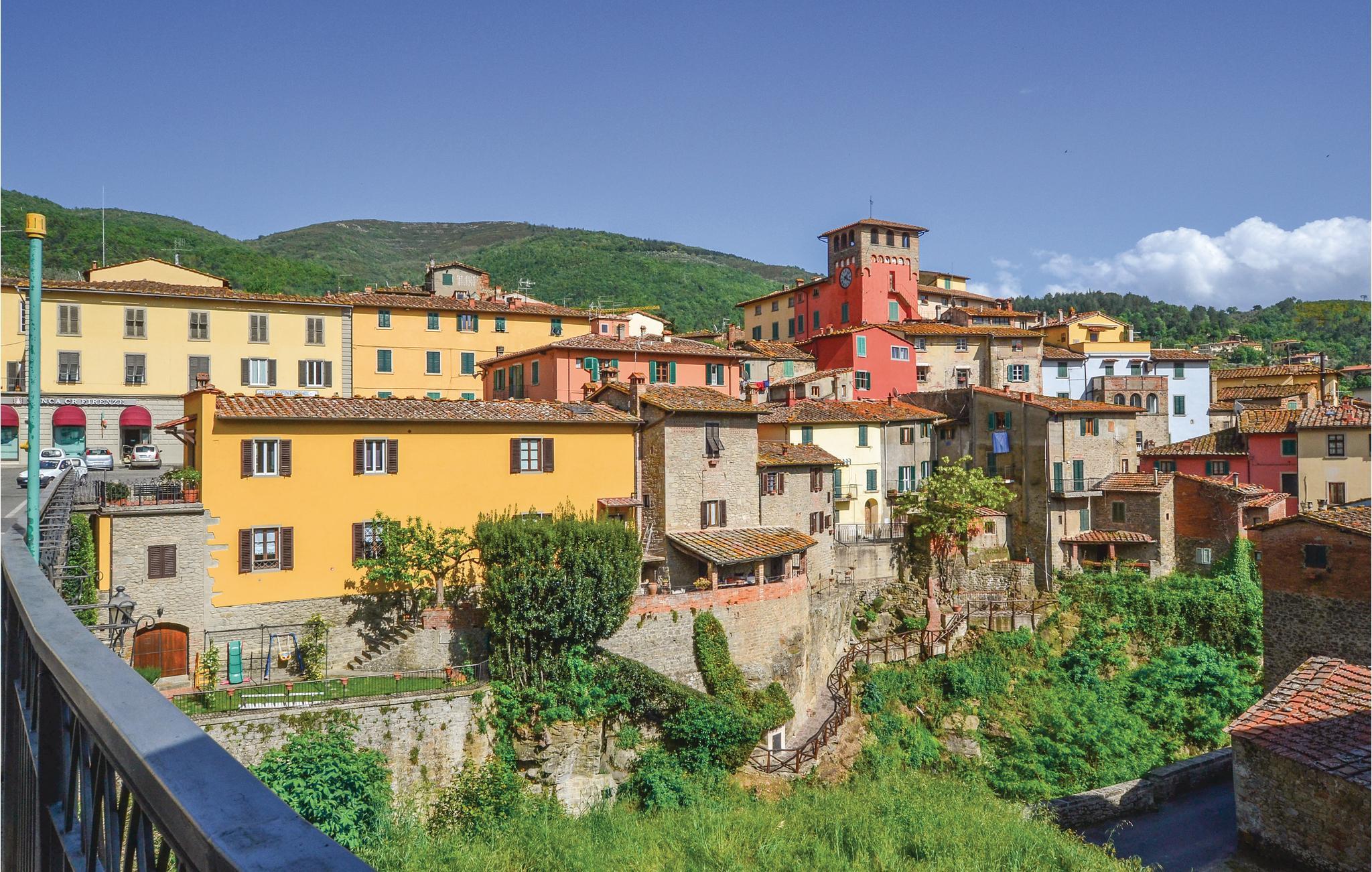 Feriehuset er perfekt, hvis I sætter pris på ugnerte rammer, idylliske omgivelser og panoramaudsigter. I kan tage på udflugter til Chianti og de fascinerende kunstbyer Firenze, Siena og Arezzo - fra den nærliggende banegård kan I tage toget til Firenze og Arezzo. De enkle og indbydende værelser ligger i stueplan, hvor alle vinduer er udstyret med myggenet. Om morgenen kan I nyde morgenmaden på terrassen, hvor I kan gøre jer godt tilpas under parasollen ved morgenbordet og se ud over poolen. Fra stuen med stor kamin er der udgang til terrassen med vid udsigt ud over Arnodalen, hvor I kan slappe af og spise aftensmad og se dagen blive til aften. På naturgrunden er der plæner, oliventræer og skov, men også et indhegnet område med pool og solterrasse.
