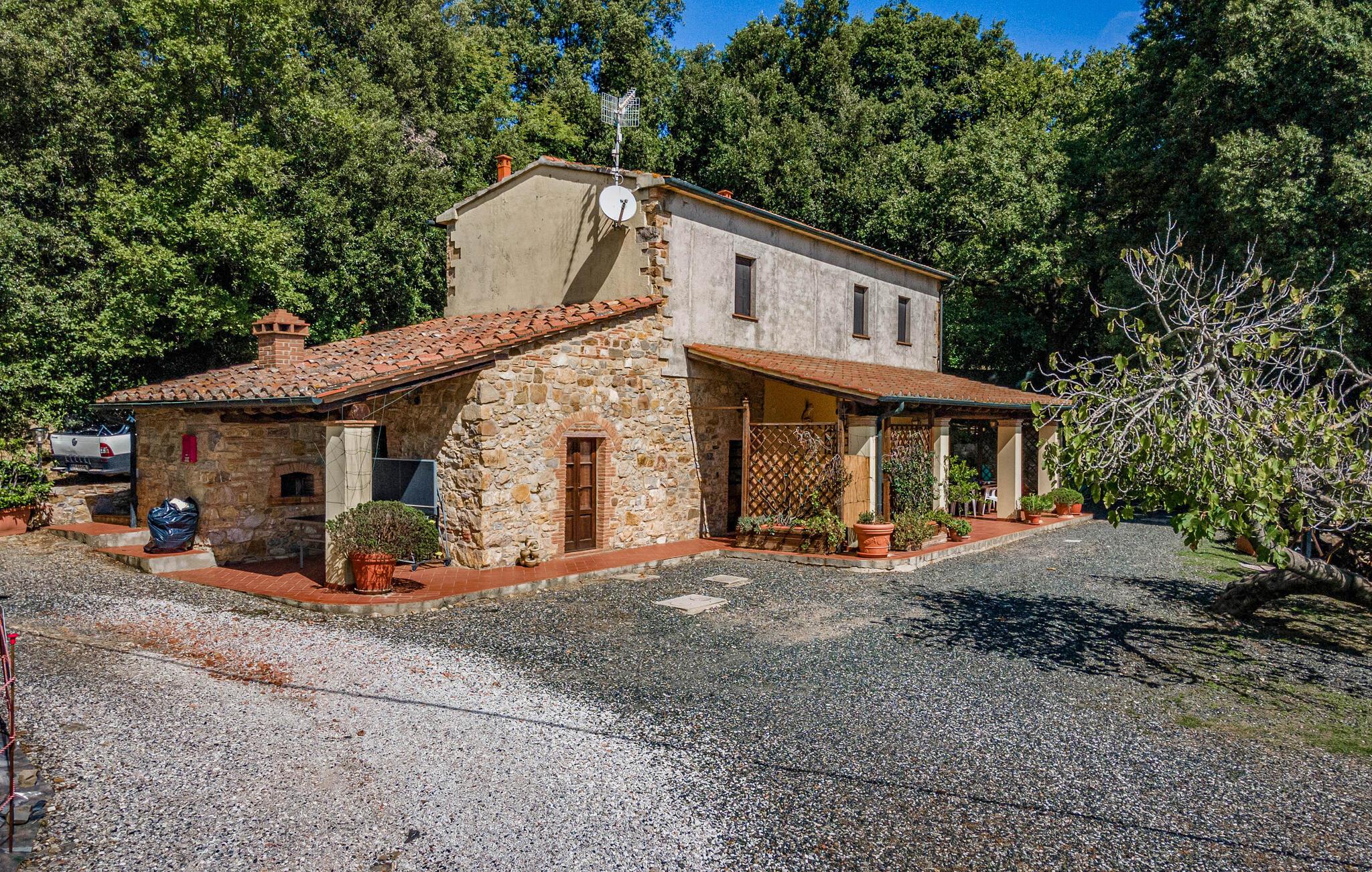 Her er et dejligt feriehus med adgang til fælles pool tæt på det historiske centrum i den karakteristiske landsby Monteverdi Marittimo. Huset ligger kun syv km fra Lajatico og Pisa. Det er omgivet af en park på hele fire hektar, hvor også den dejlige swimmingpool ligger, som I deler med de andre villaer i området. På den store terrasse er der plads til at indtage dagens måltider, og samtidig nyde den betagende udsigt til det smukke toskanske landskab helt ud til havet. I Monteverdi Marittimo er der butikker og gode spisesteder, men huset ligger kun 15 km fra strandene ved Marina di Castagneto ved Etruskerkysten.