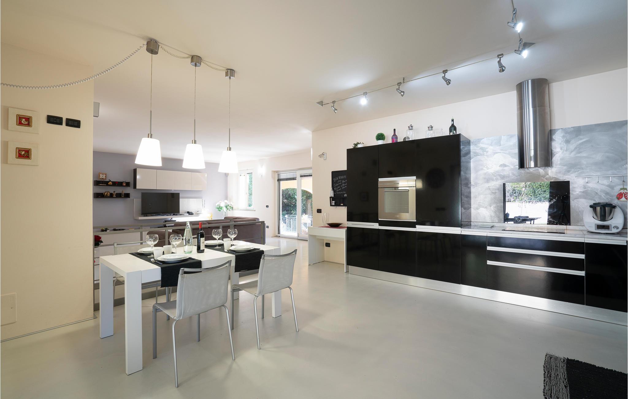 Haven er udstyret med dejlig stort afslapningsområde, hvor I kan nyde solen i fred, og to store pladser, hvor I kan indtage dagens måltider i det fri, og med udsigt til det maleriske landskab. Swimmingpoolen deler I med to andre villaer på grunden.