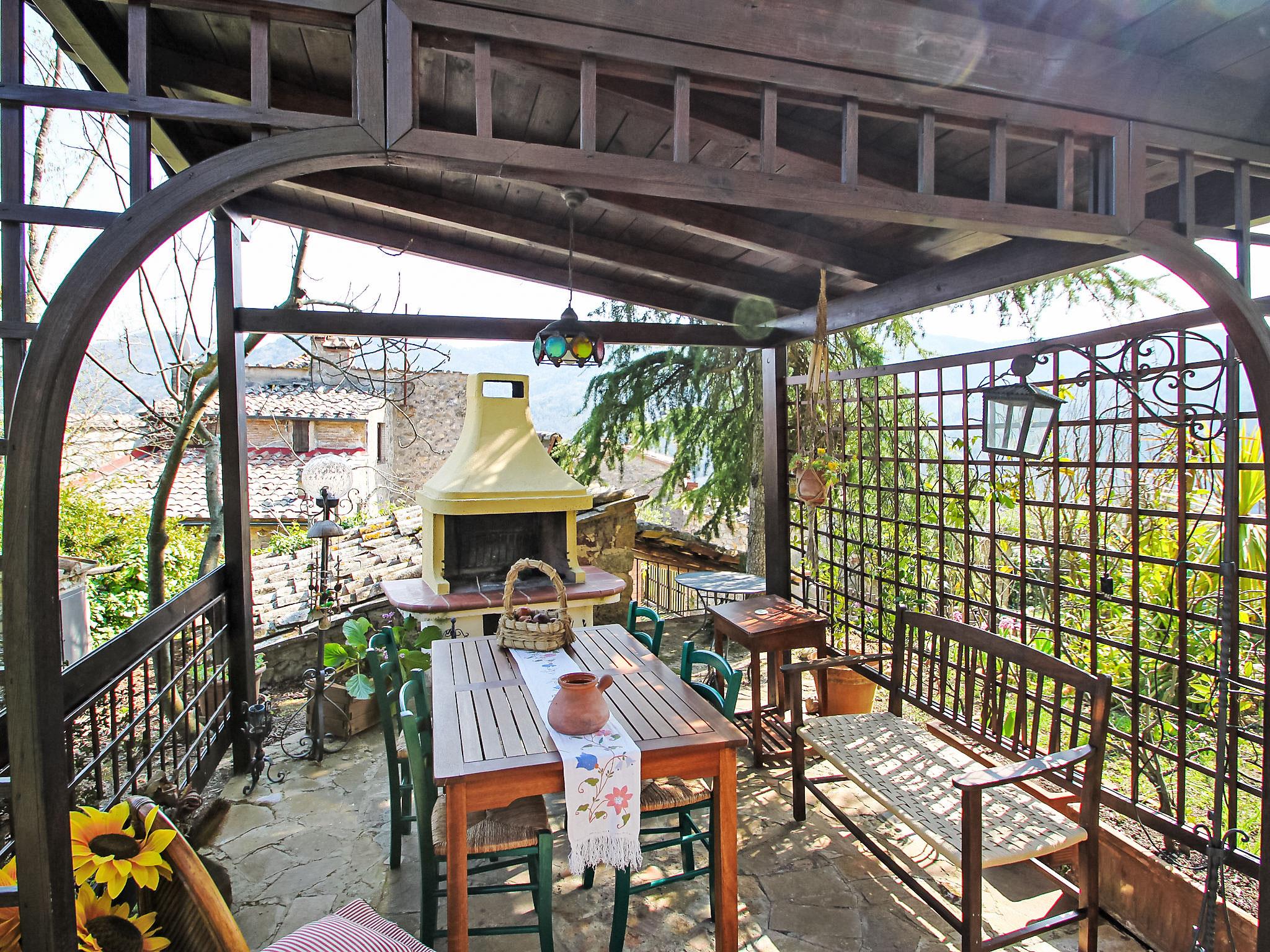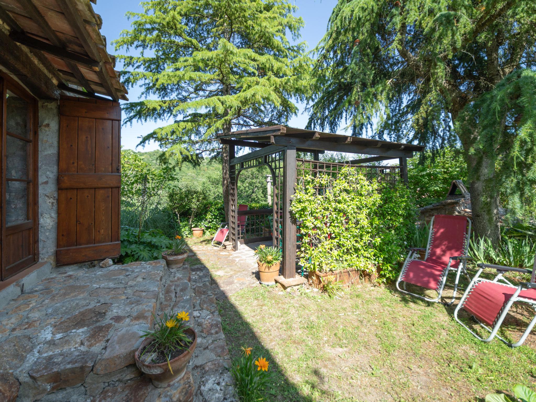 "Il Casale", 4-room house 110 m2 on 2 levels, on the ground floor. Object suitable for 4 adults + 2 children. Rustic and cosy furnishings: living/dining room with open-hearth fireplace and satellite TV. Exit to the patio. Open kitchen (4 hot plates, mini-oven, oven, dishwasher, kettle) with dining table, open-hearth fireplace. Exit to the garden. Shower, sep. WC. Upper floor: 1 small room with 1 x 2 bunk beds. 2 double bedrooms. Living room with open-hearth fireplace (only for decoration). Bath/WC. Large garden, porch. Terrace furniture, barbecue, deck chairs (4). Panoramic view of the forest. Facilities: Internet (WiFi, free). Maximum 1 pet/ dog allowed. Access to the first floor also from outside. IT052018C2OIKKJAQ6