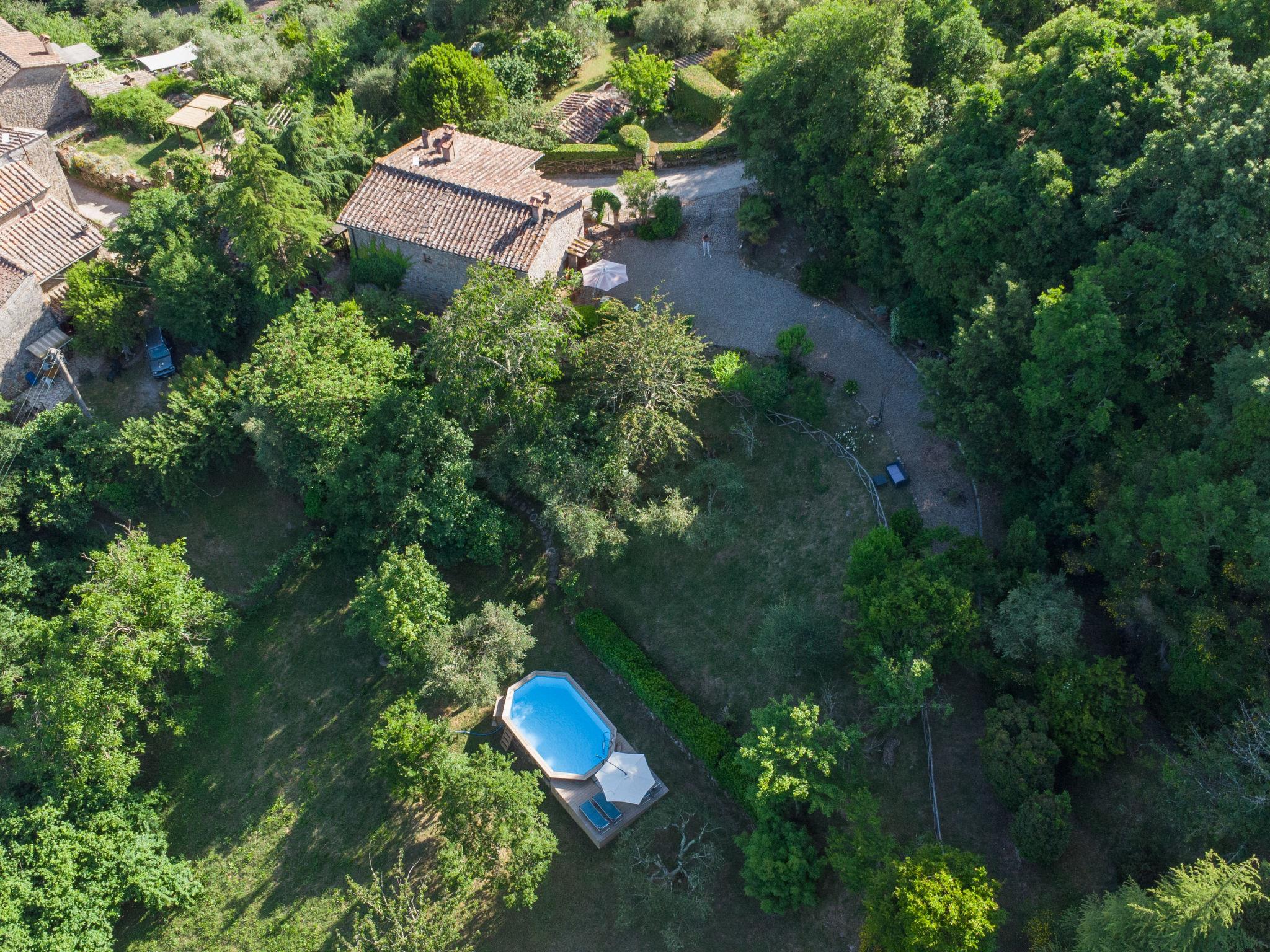 This typical country house is part of a small hamlet in the middle of the untouched nature of the "Alta Meremma" nature reserve south of Siena. Its fantastic location above the Farma valley gives wide views of the surrounding woods rustic country house "Il Casale", renovated. 2 km from the centre of Iesa, 12 km from the centre of Monticiano, 30 km from the centre of Siena, in a quiet position on a slope, 20 m from the edge of the forest. Private: garden with flowers and trees, swimming pool (above ground) (6 x 4 m, depth 135 - 135 cm, seasonal availability: 20.Apr. - 12.Oct.). Arbour, garden furniture, barbecue, pool maintenance by the owner/gardener. In the house: central heating system, heating to be paid on the spot, heating available only from 01.Nov. - 15.Apr.. Motor access to the house (300 m via unmade road). Parking on the premises. Grocery 2 km, supermarket 12 km, restaurant 2 km, bus stop "Monticiano" 12 km, thermal baths 5 km. Nearby attractions: San Gimignano 73 km, Firenze 110 km, Castiglione della Pescaia 70 km, Monte Argentario 96 km, Capalbio 100 km, Punta Ala 92 km. Object suitable for 4 adults + 2 children. The River Farma flows about 1 km away - one can bathe in its clear waters.