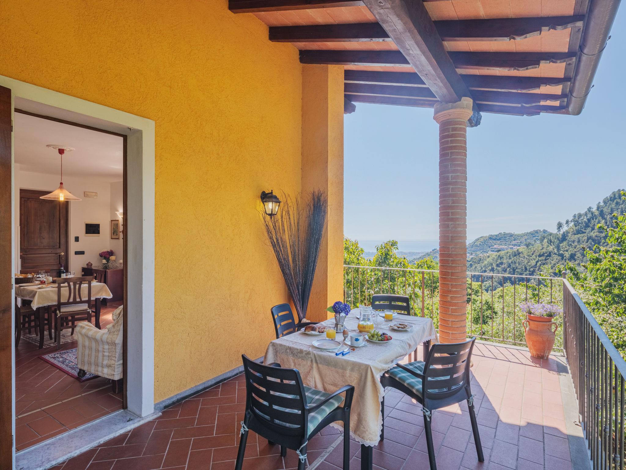 3-room house 50 m2 on 1st floor. Beautiful and cosy furnishings: 1 room with 1 french bed (160 cm). 1 room with 2 beds (80 cm). Kitchen-/living room (oven, dishwasher, 4 gas rings, toaster, kettle, microwave, freezer, electric coffee machine) with dining table, satellite TV. Exit to the balcony. Shower/WC. Gas heating (extra). Large balcony, patio. Terrace furniture, balcony furniture, barbecue, deck chairs (4). Beautiful view of the mountains, the forest and the ocean. Facilities: washing machine, iron, children's high chair, baby cot for up to 2 year olds, hair dryer. Internet (WiFi, free). Please note: non-smoking house. Smoke alarm, fire extinguisher. IT045011C2ZPV7GS4V