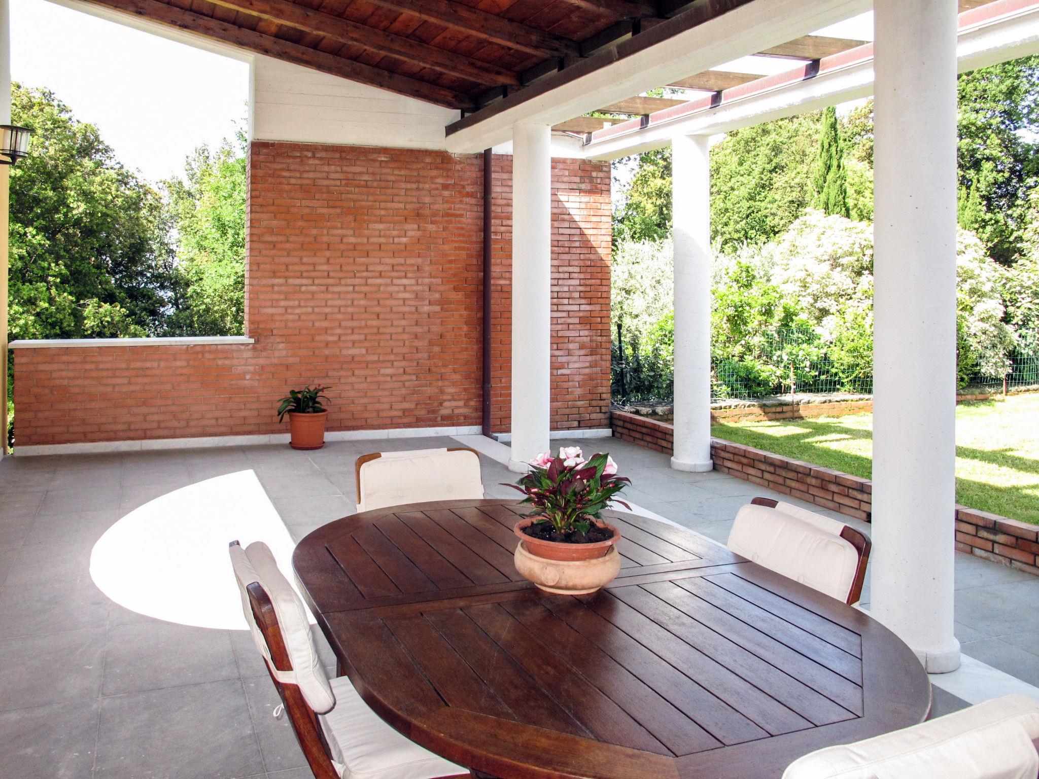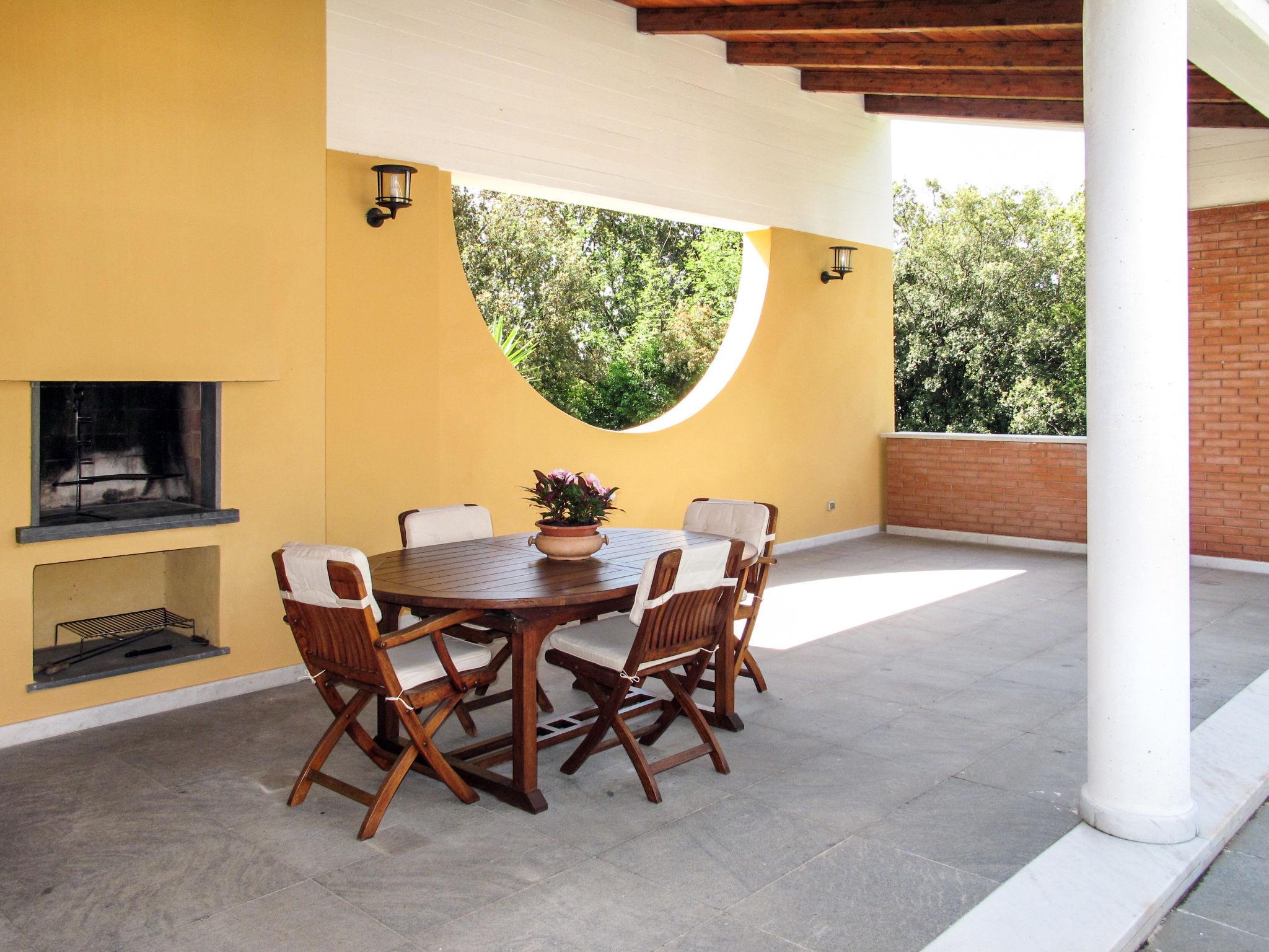 3-room apartment 120 m2, on the upper ground floor. Beautiful and tasteful furnishings: living/dining room with open-hearth fireplace (only for decoration), dining table and satellite TV. Exit to the garden. 2 rooms, each room with 1 double bed. Exit to the garden. Kitchen (oven, dishwasher, 4 gas rings, toaster, kettle, microwave, freezer, electric coffee machine) with dining table. Exit to the terrace. Shower/WC, sep. WC. No heating option. Parquet floors. Large terrace roofed. Terrace furniture, barbecue, deck chairs (2). Facilities: iron, mosquito net, children's high chair, baby cot for up to 2 year olds, hair dryer. Internet (WiFi, free). Parking (fenced 2 cars) at the house. Please note: non-smokers only. Private entrance, smoke alarm, fire extinguisher. IT045011C2EMN4HCAQ
