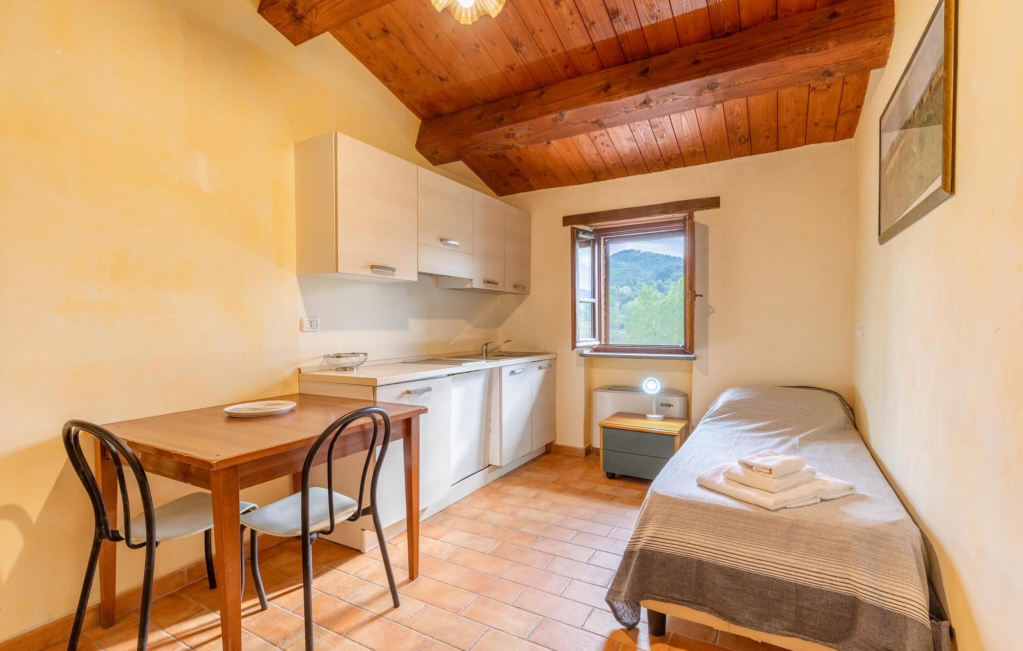 Nyd jeres ferie i et attraktivt feriehus med pool og en fantastisk panoramaudsigt. Velkommen til dette rummelige landsted med idylliske omgivelser, hvor I vil føle jer hjemme fra første dag. Glæd jer til autentisk møblerede værelser med smukke trælofter, delvist synlige mursten og masser af plads til at slappe af. Nyd måltider sammen ved det lange spisebord og snak om dagens eventyr i lang tid bagefter. Slap af og nyd roen på den store grund. Svøm i poolen, nyd kolde drikke udendørs om aftenen, og jeres børn vil finde legeredskaber. Der ligger en sø i nærheden af huset. Vandr eller cykl gennem de bølgende bakker, olivenlunde og vinmarker, der omgiver Montone. De omkringliggende naturstier byder på spektakulære udsigter og rolige tilflugtssteder. Slentr gennem Montones smalle gader og fordyb jer i atmosfæren fra forgangne århundreder.