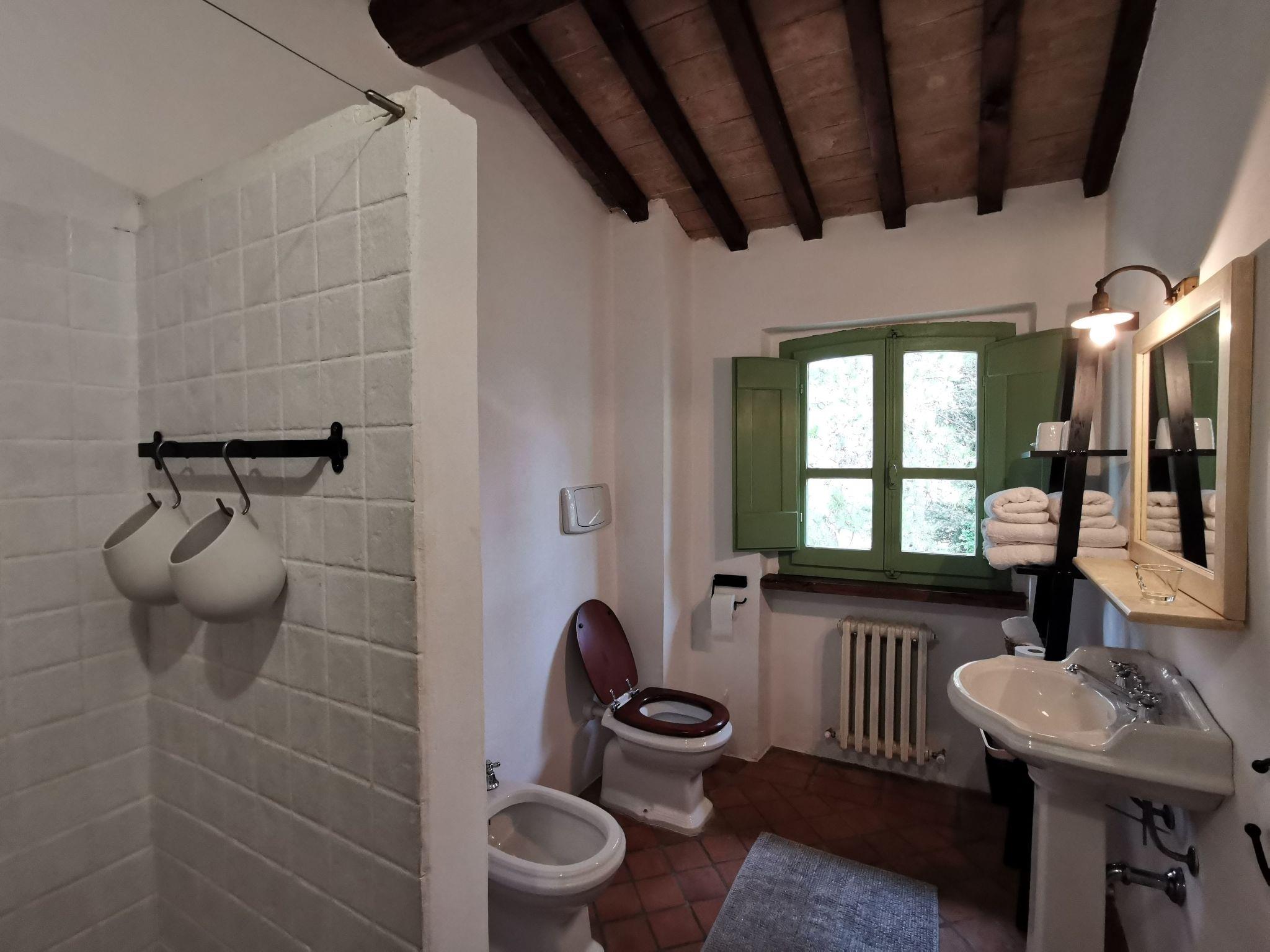 The spacious flat impresses with its location on the 1st floor of the old, top-renovated farmhouse with a wonderful view over the Umbrian countryside and the neighbouring village of Montone.