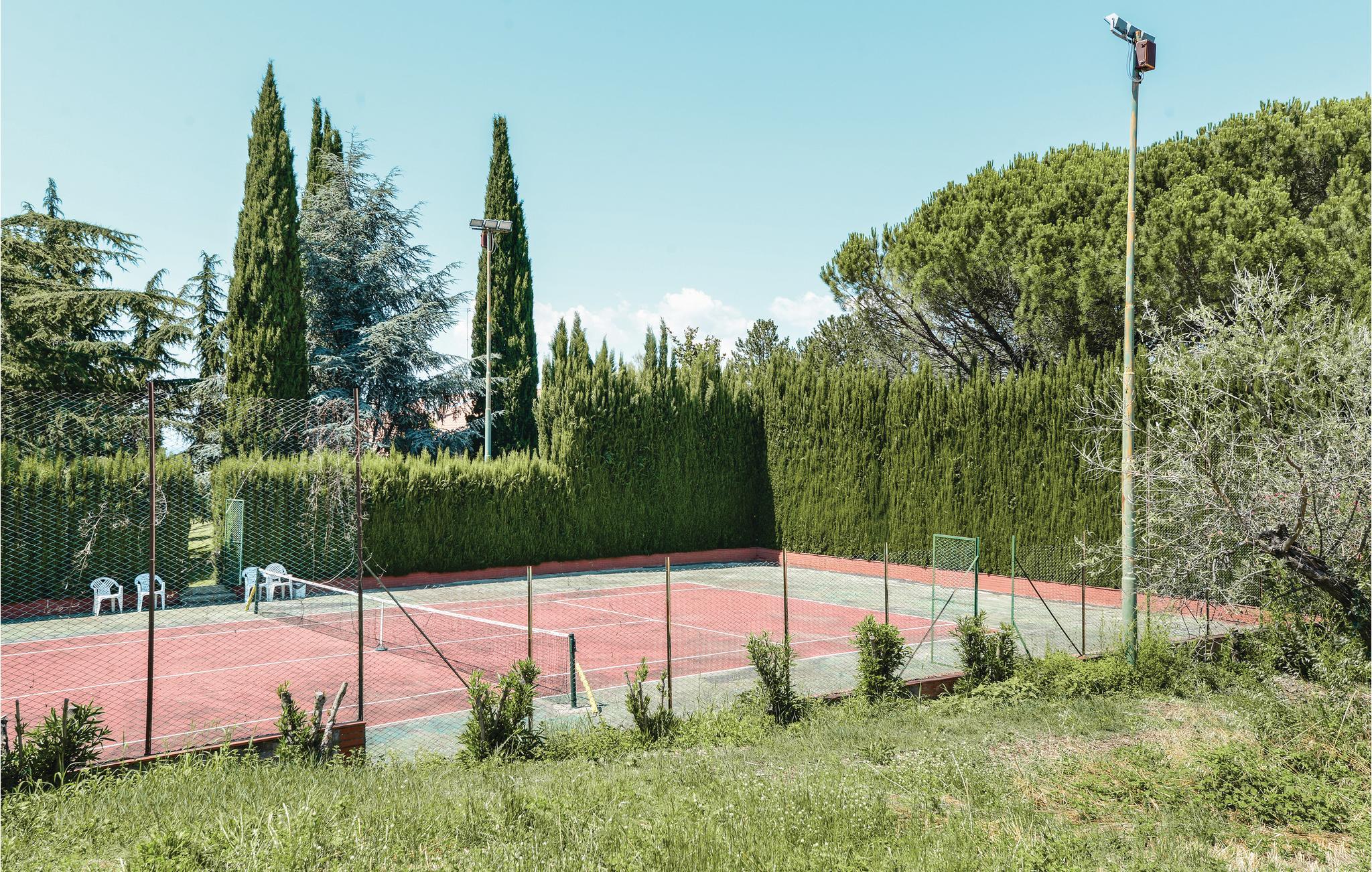 Huset har plads til to familier, hvor I har den ene halvdel af huset. Det stilfulde feriedomicil ligger i en frodig grøn have med udsigt over den omkringliggende dal. Ud over en fin græsplæne, er der en indbydende pool og en tennisbane, der alene deles med husets ejer, der bor i husets anden halvdel.