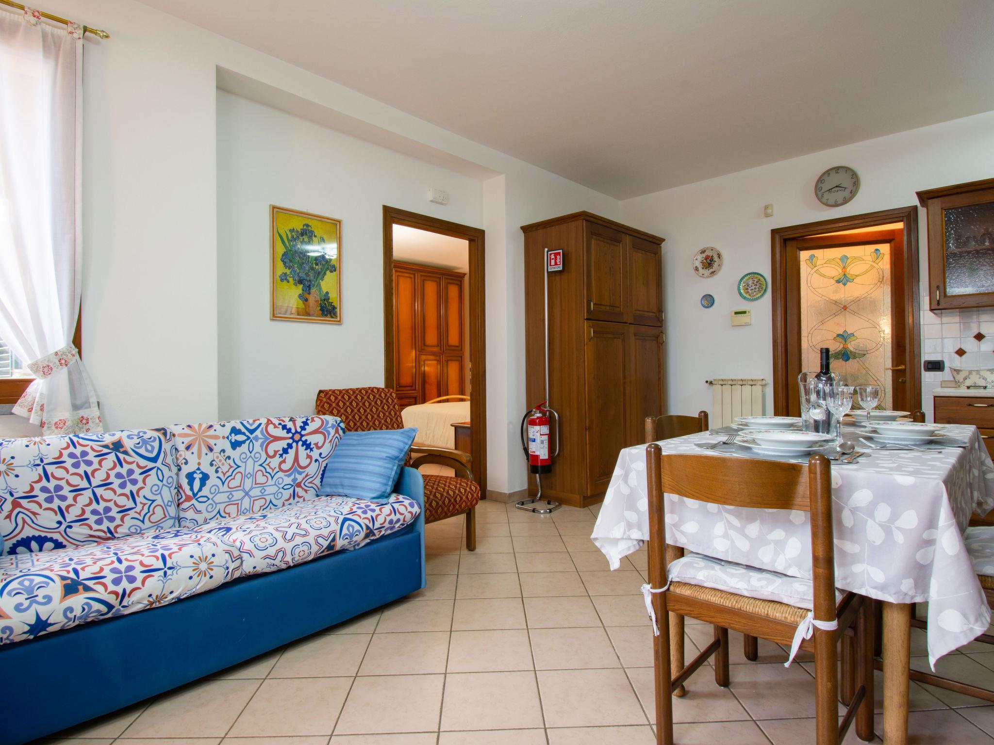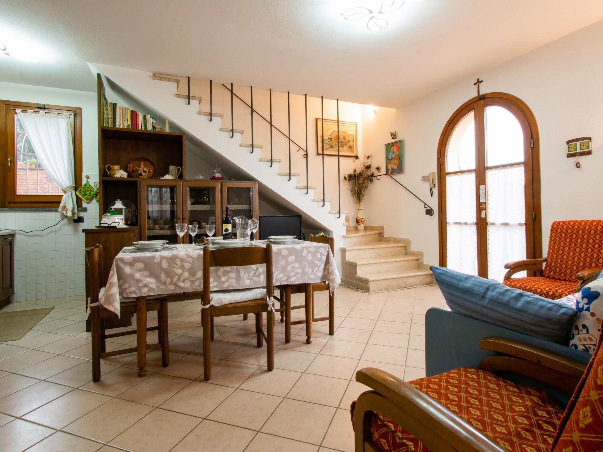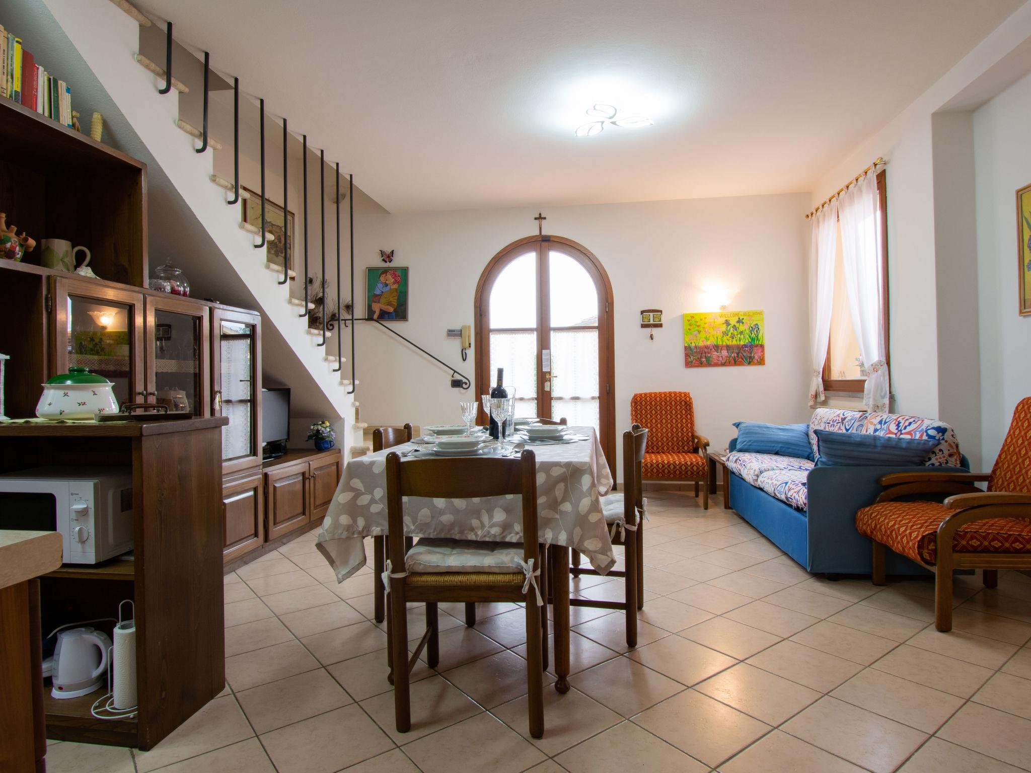 "Delfina", 4-room house 85 m2. Comfortable and cosy furnishings: living room with TV. Exit to the garden. 1 room with 1 double bed and air conditioning. Kitchen (4 hot plates, oven, dishwasher, toaster, kettle, microwave, electric coffee machine). Shower/bidet/WC. Upper floor: 1 room with 1 double bed, TV and air conditioning. Bath/bidet/WC. Porch. Barbecue, deck chairs. Facilities: washing machine, mosquito net, children's high chair, baby cot, hair dryer. Internet (WiFi, free). Please note: maximum 1 small pet/ dog allowed. Smoke alarm, fire extinguisher. IT050022C2EL2GZHX9