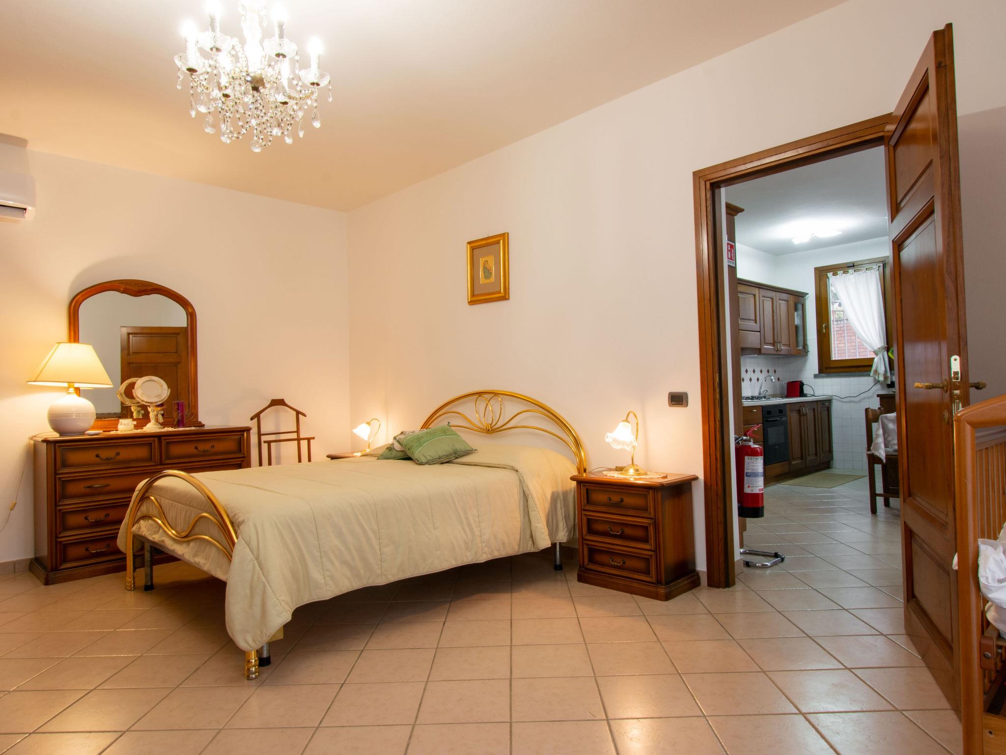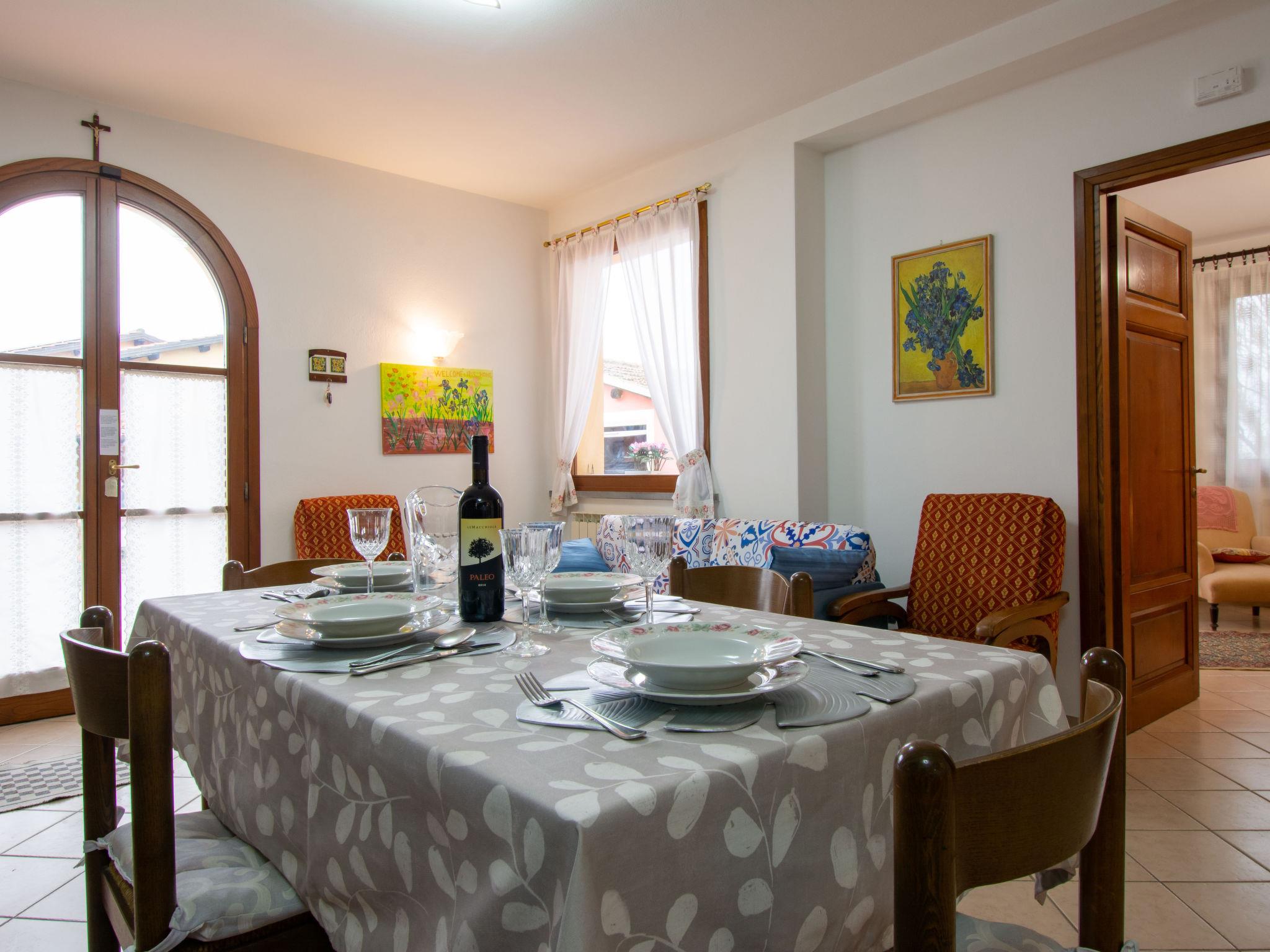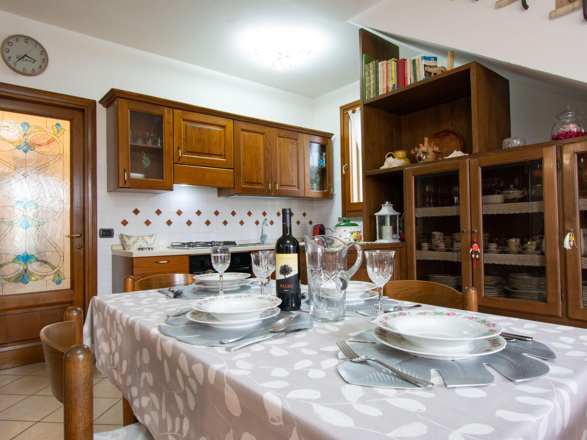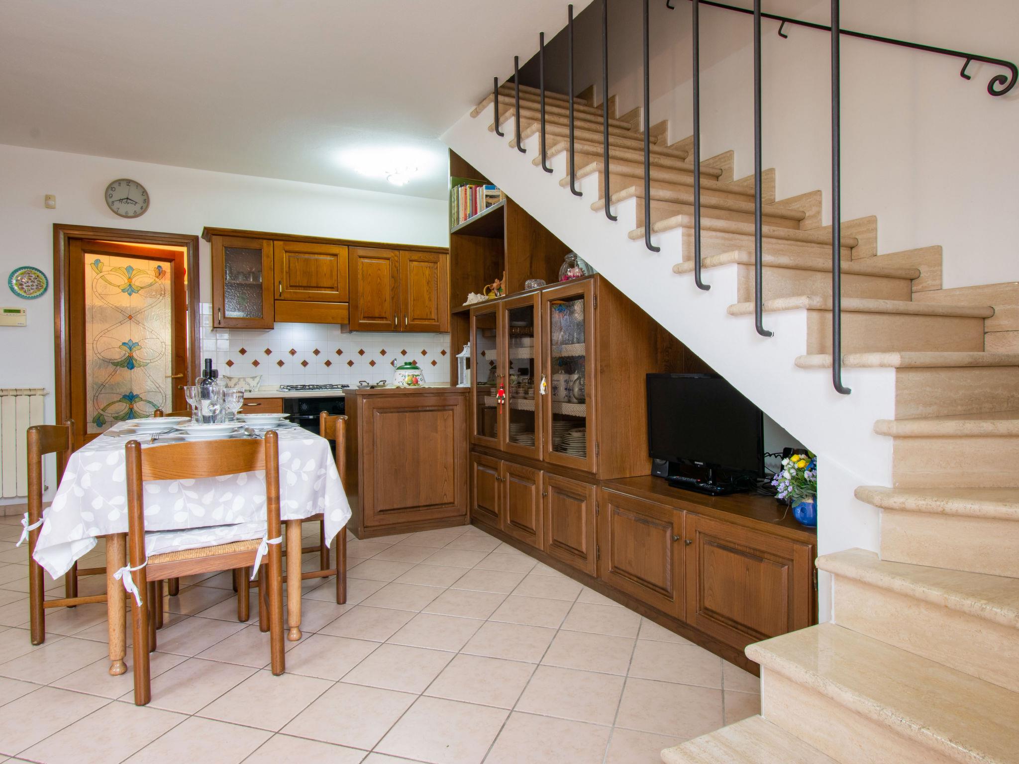 "Delfina", 4-room house 85 m2. Comfortable and cosy furnishings: living room with TV. Exit to the garden. 1 room with 1 double bed and air conditioning. Kitchen (4 hot plates, oven, dishwasher, toaster, kettle, microwave, electric coffee machine). Shower/bidet/WC. Upper floor: 1 room with 1 double bed, TV and air conditioning. Bath/bidet/WC. Porch. Barbecue, deck chairs. Facilities: washing machine, mosquito net, children's high chair, baby cot, hair dryer. Internet (WiFi, free). Please note: maximum 1 small pet/ dog allowed. Smoke alarm, fire extinguisher. IT050022C2EL2GZHX9