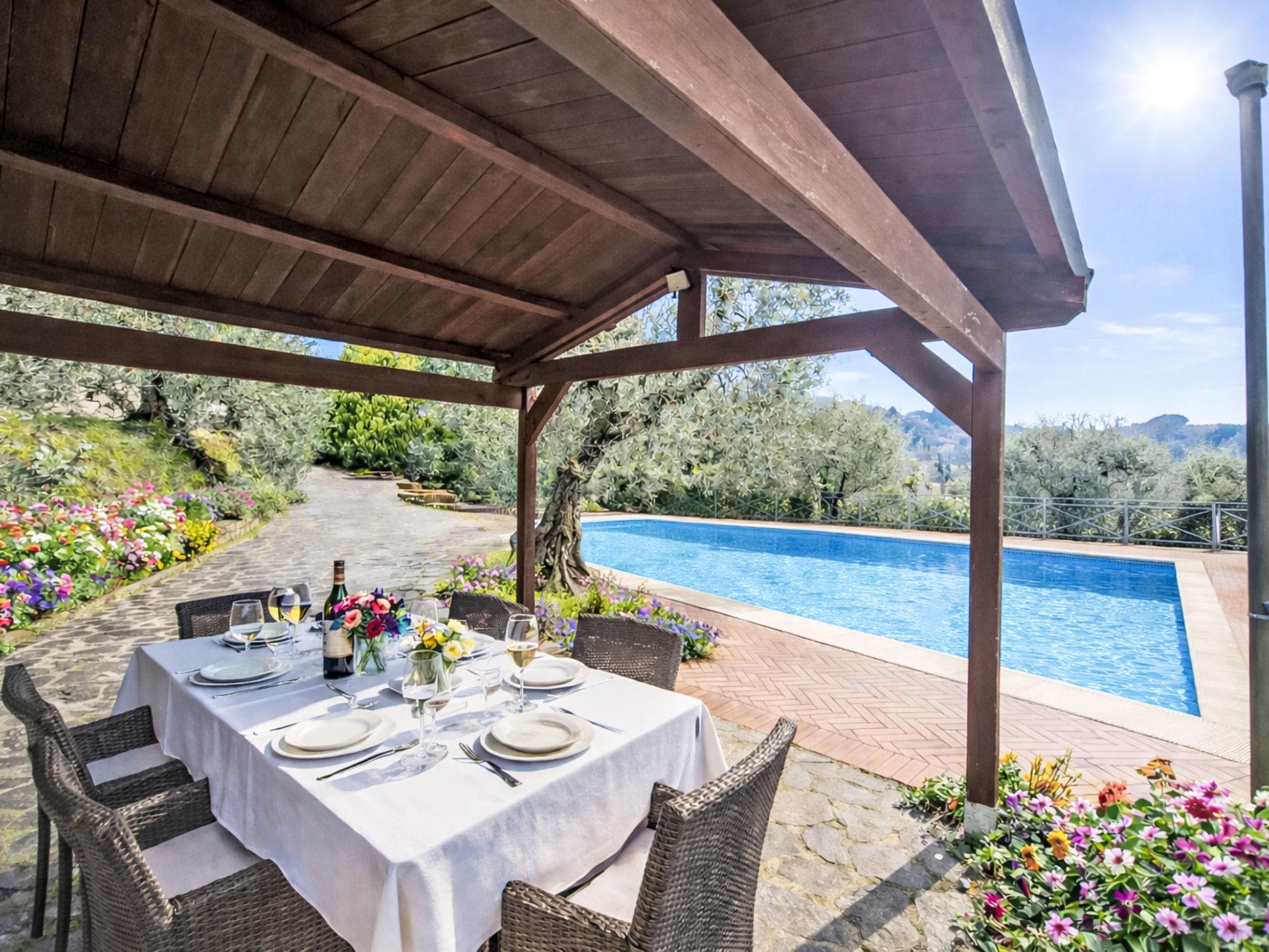 Cosy, comfortable single-family house "Delfina", 98 m a.s.l., 2 storeys. In the district of Marti 5 km from the centre of Montopoli in Val d' Arno, in a quiet position in the residential district. Private: natural state property 3'000 m2 (fenced), natural garden 70 m2 (fenced), swimming pool (5 x 10 m, depth 120 - 220 cm, seasonal availability: 15.Apr. - 15.Oct.) with salt-electrolysis pool-cleaning system. Arbour, garden furniture. In the house: air conditioning, washing machine, heating available only from 15.Nov. - 15.Apr.. Parking on the premises. Grocery 2 km, supermarket 4 km, restaurant 1 km, bus stop 600 m, railway station 4 km. Nearby attractions: Pisa 38 km, Firenze 58 km, Lucca 48 km, Forte dei Marmi 70 km, Siena 85 km, San Gimignano 45 km. Please note: baby equipment on request (included). The owner lives on the same property.