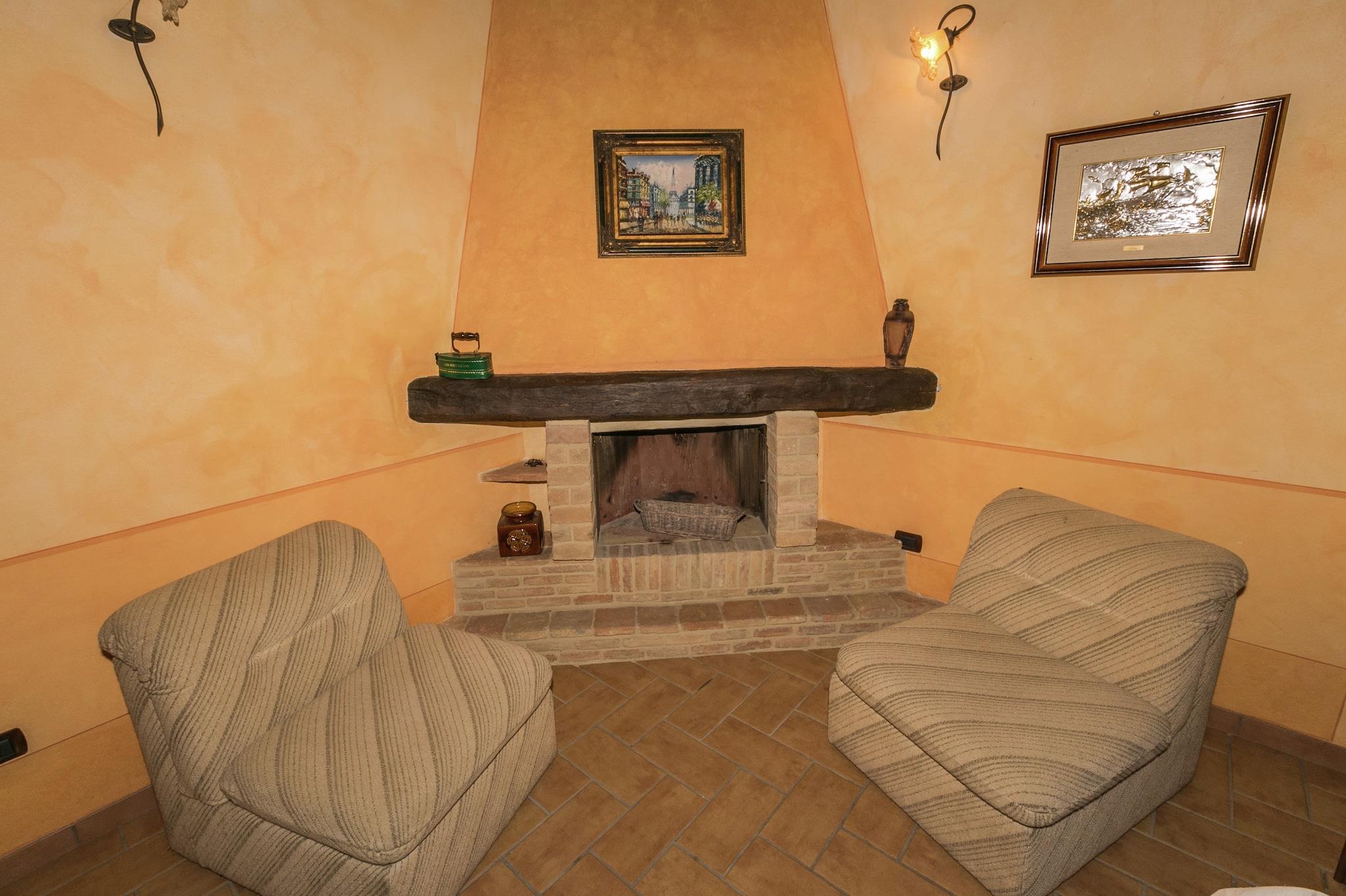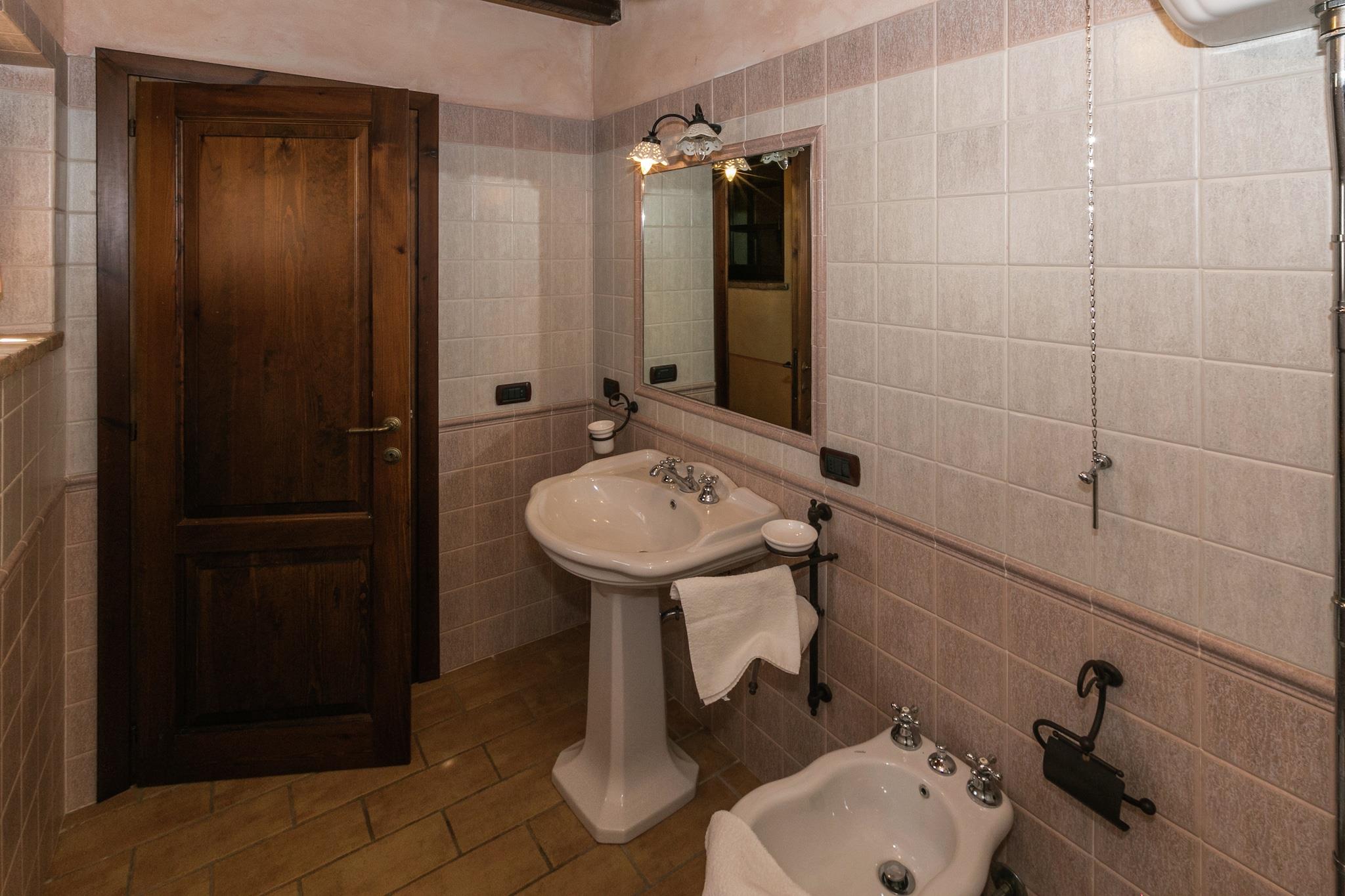 Flygt til det rolige landskab i Montoro, hvor dette kæledyrsvenlige bondehus med plads til op til fem gæster tilbyder en charmerende blanding af komfort og natur. Omgivet af bølgende bakker byder dette tilflugtssted på en fælles have på over 1.000 kvadratmeter, en rummelig terrasse og adgang til en fælles swimmingpool (14 x 7 meter, åben fra juni til september). Uanset om du slapper af ved pejsen eller nyder den friske luft udendørs, er dette bondehus designet til afslapning. Første sal kan prale af en hyggelig stue med tv, spisebord, pejs og siddeområde, samt et fuldt udstyret åbent køkken med kogeplader, emhætte, ovn, mikrobølgeovn, opvaskemaskine og køleskab med fryser. Huset har to soveværelser, et med køjeseng og et andet med dobbeltseng, samt en mezzanin med en enkeltseng. Badeværelset har badekar med bruser, boblebad, håndvask, toilet og bidet. Gæsterne kan også benytte sig af en fælles vaskemaskine, havemøbler, liggestole, grillfaciliteter og en parasol, hvilket sikrer både komfort og bekvemmelighed. I nærheden tilbyder Montoro Slot en betagende udsigt og et glimt af middelalderhistorien, mens Plaza España er et pulserende knudepunkt omgivet af historiske bygninger. Til spisning serverer Cafetería Pizzería Donde Siempre lækre pizzaer, Restaurante Casa Bar Yépez tilbyder middelhavsretter, og JOHN'S CORNER giver et unikt mexicansk twist. Uanset om du udforsker kulturelle vartegn eller nyder lokale retter, er dette bondehus det perfekte sted til Montoro. tilbagetog.