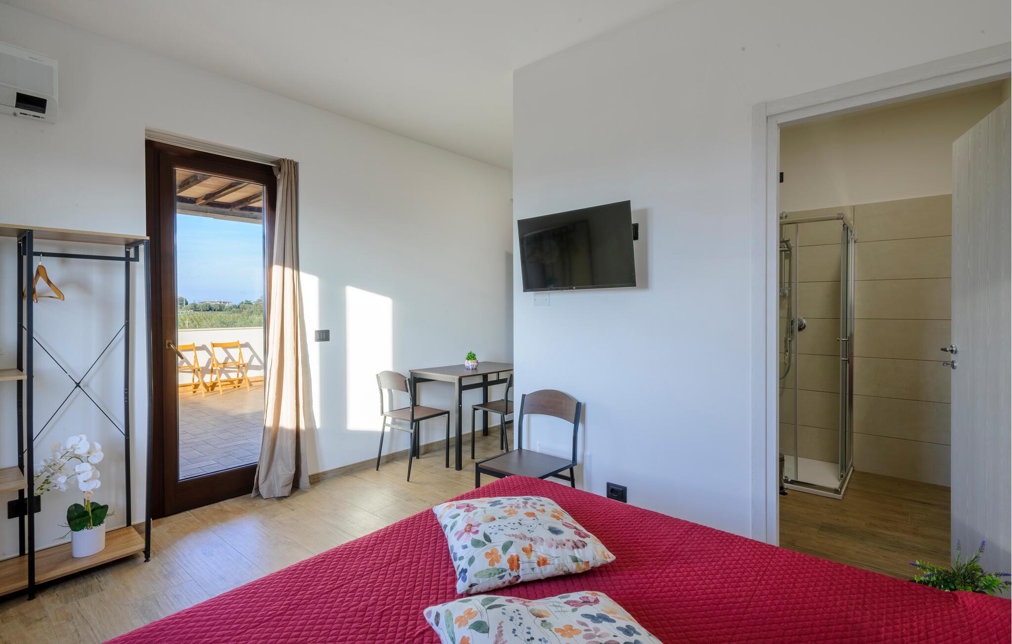 Velkommen til denne dejlige lejlighed, der ligger i en bygning med flere ferieboliger, smukt omgivet af oliventræerne, og med en skøn udsigt over landskabet. Hvis I gerne vil rejse som en større flok, kan I booke flere lejligheder i huset og nyde et ophold med det helt rette mix af sociale stunder og privatlivets fred. Lejligheden er flot indrettet med lyse farveskalaer, moderne komfort og et veludstyret køkken, hvor I kan tilberede en lækker morgenmad, som kan nydes på terrassen med en god kop kaffe og udsigt over landskabet i Pescaras bagland.