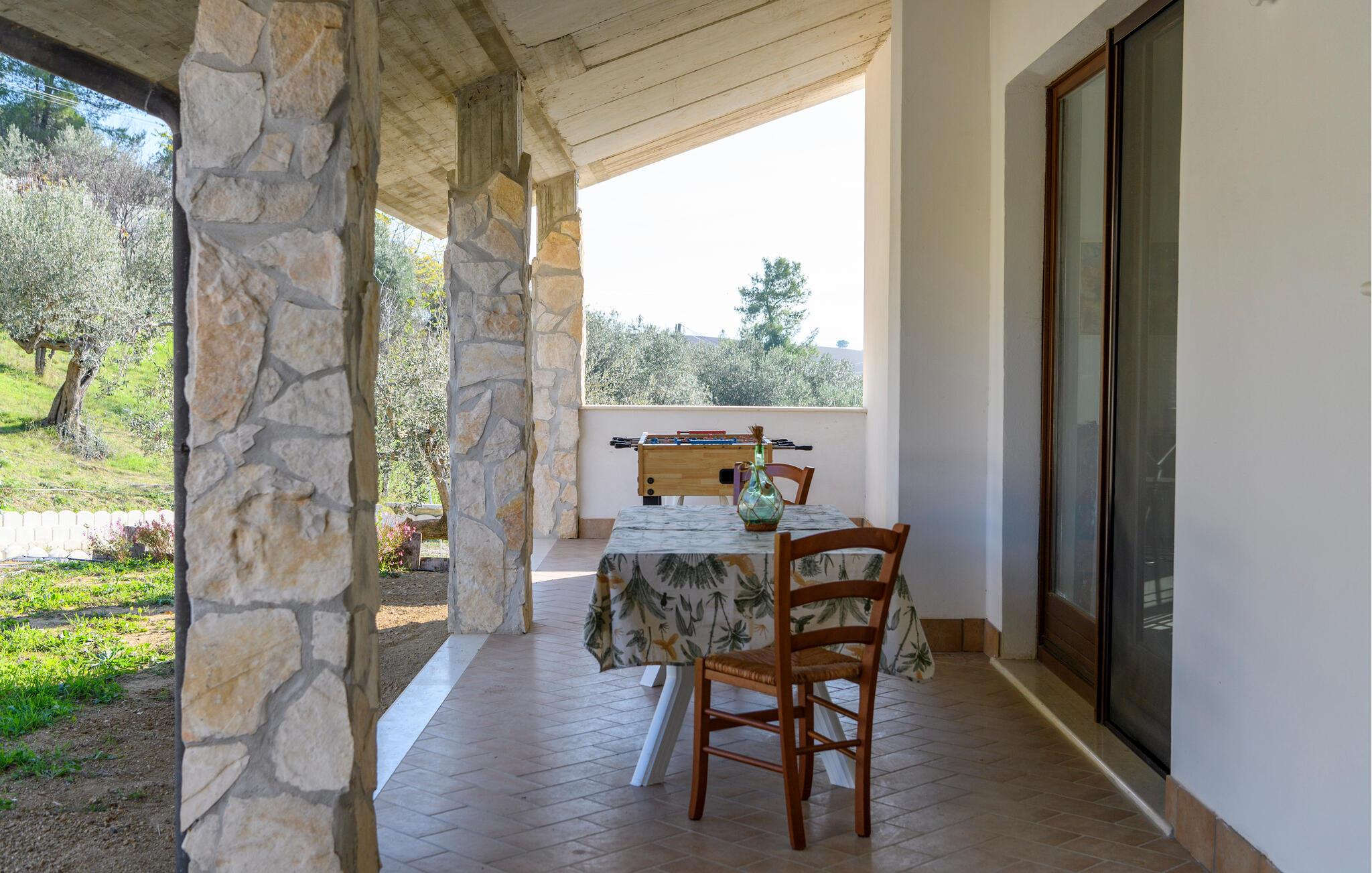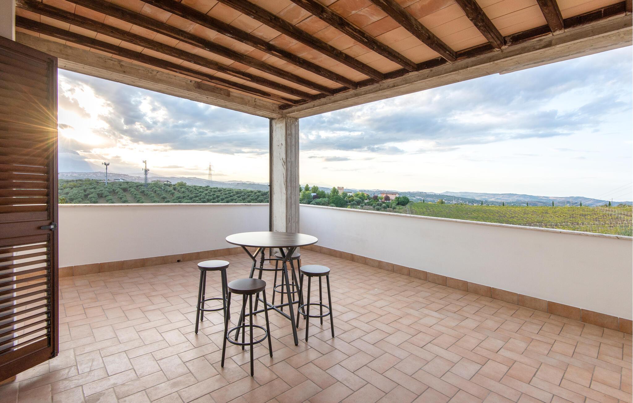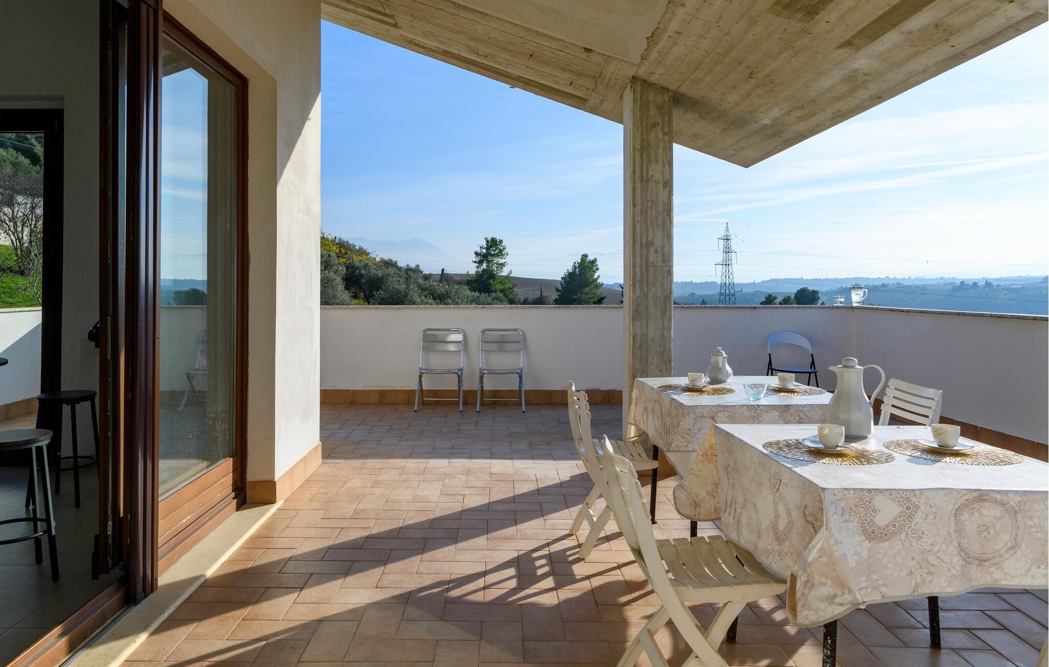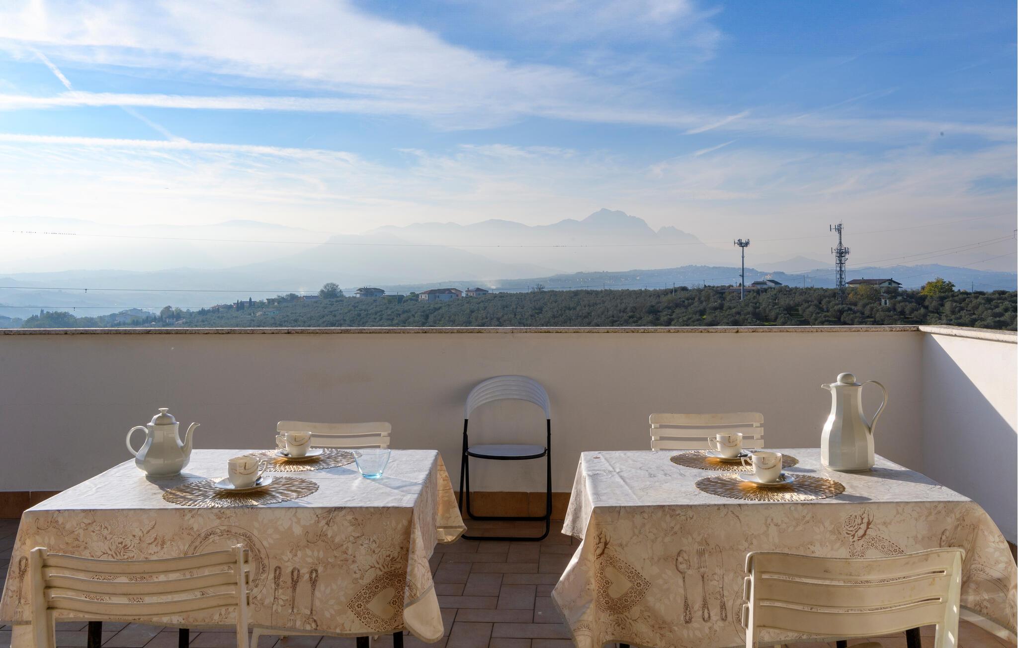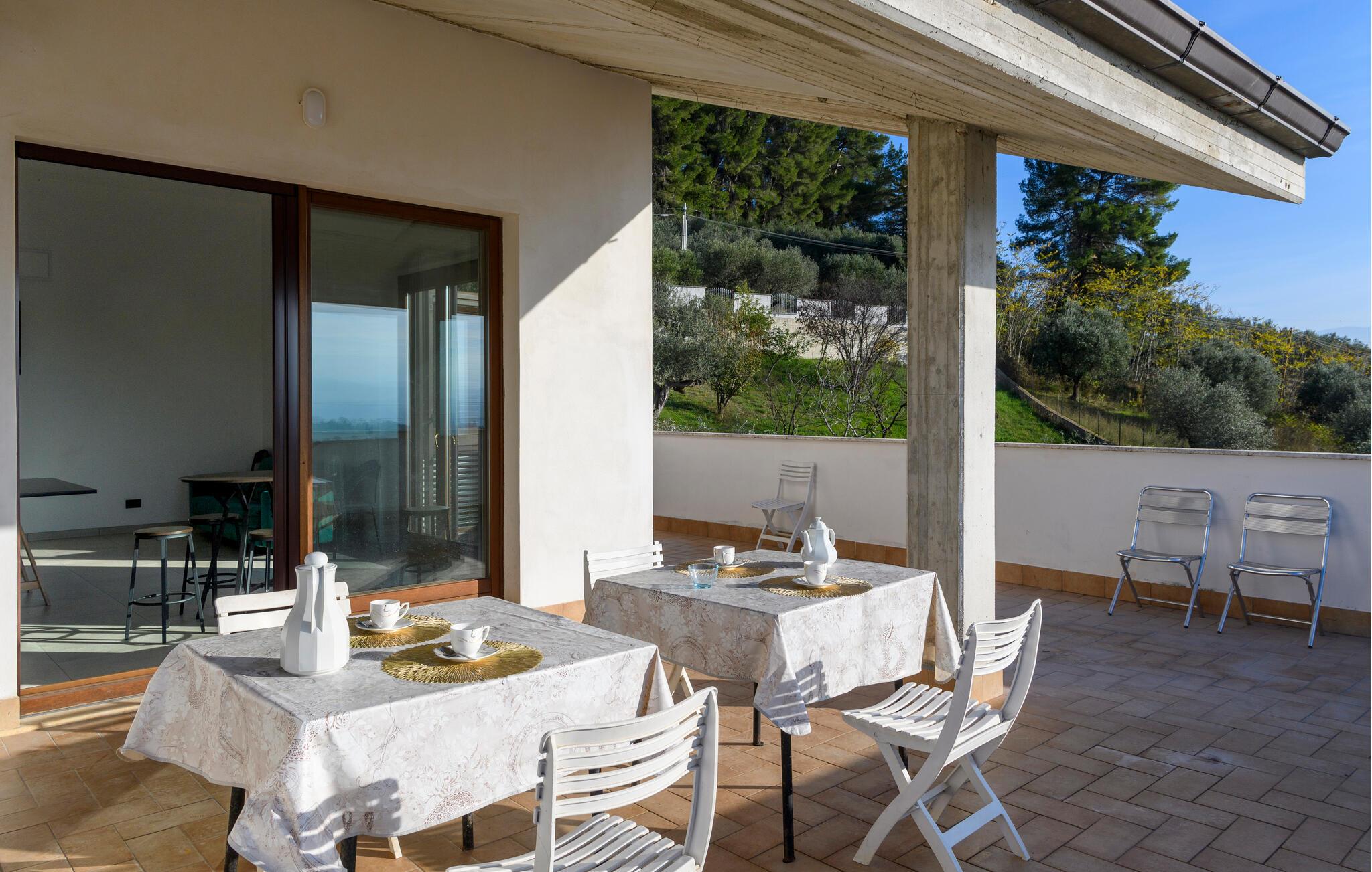 Velkommen til denne dejlige lejlighed, der ligger i en bygning med flere ferieboliger, smukt omgivet af oliventræerne, og med en skøn udsigt over landskabet. Hvis I gerne vil rejse som en større flok, kan I booke flere lejligheder i huset og nyde et ophold med det helt rette mix af sociale stunder og privatlivets fred. Lejligheden er flot indrettet med lyse farveskalaer, moderne komfort og et veludstyret køkken, hvor I kan tilberede en lækker morgenmad, som kan nydes på terrassen med en god kop kaffe og udsigt over landskabet i Pescaras bagland.
