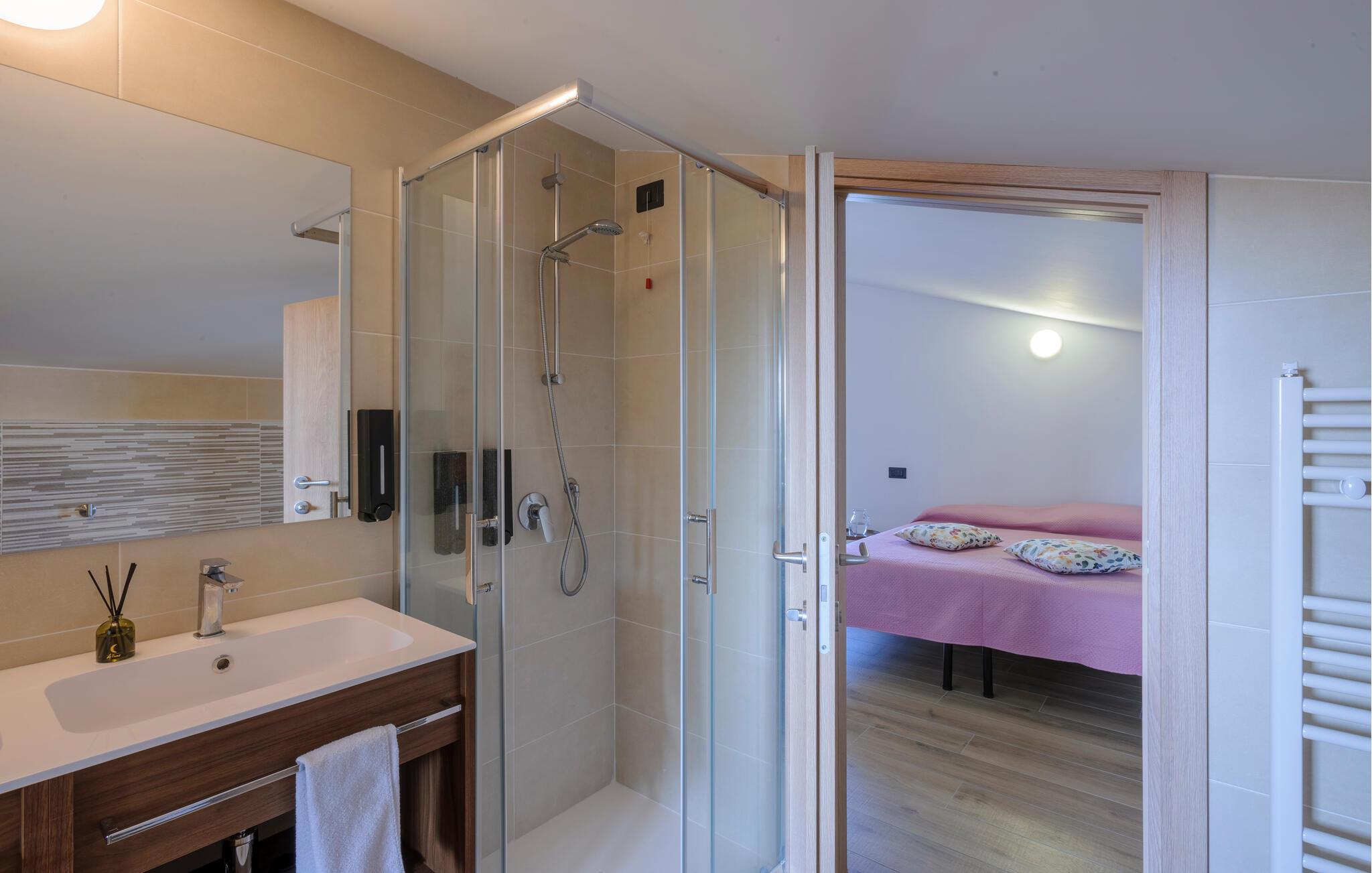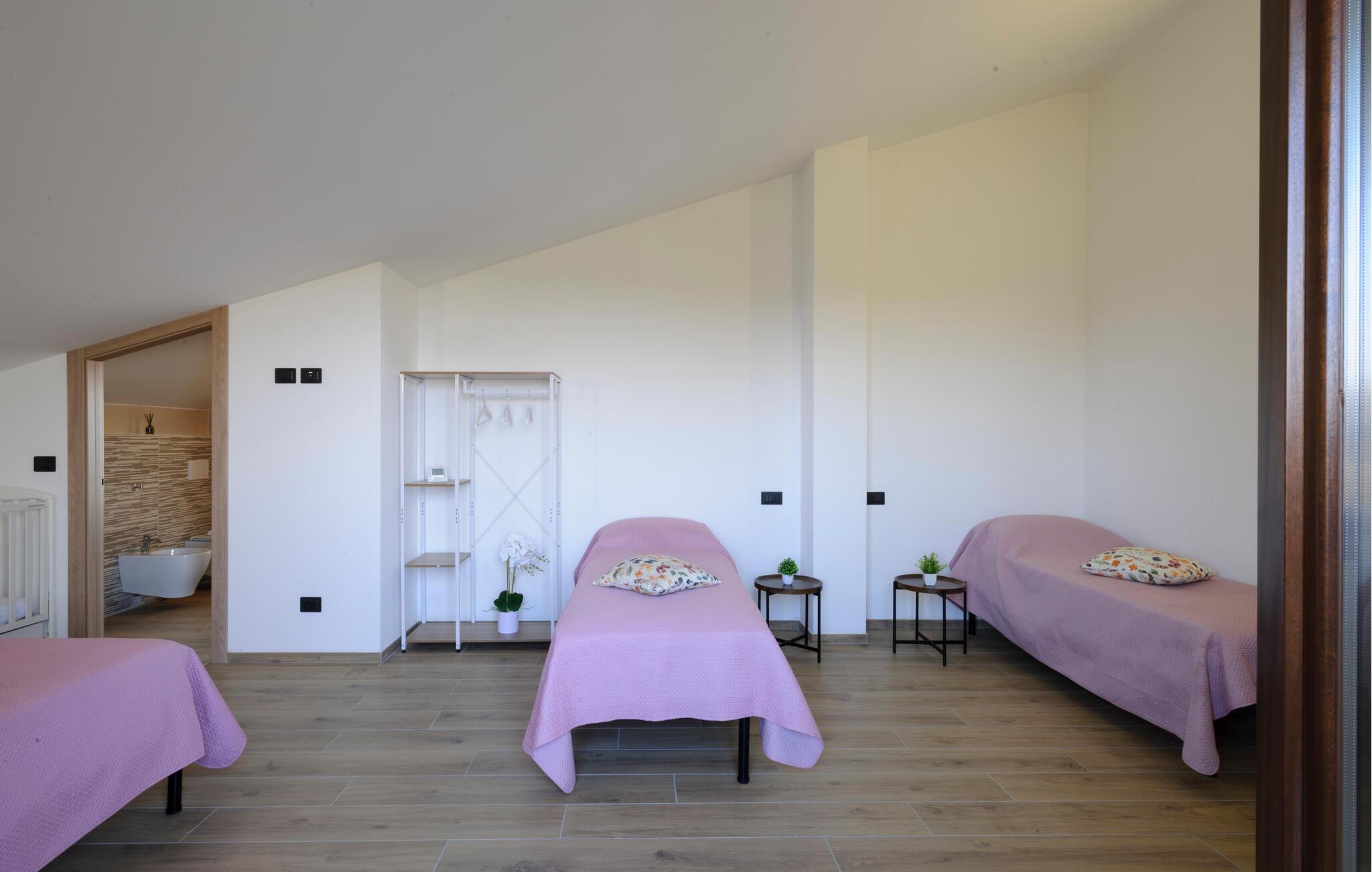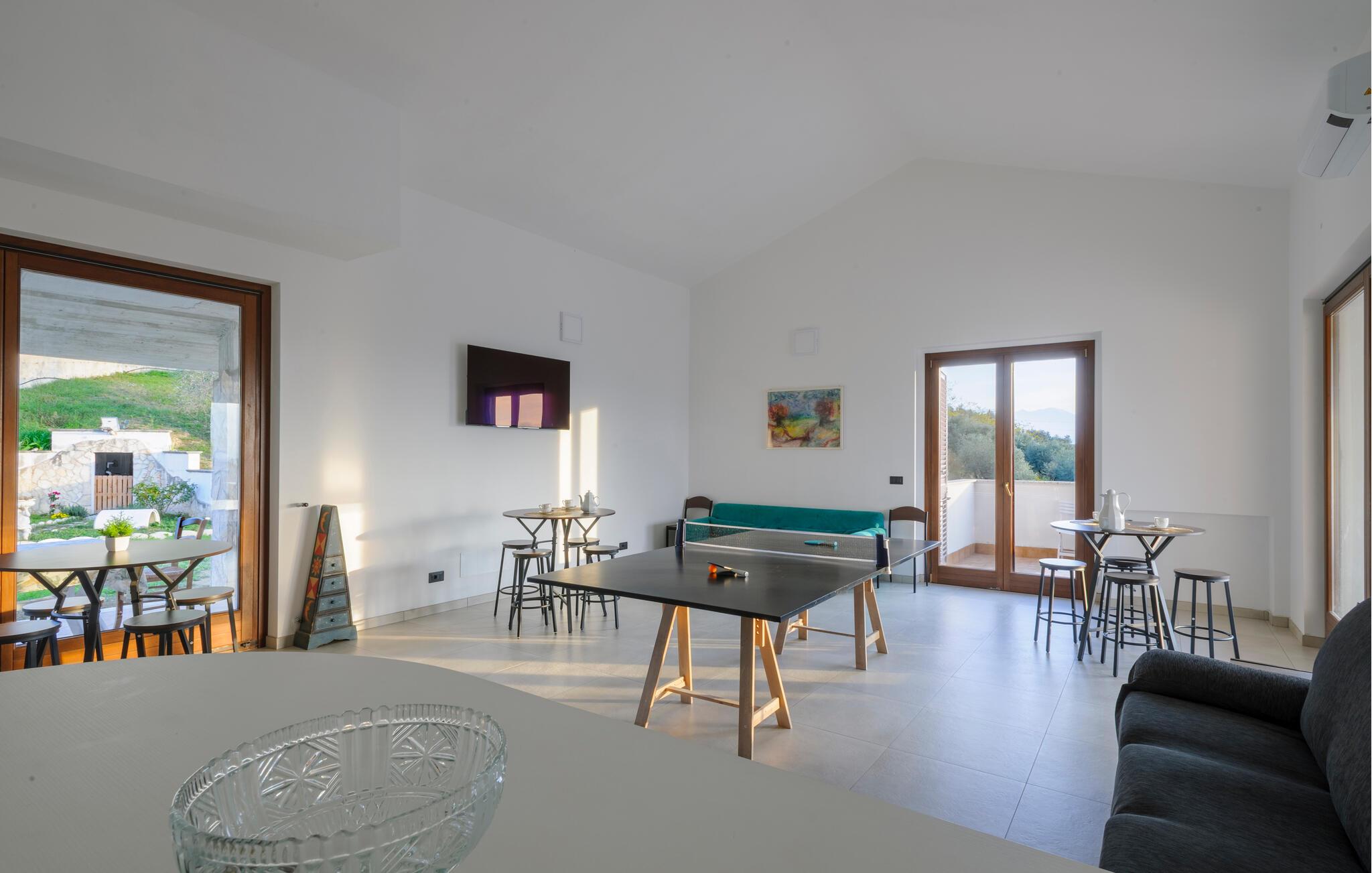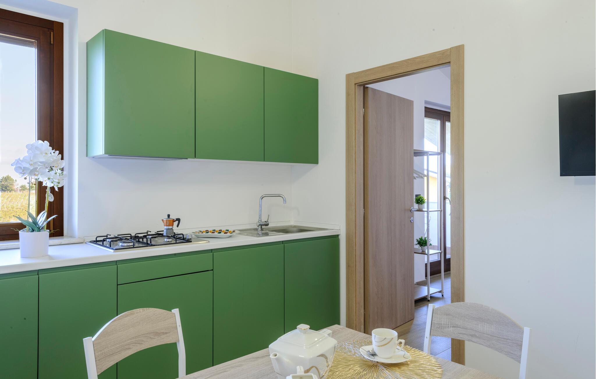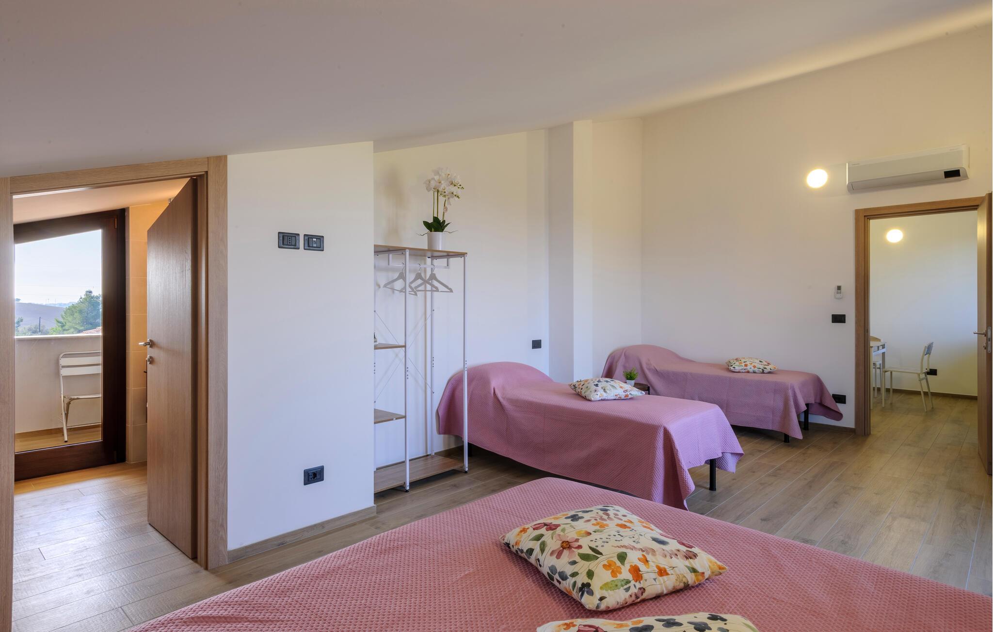 Velkommen til denne dejlige lejlighed, der ligger i en bygning med flere ferieboliger, smukt omgivet af oliventræerne, og med en skøn udsigt over landskabet. Hvis I gerne vil rejse som en større flok, kan I booke flere lejligheder i huset og nyde et ophold med det helt rette mix af sociale stunder og privatlivets fred. Lejligheden er flot indrettet med lyse farveskalaer, moderne komfort og et veludstyret køkken, hvor I kan tilberede en lækker morgenmad, som kan nydes på terrassen med en god kop kaffe og udsigt over landskabet i Pescaras bagland.