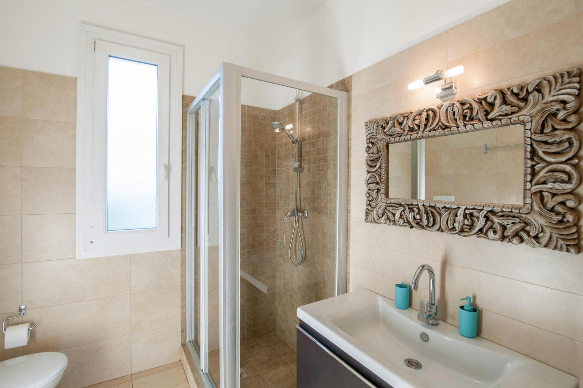 På 1. etage: (åbent køkken(kogeplade(induktion), elkedel, ovn, køleskab), stue / spisestue(dobbeltsovesofa(dobbelt dynebetræk, 180 x 200 cm), Fjernsyn(parabol, Internationale TV-kanaler)), soveværelse(enkeltseng(dynebetræk, 90 x 200 cm), enkeltseng(dynebetræk, 90 x 200 cm)), badeværelse(bruser, toilet, bidet)) vaskemaskine(deles med andre gæster), varme(gennem aircondition), klimaanlæg, terrasse, have, havemøbler, solstole, Parasol, swimmingpool(deles med andre gæster, udendørs, opened from Apr upto and including Oct), baby crib(paid)