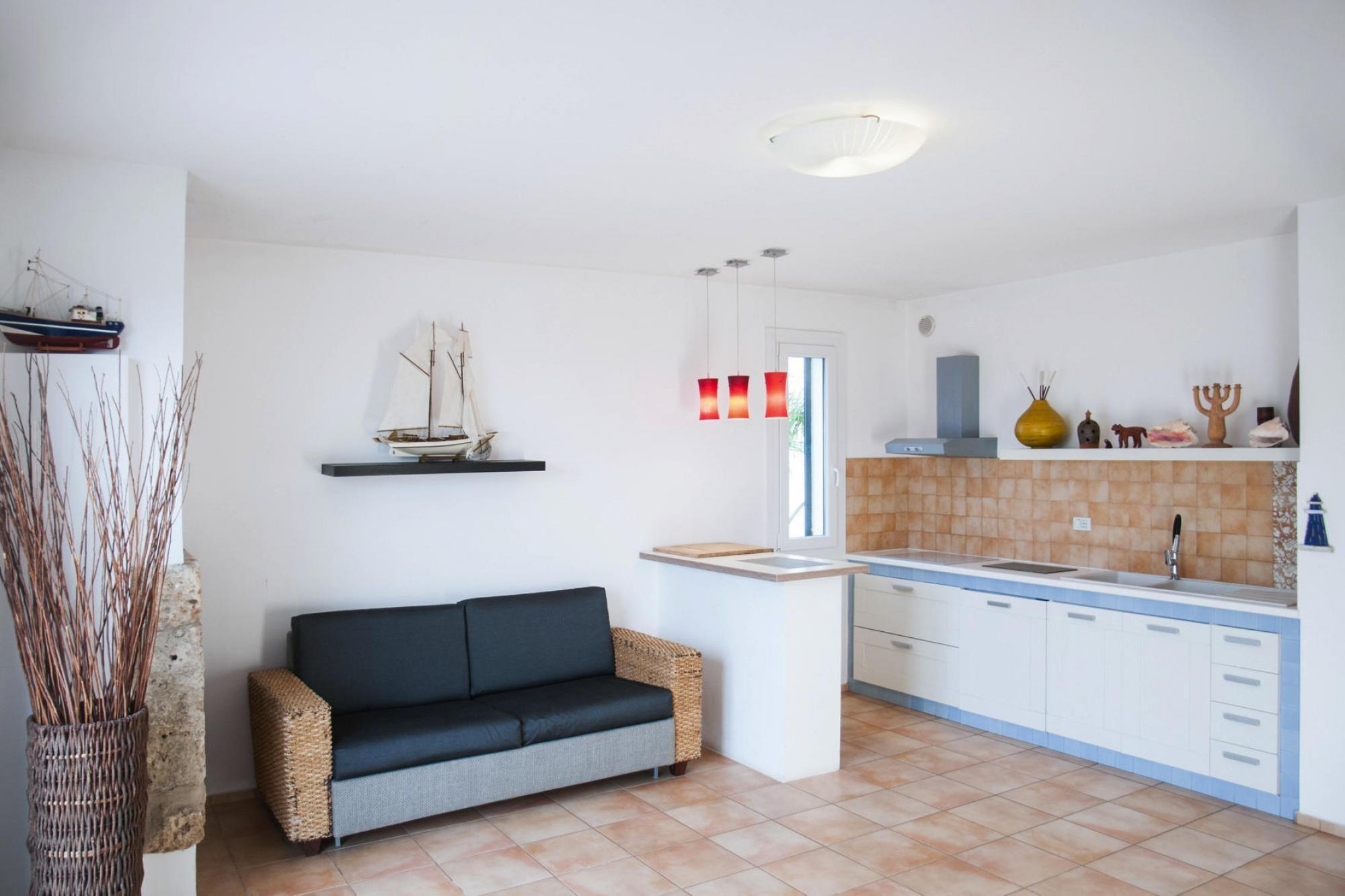 Lille ørken på den Ioniske kyst: Lejlighedshus med swimmingpool nær de smukke sandstrande omkring Santa Maria al Bagno. Lejlighederne med aircondition er lyse og moderne. Fra hver lejlighed er der direkte adgang til den skønne swimmingpool gennem terrassen, som inviterer til afslapning. Santa Maria al Bagno er en del af NardÒ Kommune. På de let skrånende strande, som er særligt velegnede til børn, er der også strandpromenader med restauranter, barer og butikker, der inviterer til slentretur. Detaljer: WLAN Aktiviteter i nærheden: Gallipoli, 14 km syd, er et must for enhver besøgende til Apulien. Den består af en historisk gammel bydel og den nye by, som er forbundet med en bro. Under broen i den gamle bydel ligger en havn med en daglig fiskeauktion Ikke egnet til personer med nedsat mobilitet