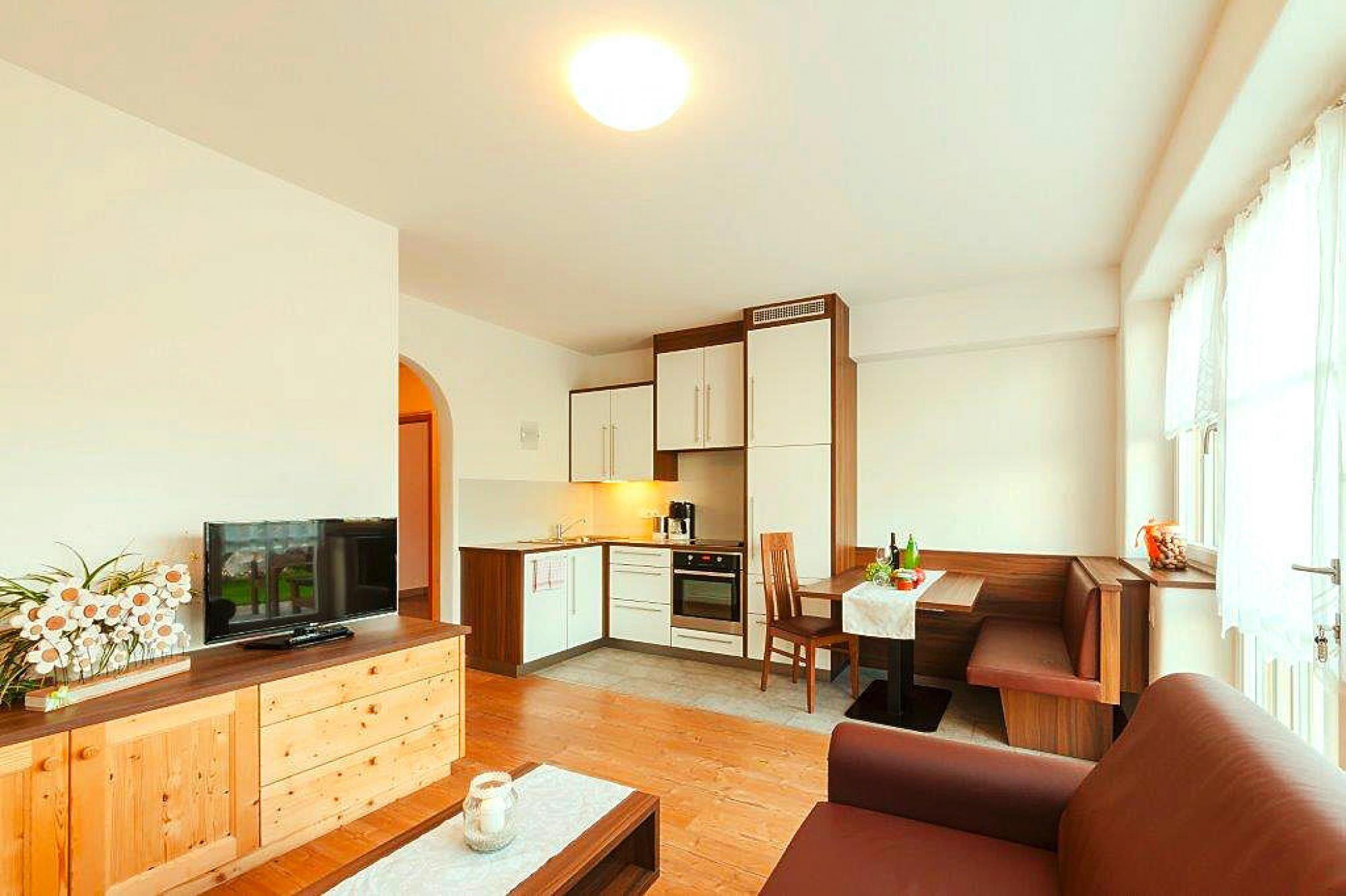 Idyllisk frugtfarm omgivet af æbleplantager og kirsebærtræer. De smukke lejligheder ligger i den tilstødende bygning. Du har mulighed for at plukke et æble direkte fra træet hver dag eller købe produkter som kirsebær, juice, snaps, marmelade og vin, som du har dyrket på stedet. Nyd solen, mens du slapper af på solplænen, og dine børn boltrer sig på den private legeplads. Den moderne fælles udendørs pool på familiehotellet, 200 m væk, er til din rådighed til enhver tid. Du kan også benytte hotellets sauna og spabad (mod betaling). Der har du også mulighed for at nyde den lækre morgenbuffet eller spise aftensmad (begge mod betaling). Detaljer: Gæstekort med attraktive inkluderende tjenester, sengelinned, håndklæder, slutrengøring Aktiviteter i nærheden: Eisacktal-cykelstien løber forbi huset 500 m væk. Den løber fra Brenner i næsten 100 km via Sterzing, Brixen, Franzensfeste og Klausen til Bozen og næsten 100 % ad separate cykelstier, hvorfra du kan nyde en smuk udsigt over Dolomitterne. Desuden er Dolomitterne uden tvivl Sydtyrols bjerg- og vandremekka. Utallige ture - fra afslappede hytteture til udfordrende klatring - venter på dig. Tilsvarende vandrekort findes på stedet på turistkontoret. I den historiske bispeby Bressanone med sin meget berømte gamle bydel (7 km) finder du rigtig gode indkøbsmuligheder. Det gratis Almencard byder på action, eventyr, bjergbaner og variation for hele familien. Talrige rabatter og fordele i butikker og fritidsfaciliteter Ikke egnet til personer med nedsat mobilitet