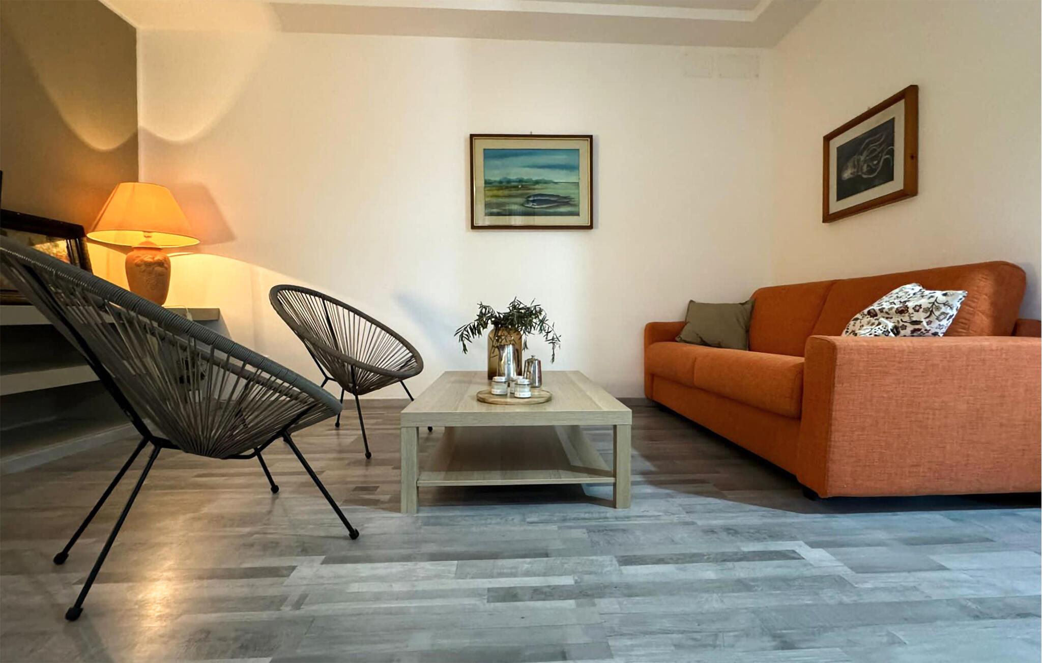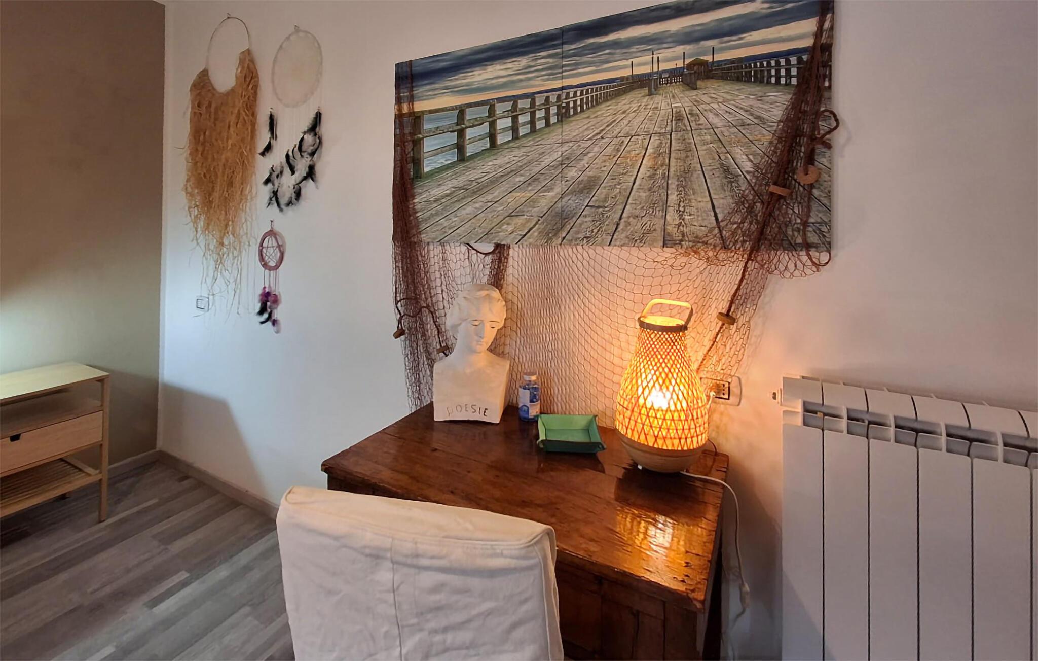 Velkommen til dette smagfulde feriehus, hvor en harmonisk pause venter jer med familien. Her kan I føle jer hjemme mellem jeres udflugter og nyde den varme stemning. Glæd jer til at lave madaftener sammen og slap af i den hyggelige stue. Fordyb jer i en god bog eller brug tiden til stimulerende samtaler i den behagelige sofa.