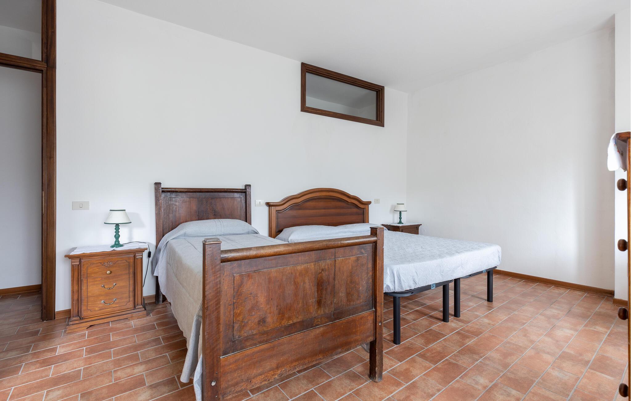 Huset strækker sig over ca. 400 kvadratmeter og tilbyder masser af plads til en afslappende ferie med mange gæster. Møblerne er traditionelle og rustikke med masser af træ og klinkegulve. Boligarealet er opdelt i 4 soveværelser, 7 badeværelser, 1 åben hems og 2 stuer samt køkken og spisestue. En anden stue med køkken er placeret i annekset. I de varme sommermåneder tilbyder den private udendørs pool vidunderlig køling. Slap af på liggestolene eller tilbring dejlige aftener på den overdækkede terrasse.