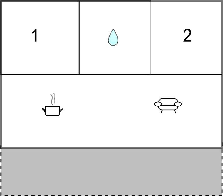 Opholdsstue/køkken - 1 Soveplads. (Sofa, madras eller lignende).