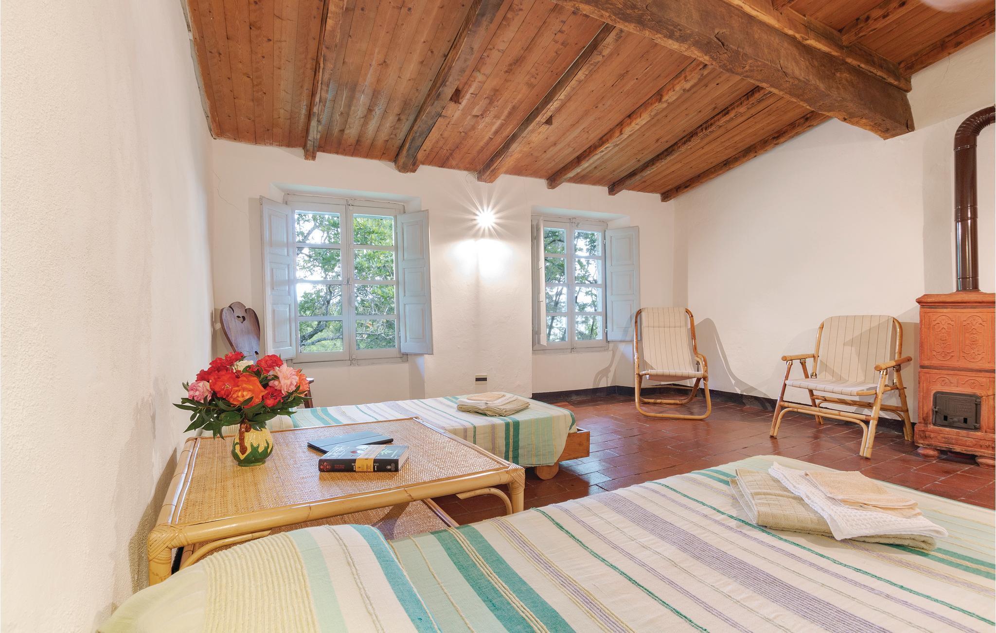Dette naturstenshus i det naturfredede område Ghirardi. Til huset hører en stor terrasse med have og panoramaudsigt. Stort stenbord og brændeovn. Vaskemaskine. To overdækkede parkeringspladser og ekstraseng på bestilling. Det fredede område ’Ghirardi’ ligger i 6-700 m højde, omgivet af bjergkæden Appenninerne mellem Toscana, Ligurien og Emilia Romagna. Her er hele 600 hektar naturskønhed med bakker, skove og marker, som med garanti vil begejstre jer. Ghirardis ro og storslåede omgivelser indbyder til skønne vandreture. Desuden kan I tage på udflugter i de omliggende bjerge, ud til Liguriens kyst og de talrige byer med mange seværdigheder. I har jeres helt egen private vej op til Ghirardi, som kun I må køre ad (skovvej). Hvis I spørge, kan jeres værter tilberede kulinariske specialiteter eller sælge lokale økologiske produkter (brød, pizza, kage, æg, grønsager, frugt, vin, olie, marmelade osv.). Se også ITL103 og 104.