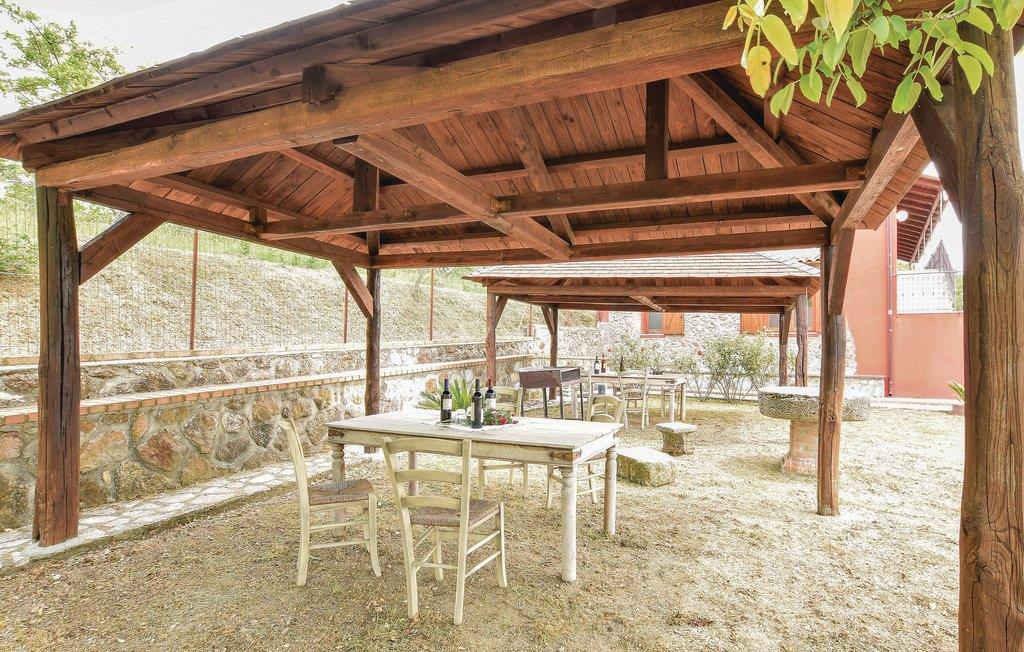 Herfra kan I nyde et bredt panorama over dalen og havet. Tag en behagelig svømmetur i poolen nyde et glas vin i haven, hvor I sidder i skyggen af ??pavillonerne. Bruser, mursten grill og overdækket parkering er også en del af udstyret. Værelserne er store og hyggelige. To udstyrede køkkener, fire soveværelser, alle med private badeværelser. Et af soveværelserne er i stueetagen, og det tilstødende badeværelse er tilgængeligt for handicappede. Huset har også et anneks med stue/køkken, et soveværelse og et badeværelse.
