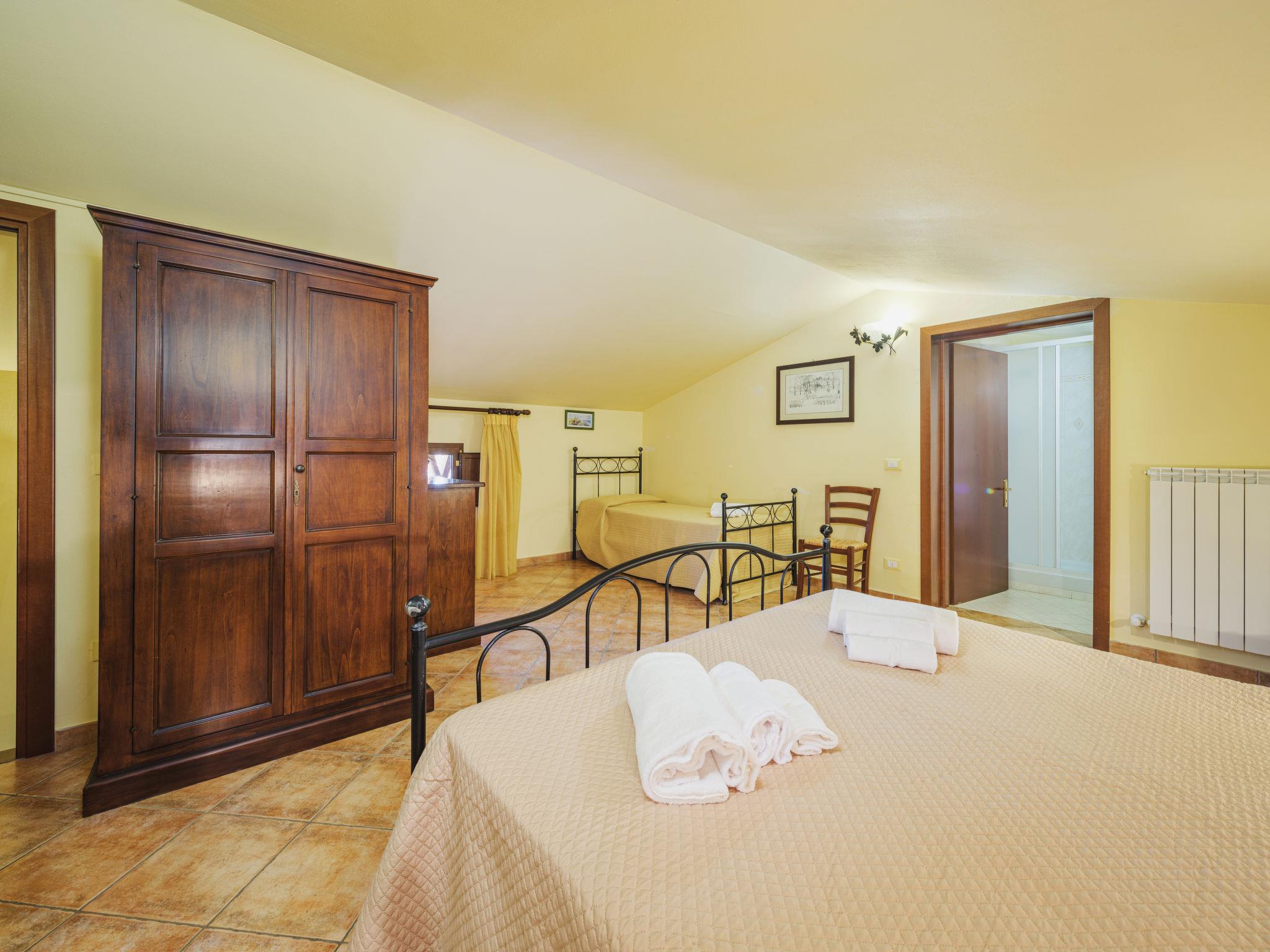 "Ponziani", 3-room apartment 75 m2 on 2 levels. Beautiful and rustic furnishings: 1 room with 1 french bed (160 cm), shower/WC. Kitchen-/living room (mini-oven, dishwasher, Gas stove, 4 gas rings, kettle, freezer, electric coffee machine) with dining table, satellite TV. Upper floor: 1 room with 1 bed and 1 french bed (160 cm), shower/WC. Electric heating (extra), air-conditioning (extra). Heating available only from 01.11. to 15.04. Terrace roofed. Terrace furniture. Facilities: mosquito net, children's high chair, baby cot for up to 2 year olds, hair dryer. Internet (WiFi, free). Parking at the house. Please note: non-smokers only. Private entrance, smoke alarm, fire extinguisher. IT050009B5CJBUJBVI